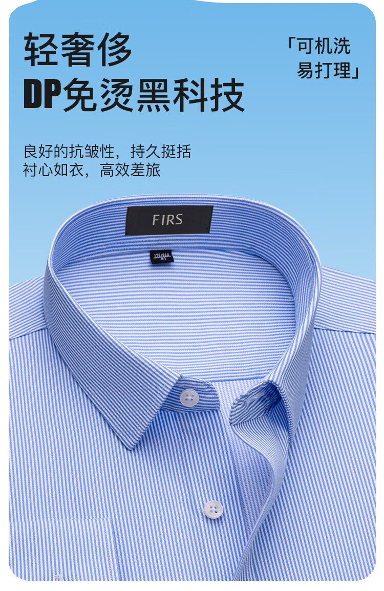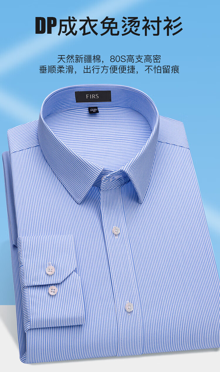 杉杉(FIRS)【免烫可机洗】长袖衬衫男80支纯棉亲肤柔软衬衣商务休闲顺滑上衣 浅蓝 39 (170) 88A
