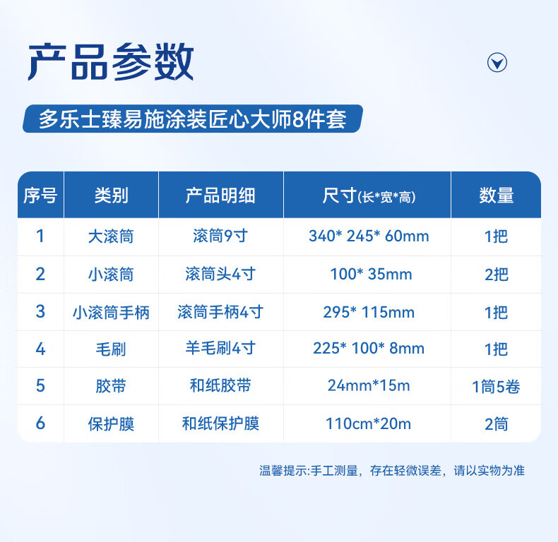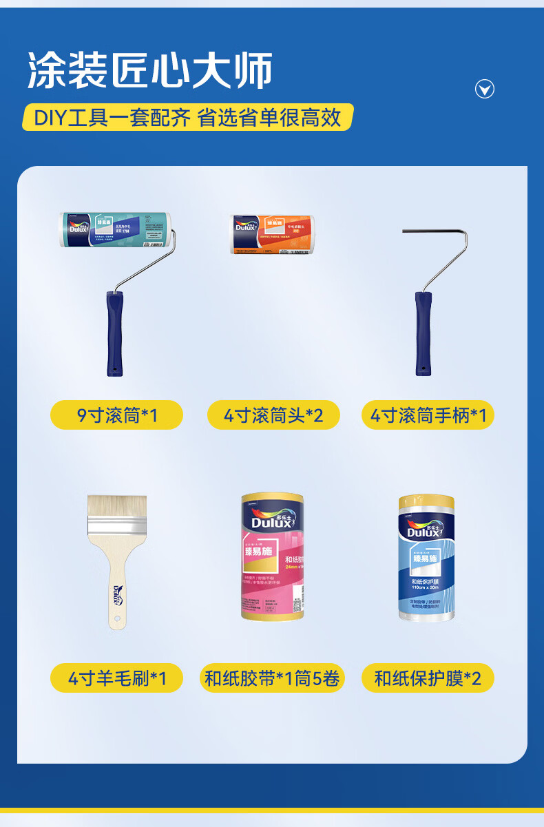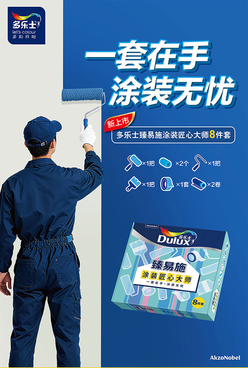多乐士(Dulux)臻易施涂装匠心大师8件套专用乳胶漆毛刷滚筒胶带涂刷工具套装