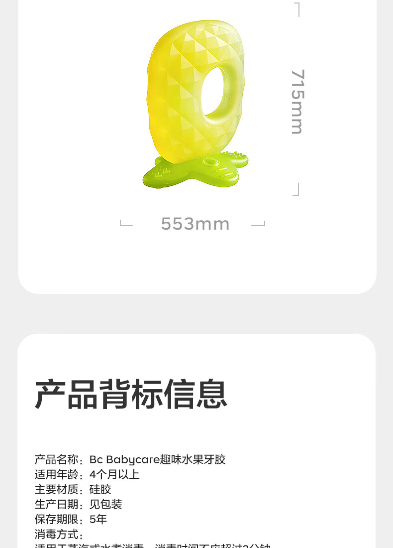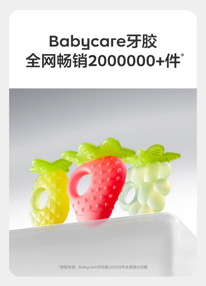 babycare宝宝牙胶磨牙咬咬胶棒婴儿玩具水果安抚牙胶婴儿用品组合3只装