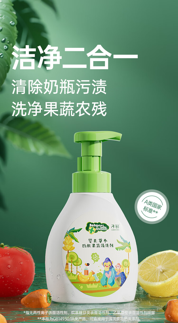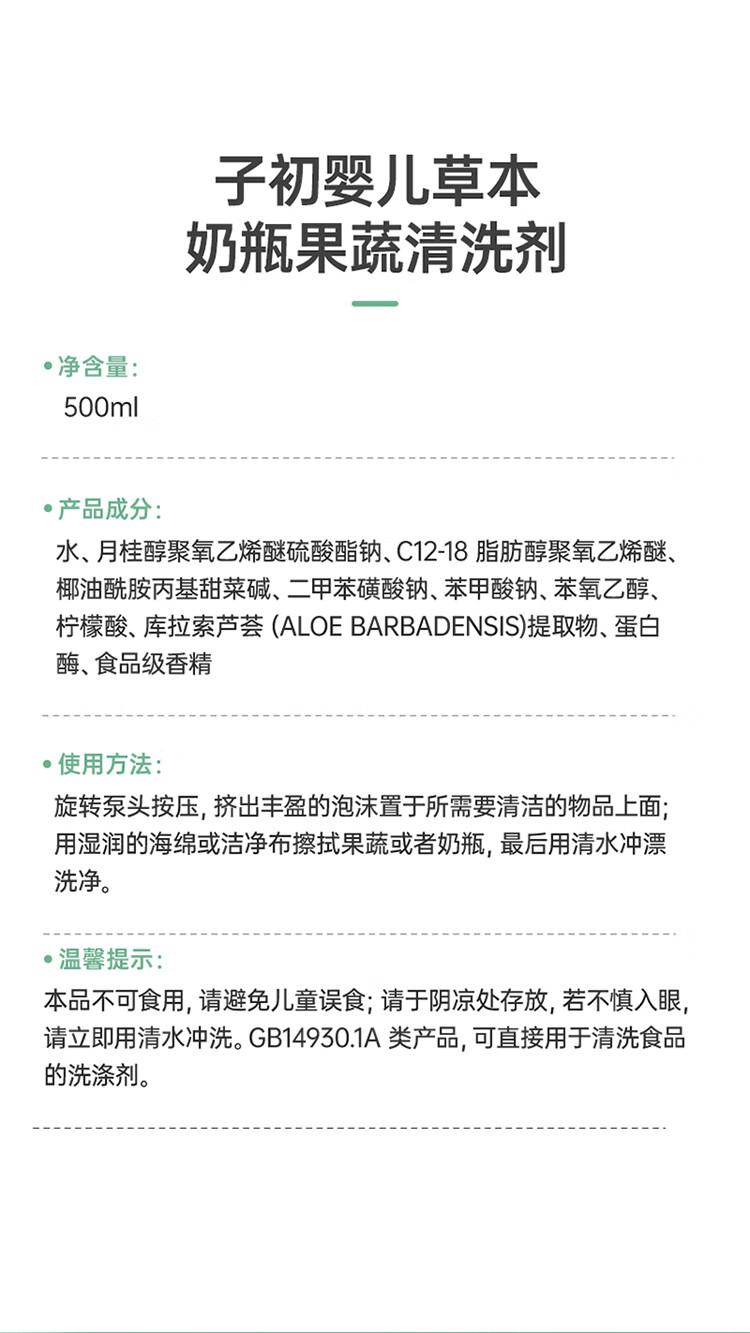 子初奶瓶果蔬清洗剂草本植萃果蔬餐具奶瓶奶嘴清洗液500g