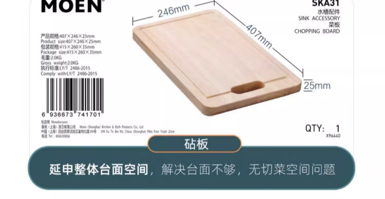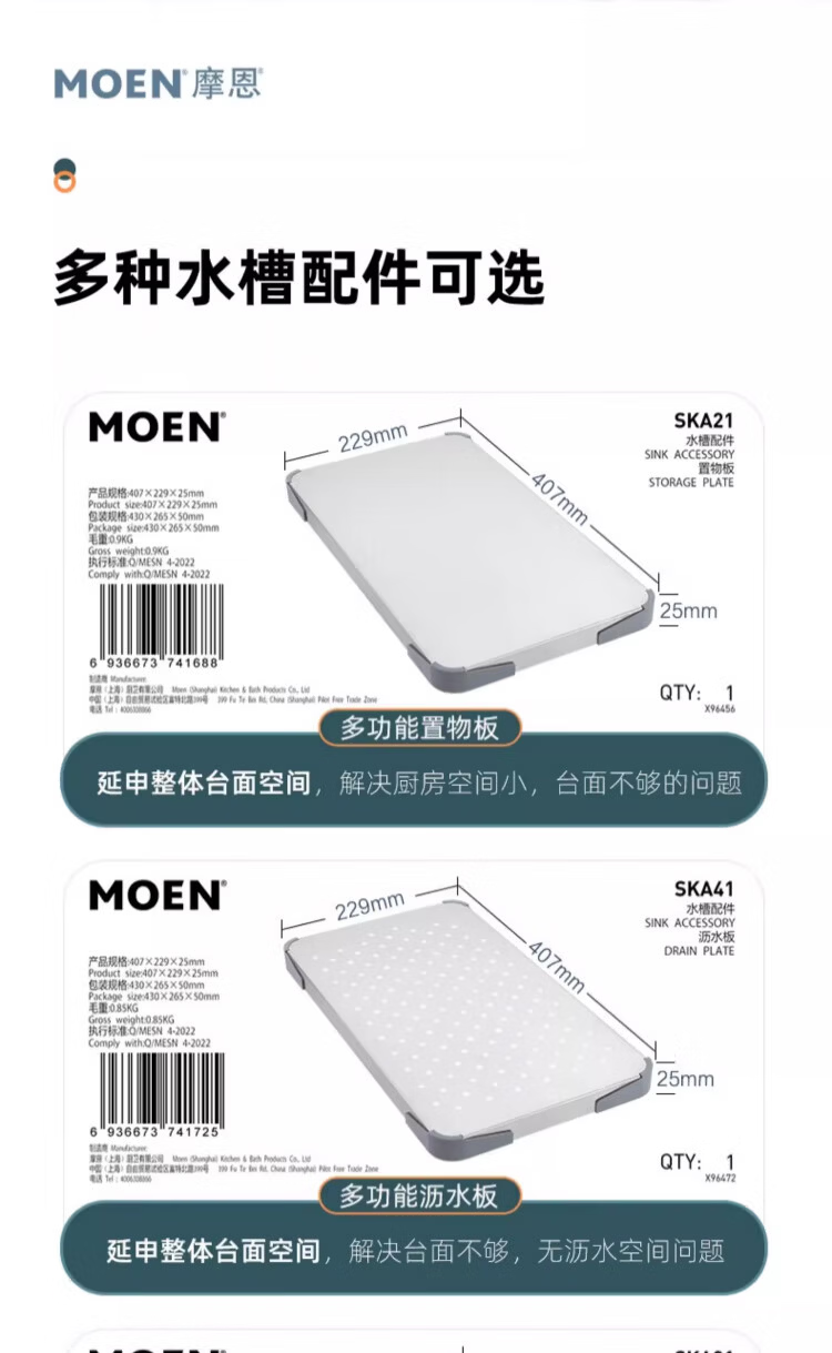 摩恩(MOEN)水槽洗菜盆配件沥水板置物架多功能置物板砧板菜板 置物板