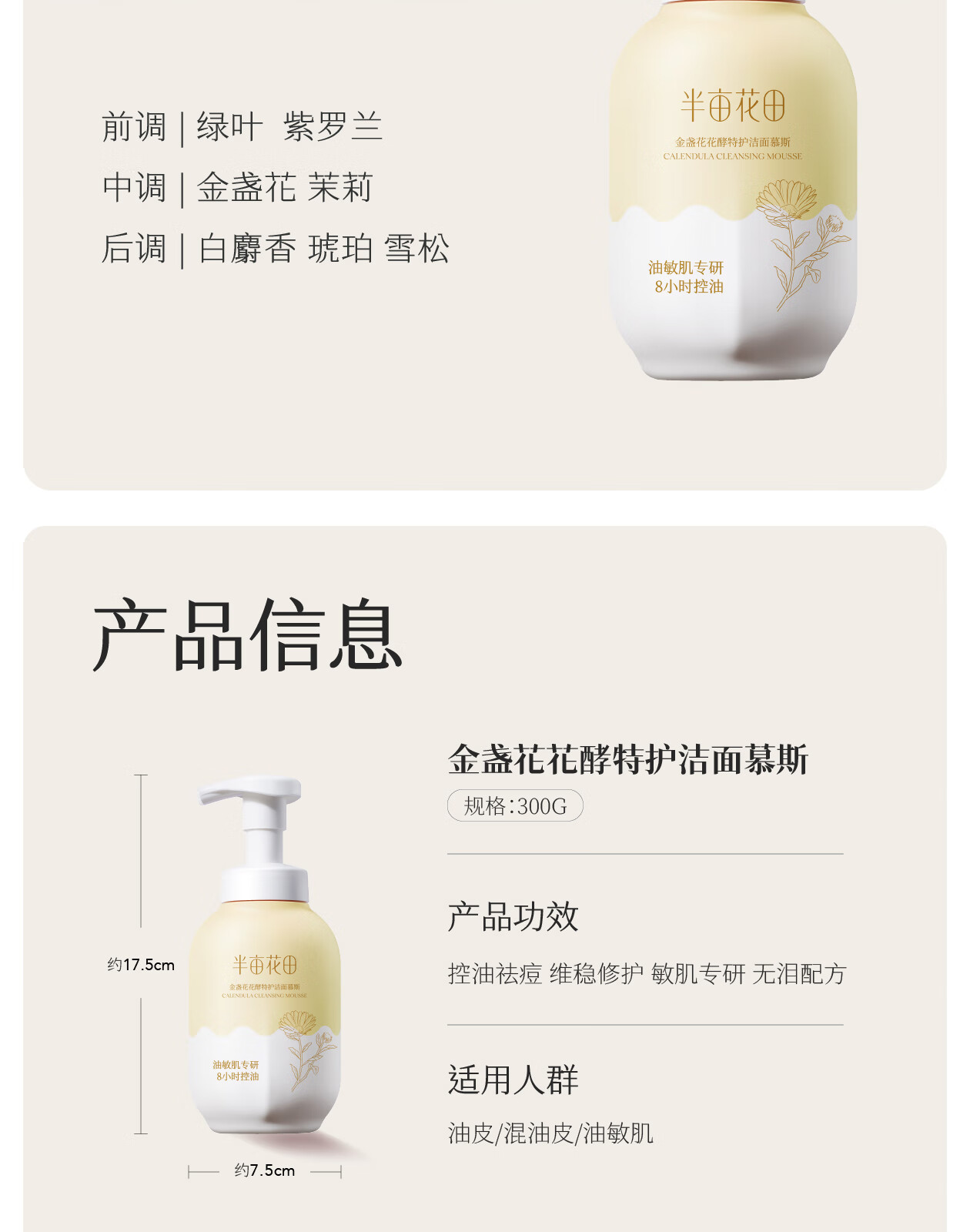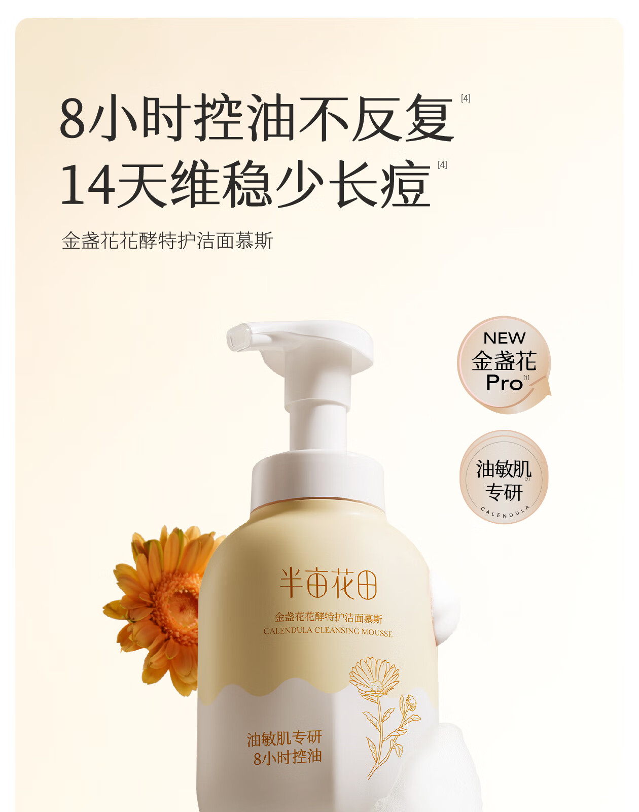 半亩花田金盏花洁面慕斯氨基酸洗面奶男女士去黑头控油祛痘深层清洁第1名