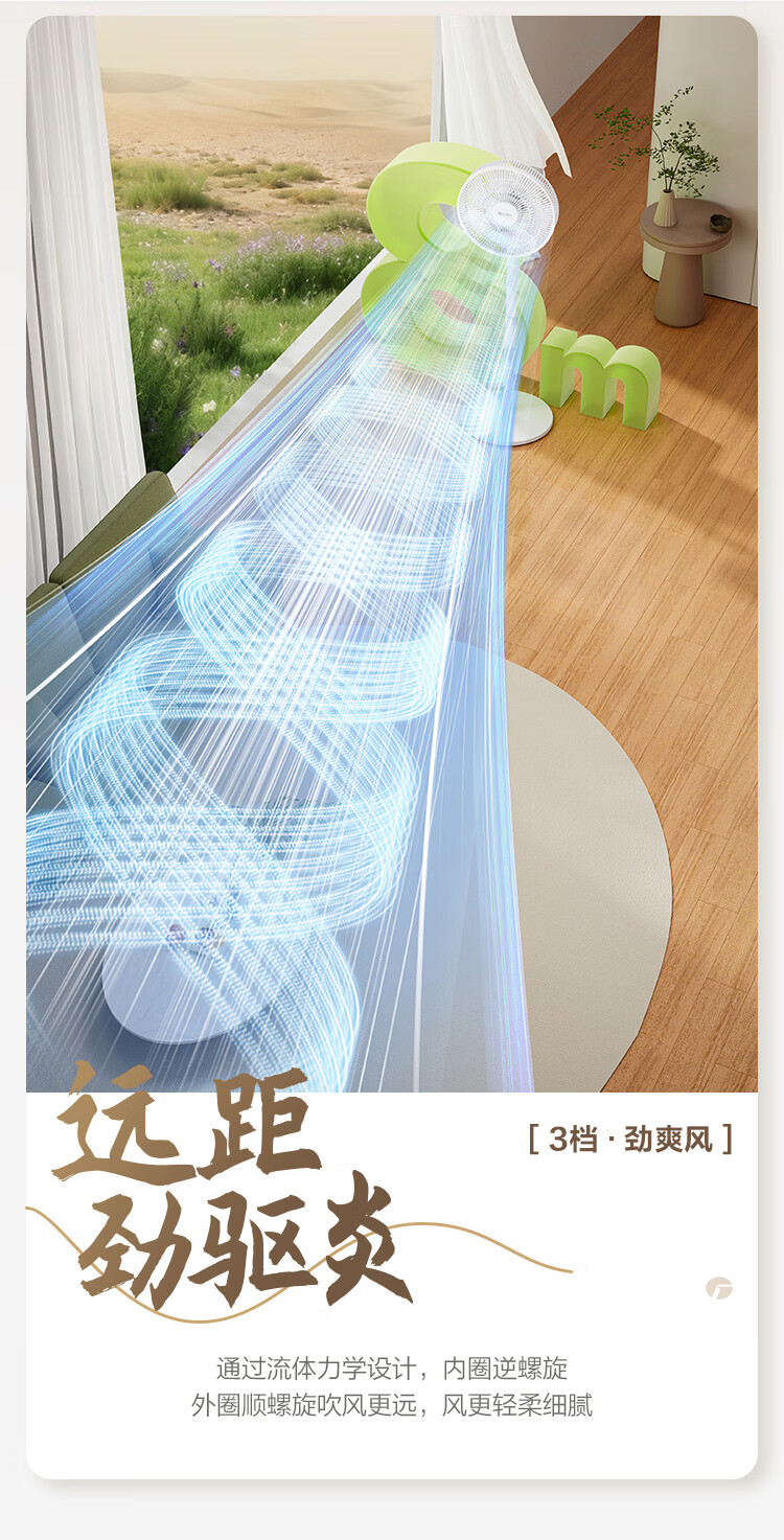 诗美辰新款电风扇家用大风力风扇落地式立式静音节能遥控卧室摇头风扇 扬子空气循环扇【三档风力+左右摇头+台立两用】扁头