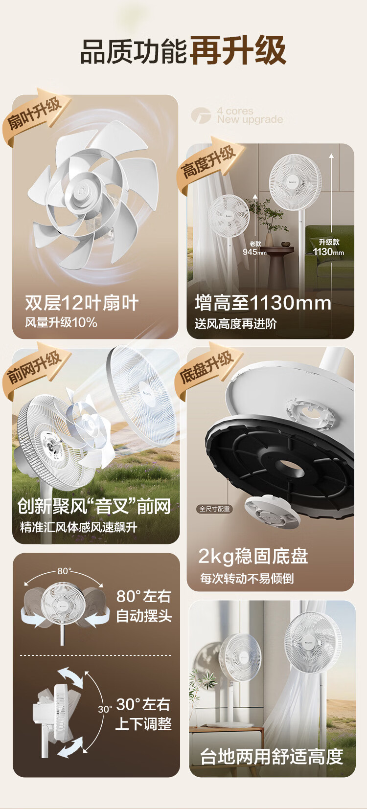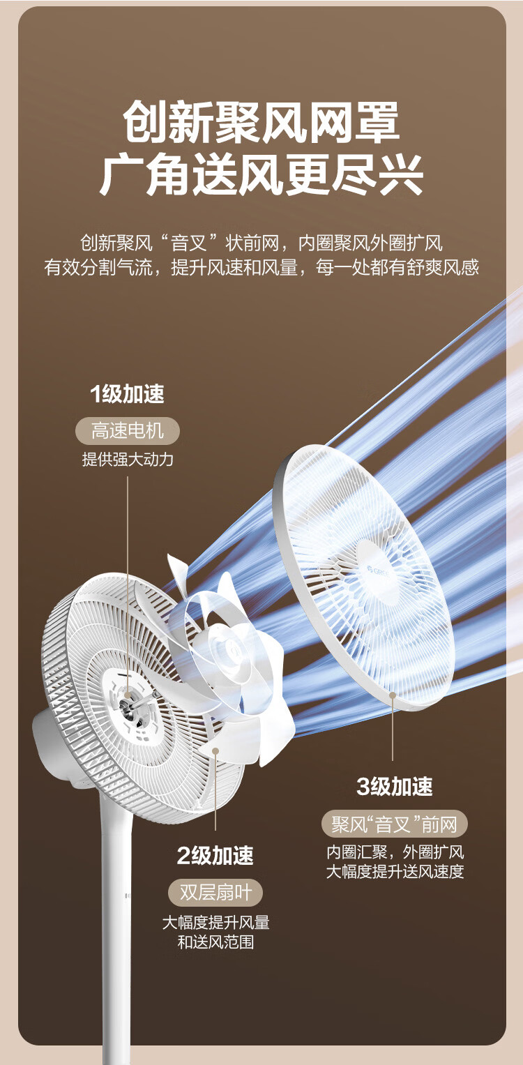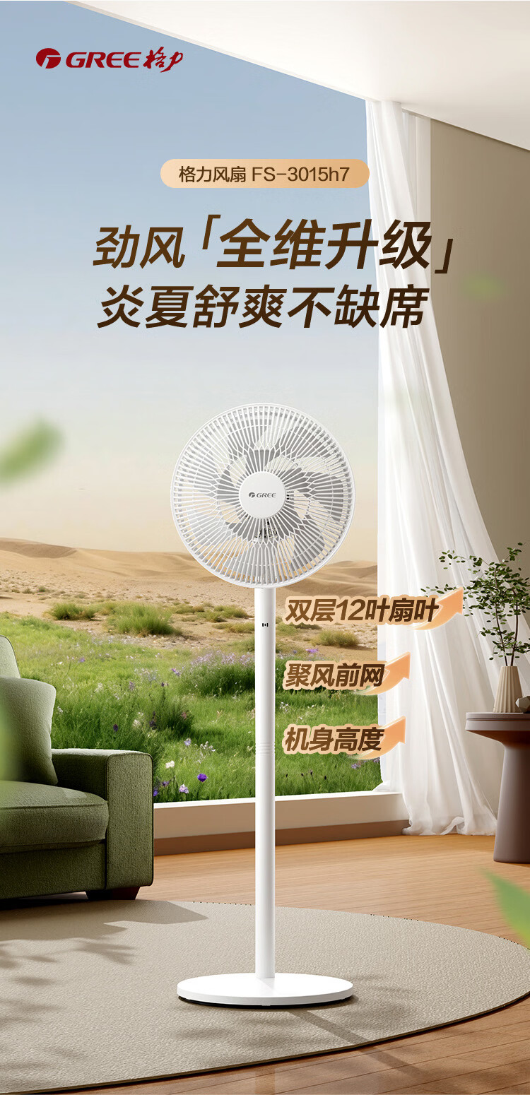 格力【2026年新品首发】纯铜电机电风扇双层12叶轻音家用节能落地扇台式大风量电风扇升级款FS-3015h7