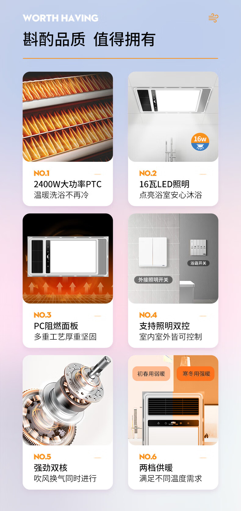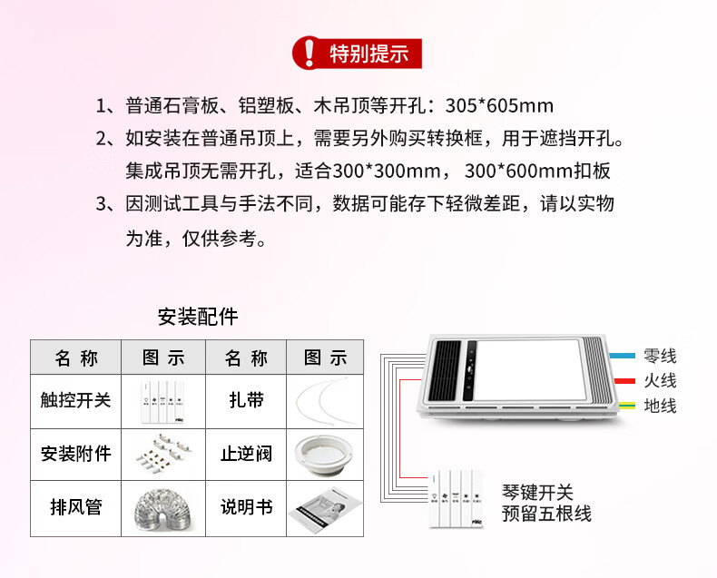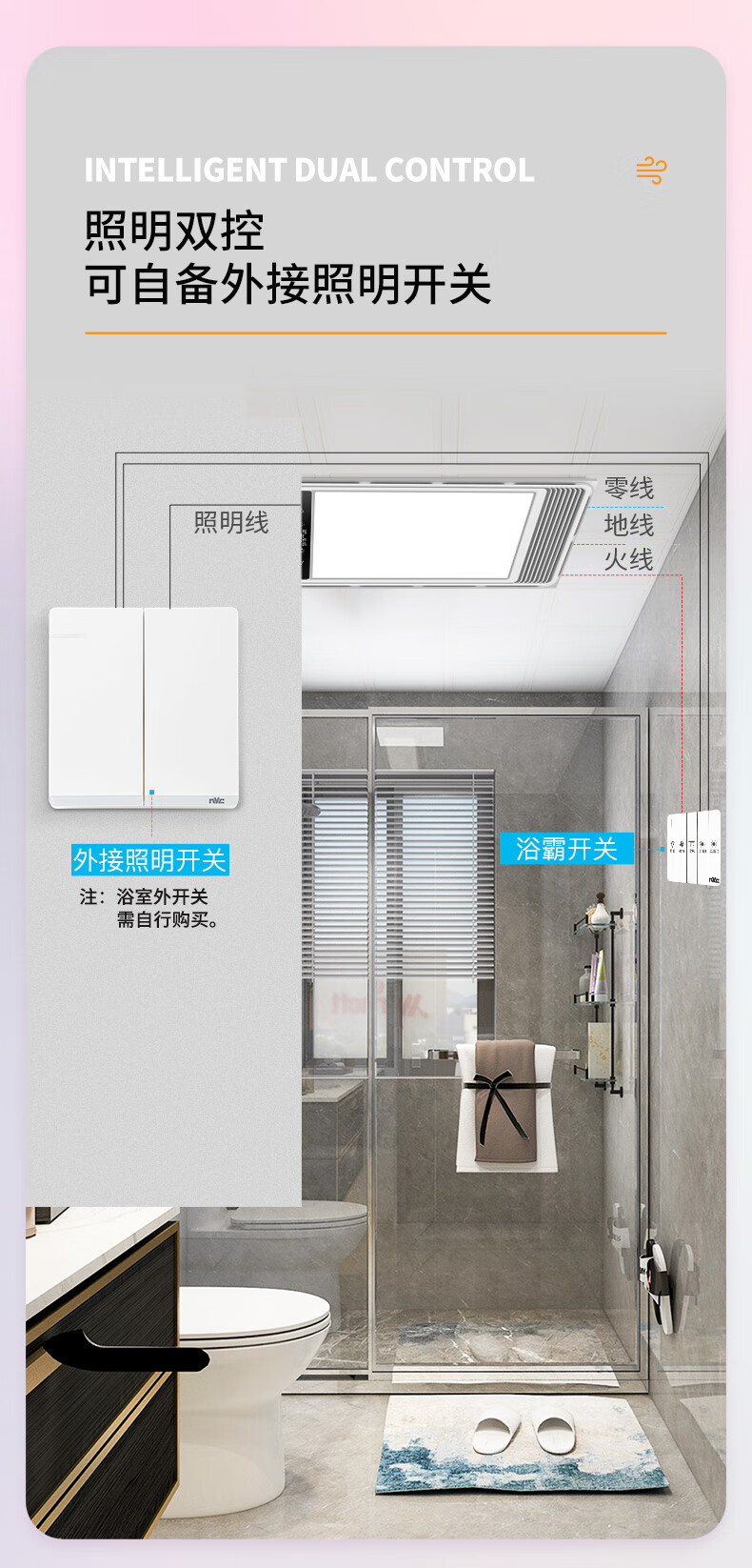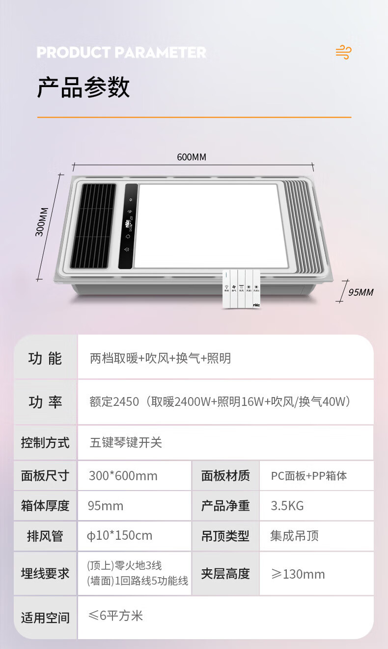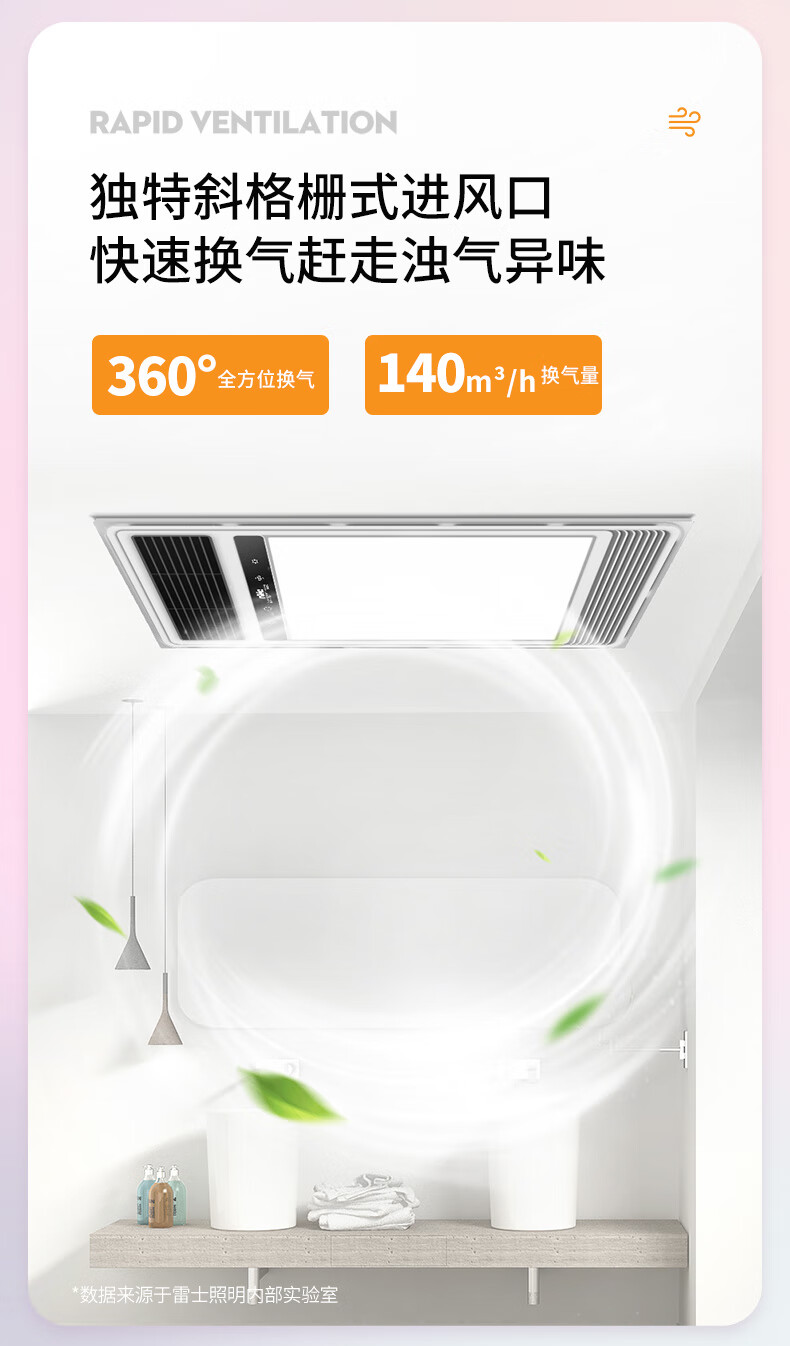 雷士(NVC)双电机取暖器卫生间风暖浴霸排气扇照明一体浴室暖风机2400W
