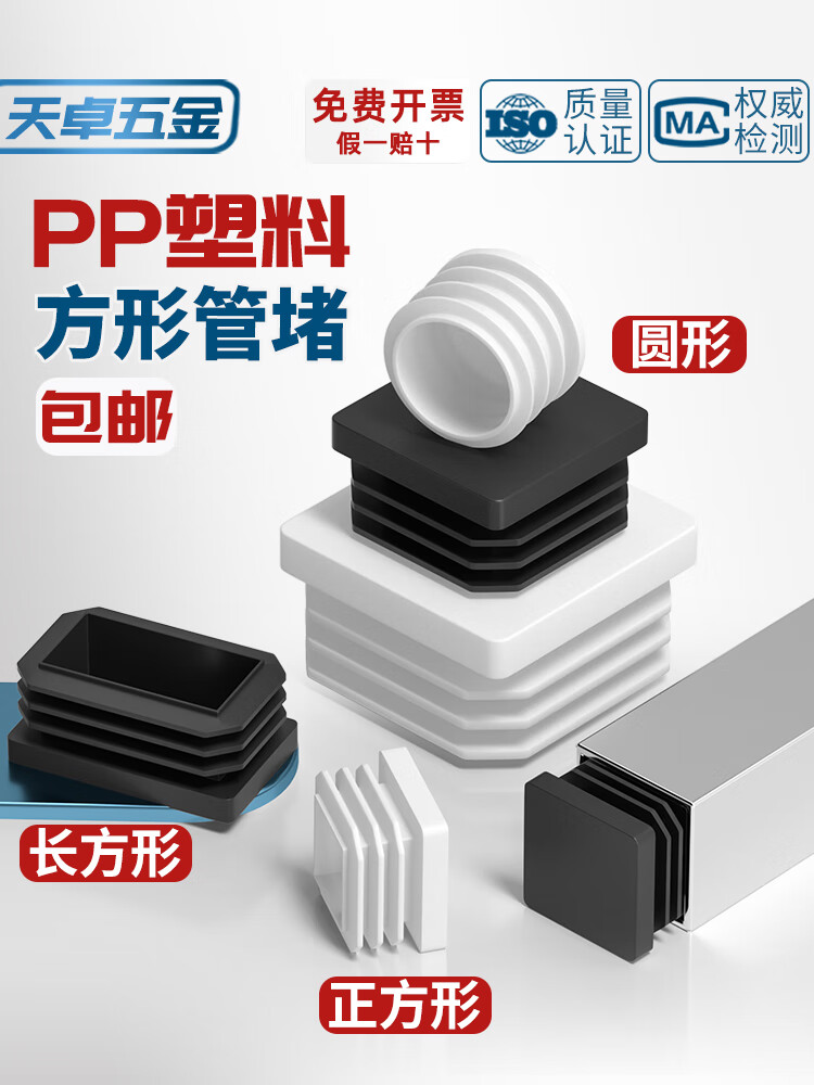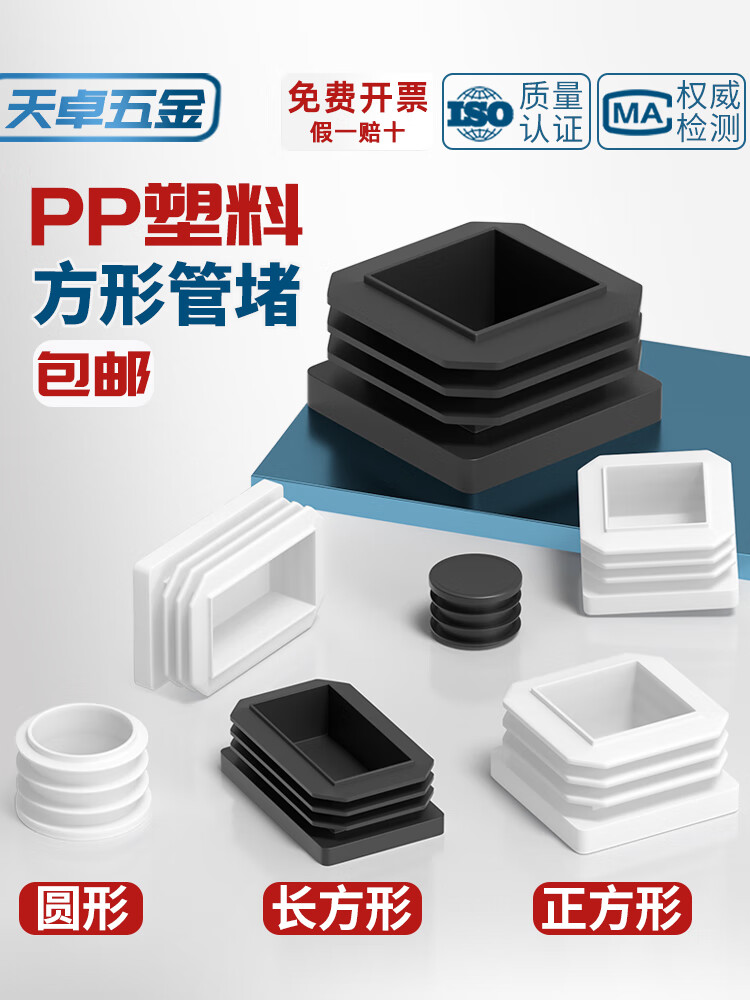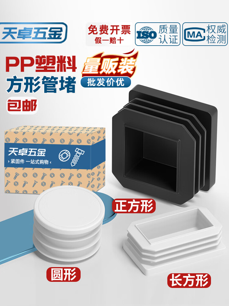 天卓五金方管堵塞头塑料堵头盖帽方钢塞头方管封口盖堵帽堵盖管塞防滑脚垫 长方形40*80 黑色 【15个】