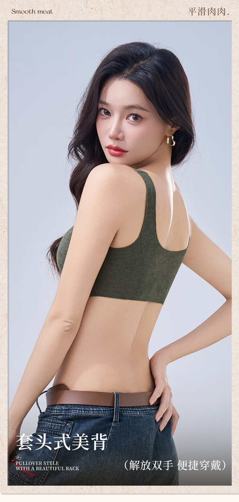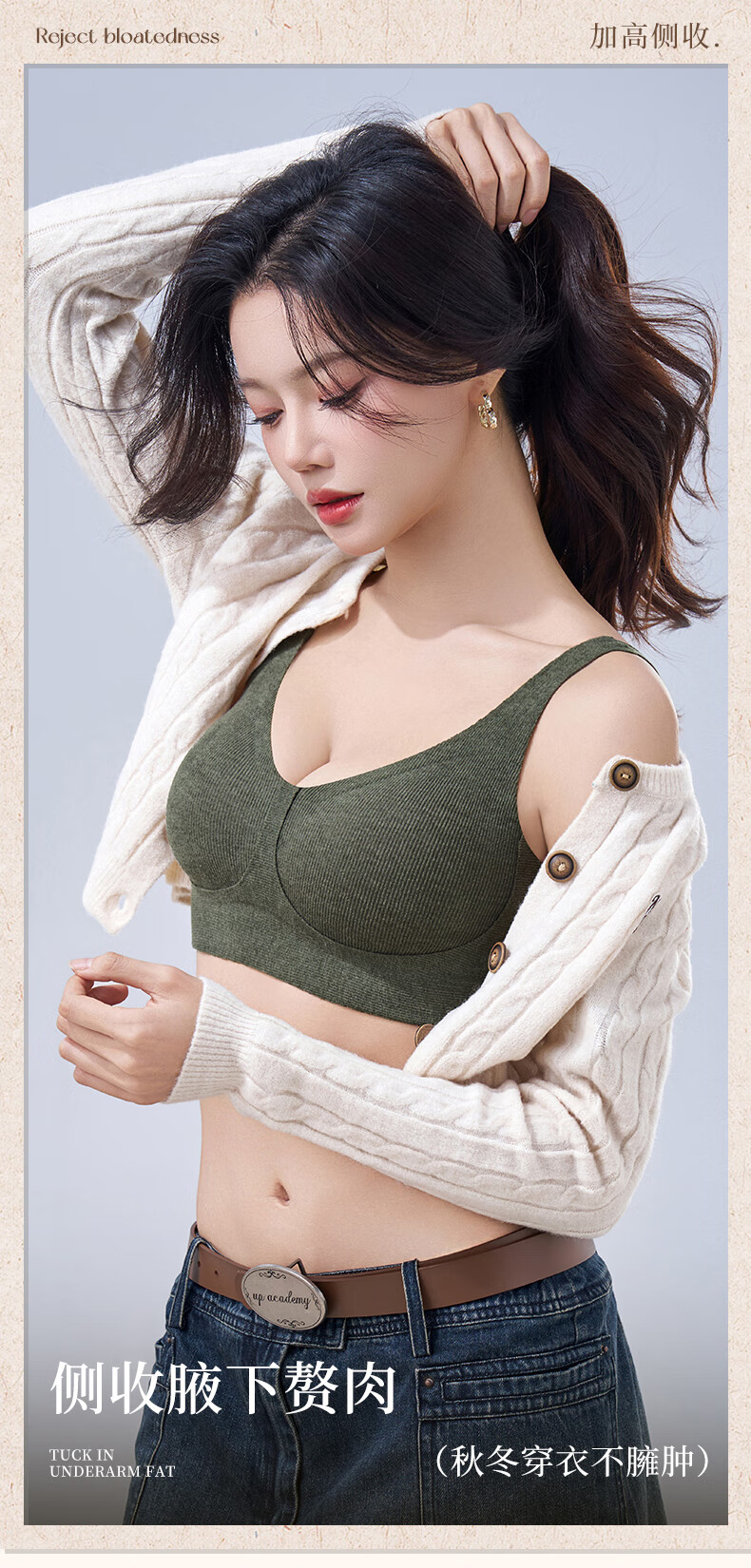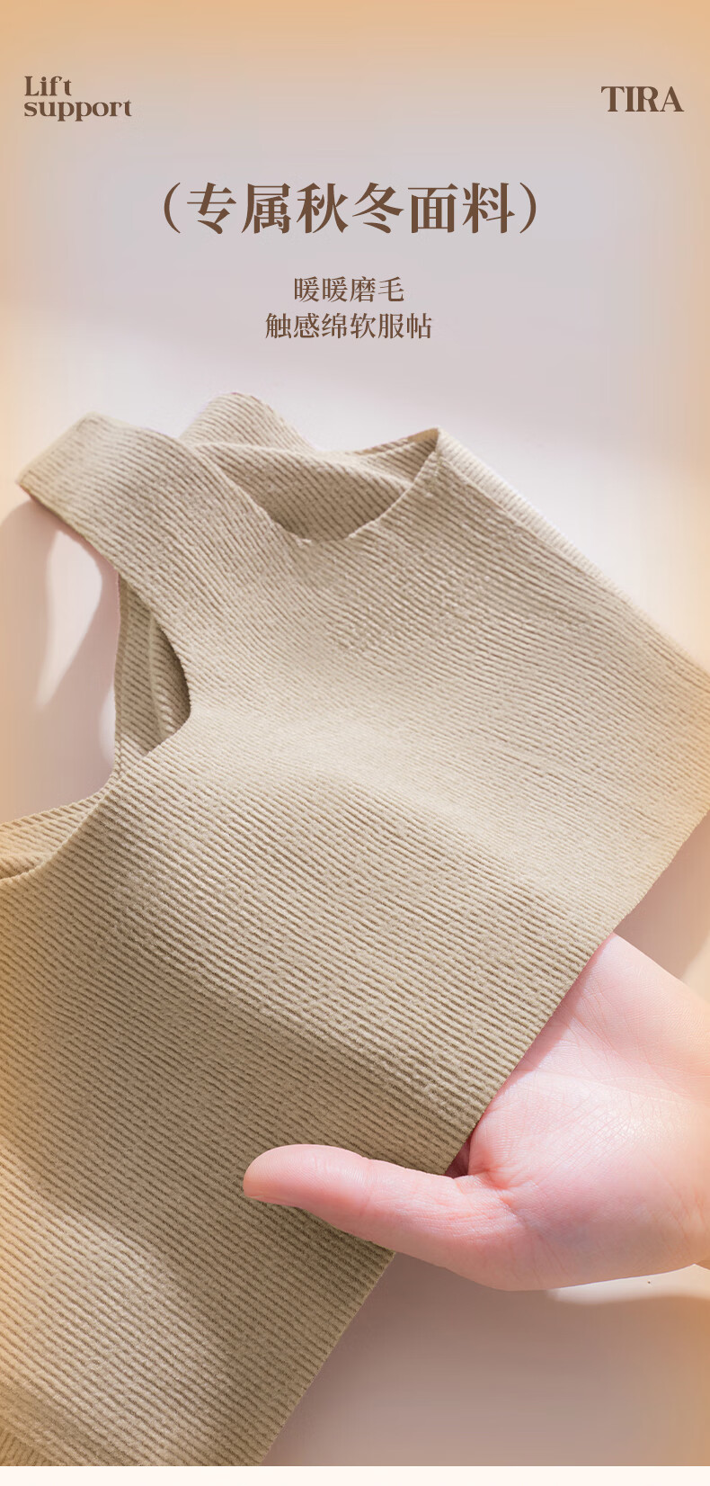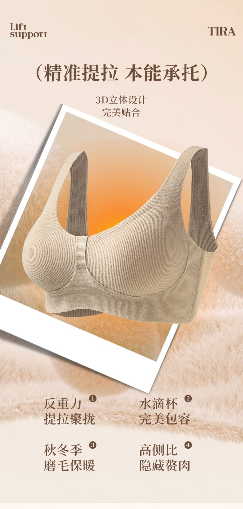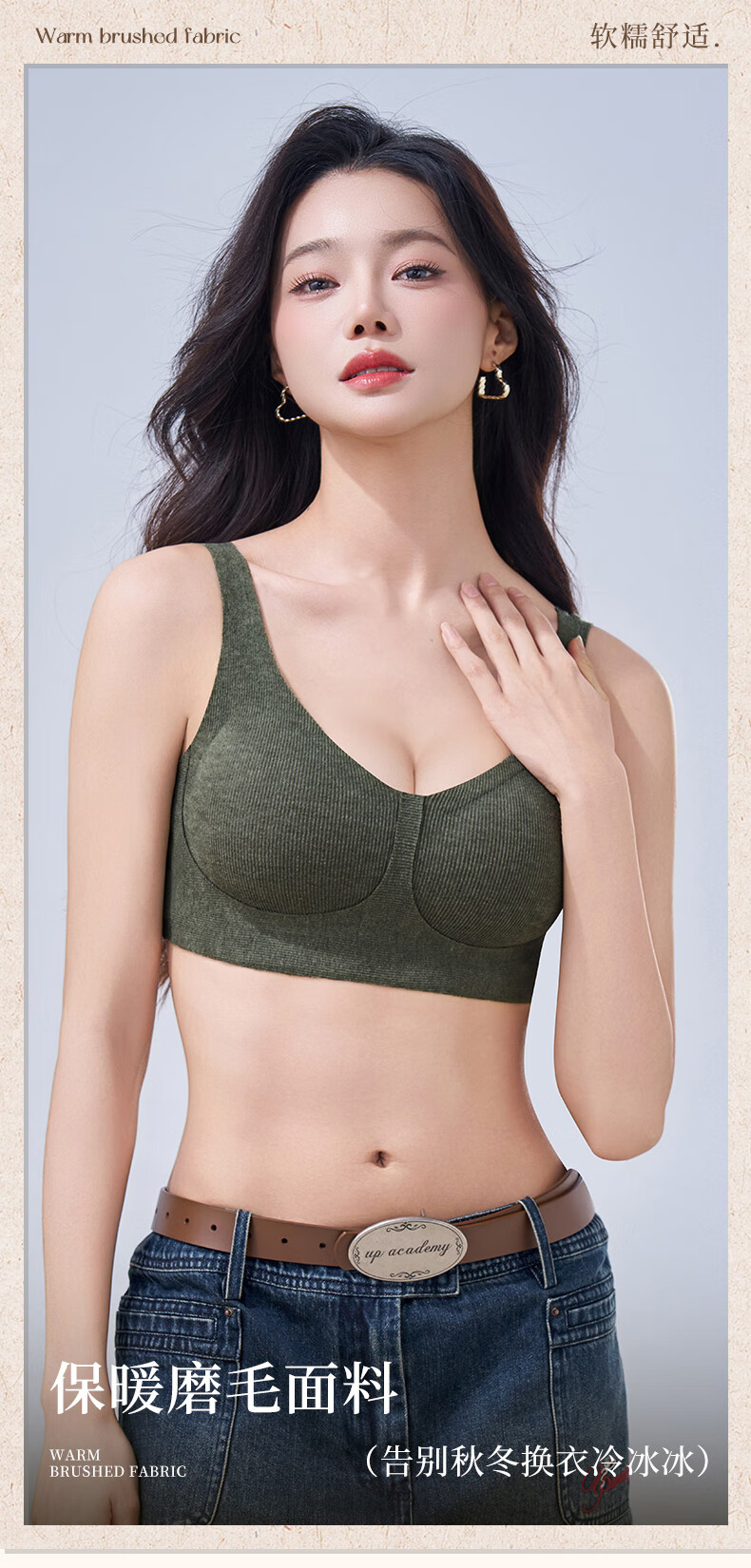 芬腾可安秋冬保暖文胸无痕内衣女冬季内搭聚拢防下垂无钢圈背心式文胸罩 灰色 XL (120-135斤)