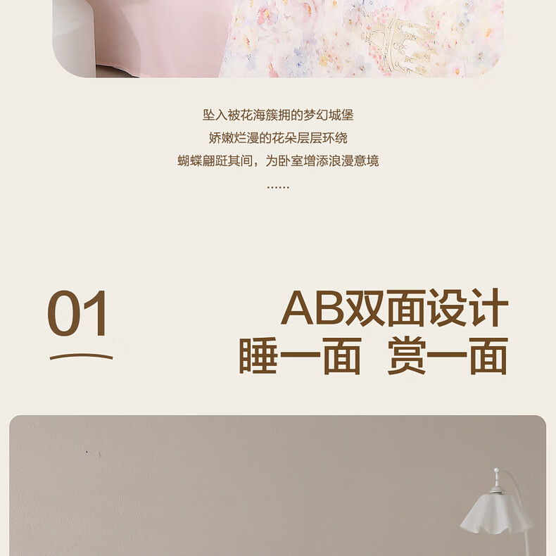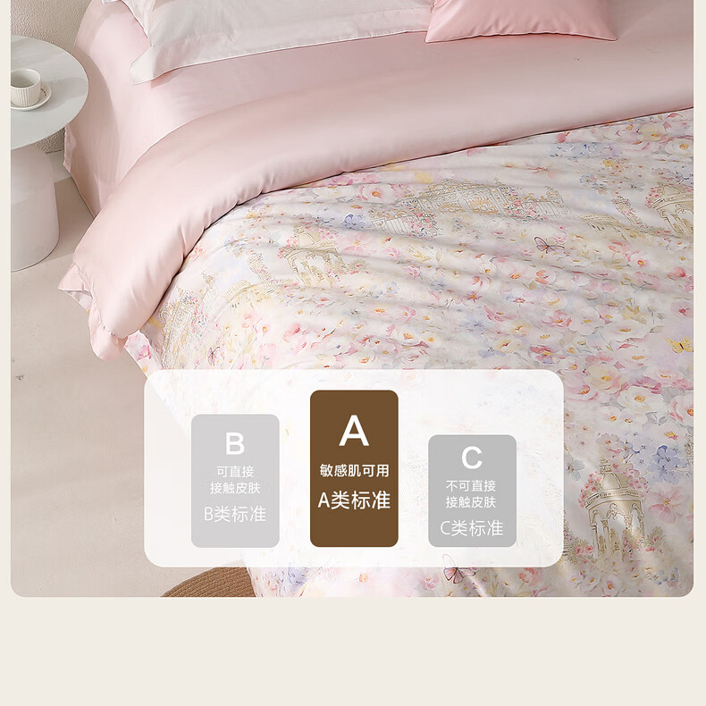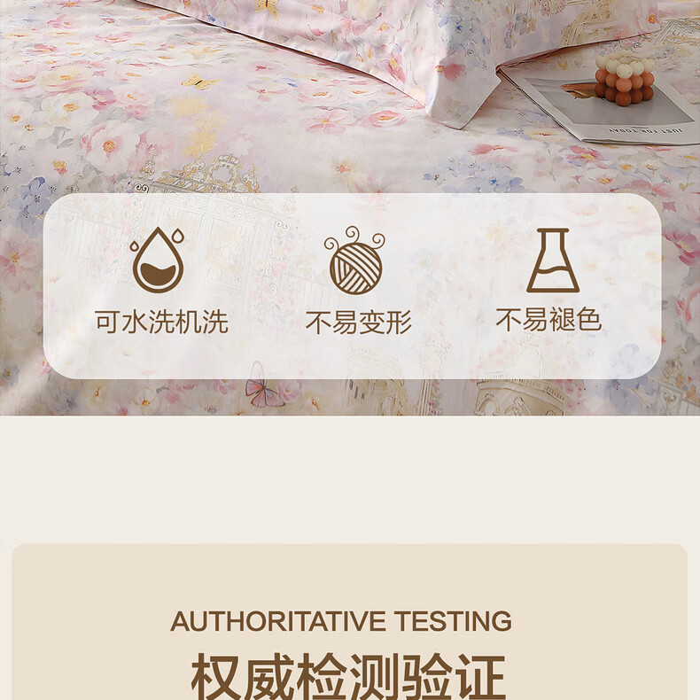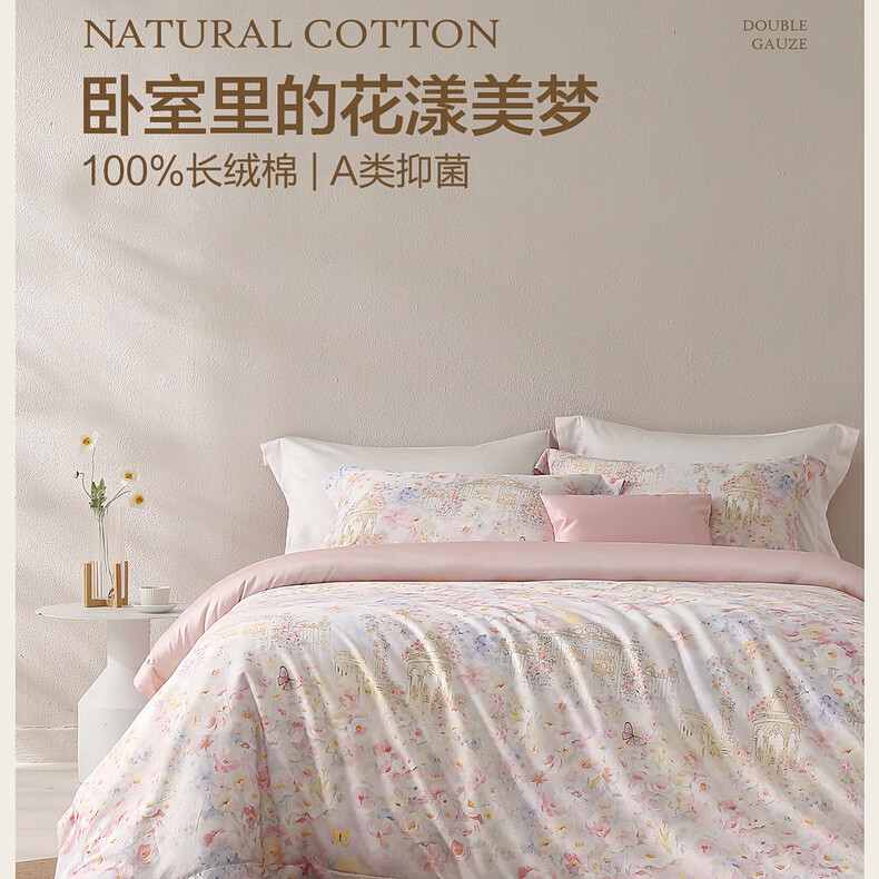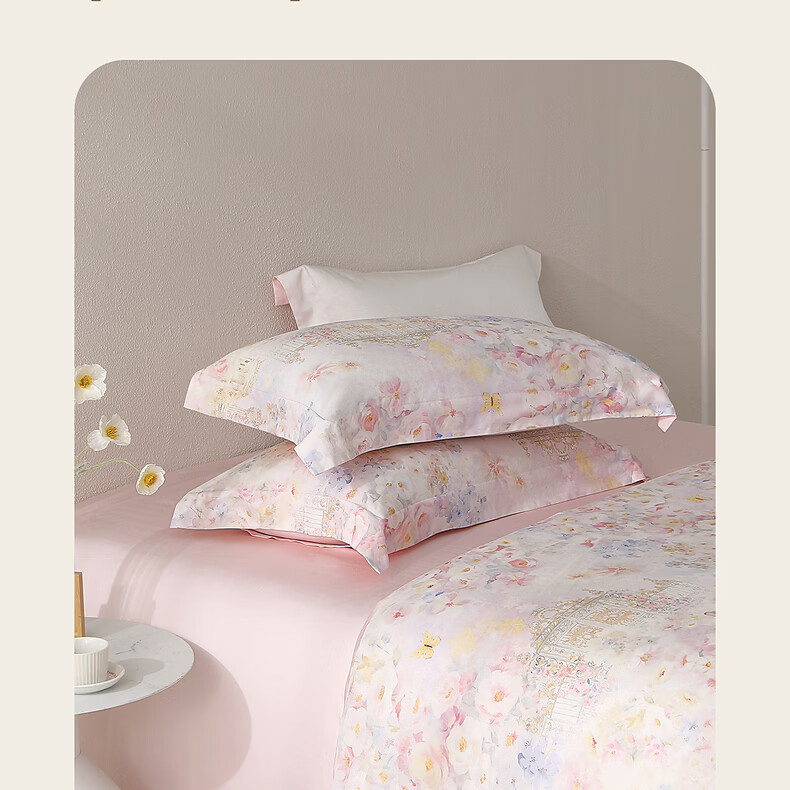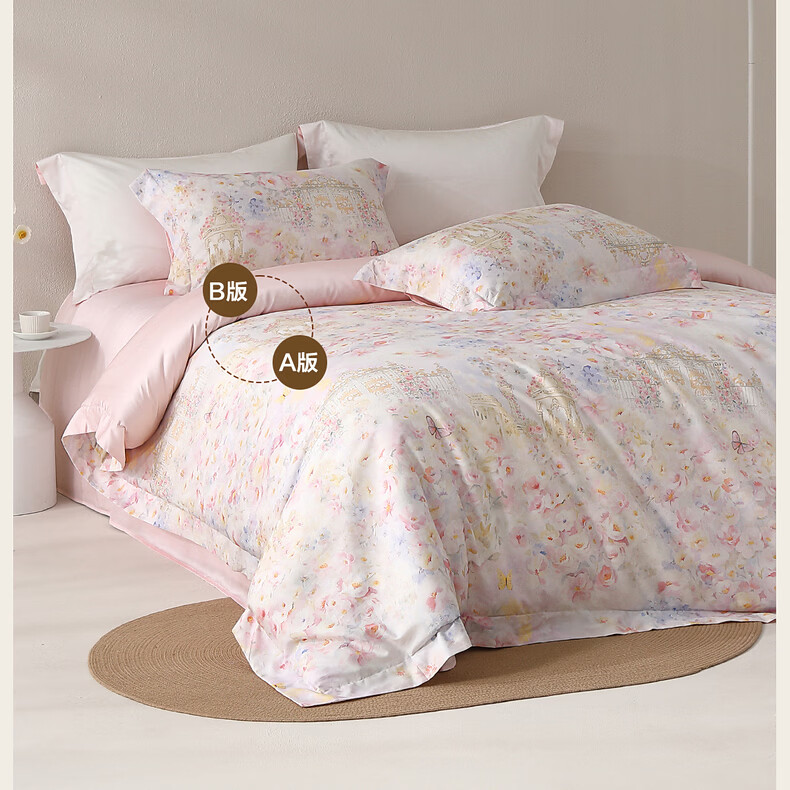 水星家纺床上四件套60支长绒棉纯棉100%A类轻奢高级26年春夏新品 繁花·蝶梦花堡 床单款 (被套150*210cm)