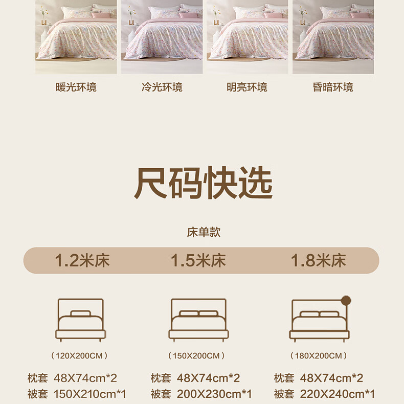 无印良品100%全棉四件套纯棉床单被套家用简约床笠款被罩宿舍裸睡床上用品 序语-咖 【100%纯棉 柔软舒适】 1.8m 床单款 四件套-被套200x230cm