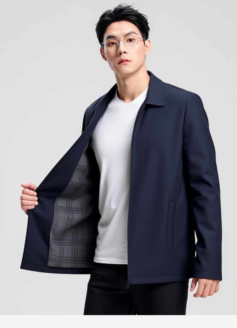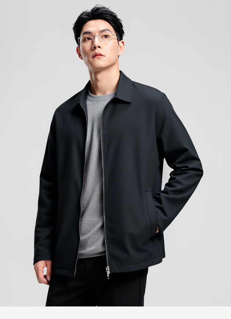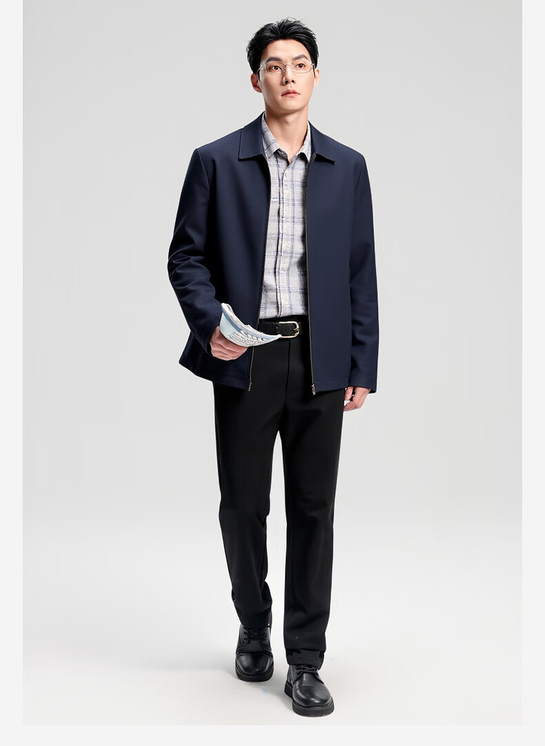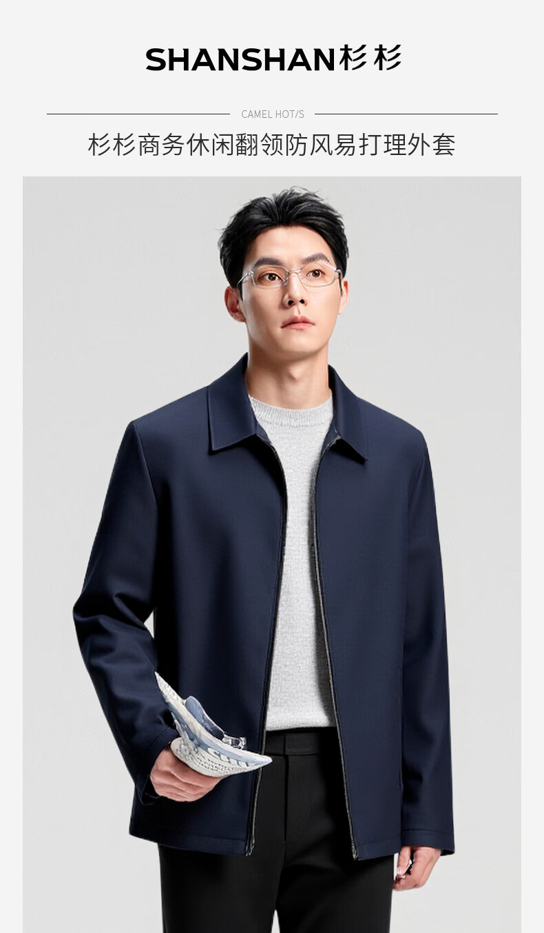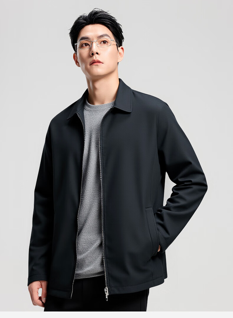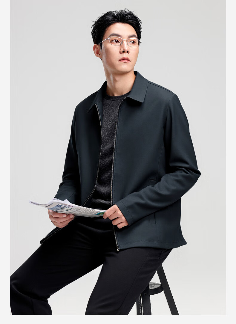 杉杉行政夹克男2026春季新款商务休闲翻领上衣男新年红品外套礼物男 藏青色 XL /180
