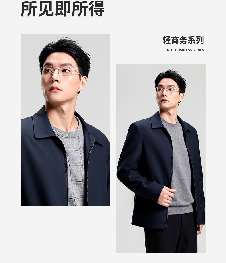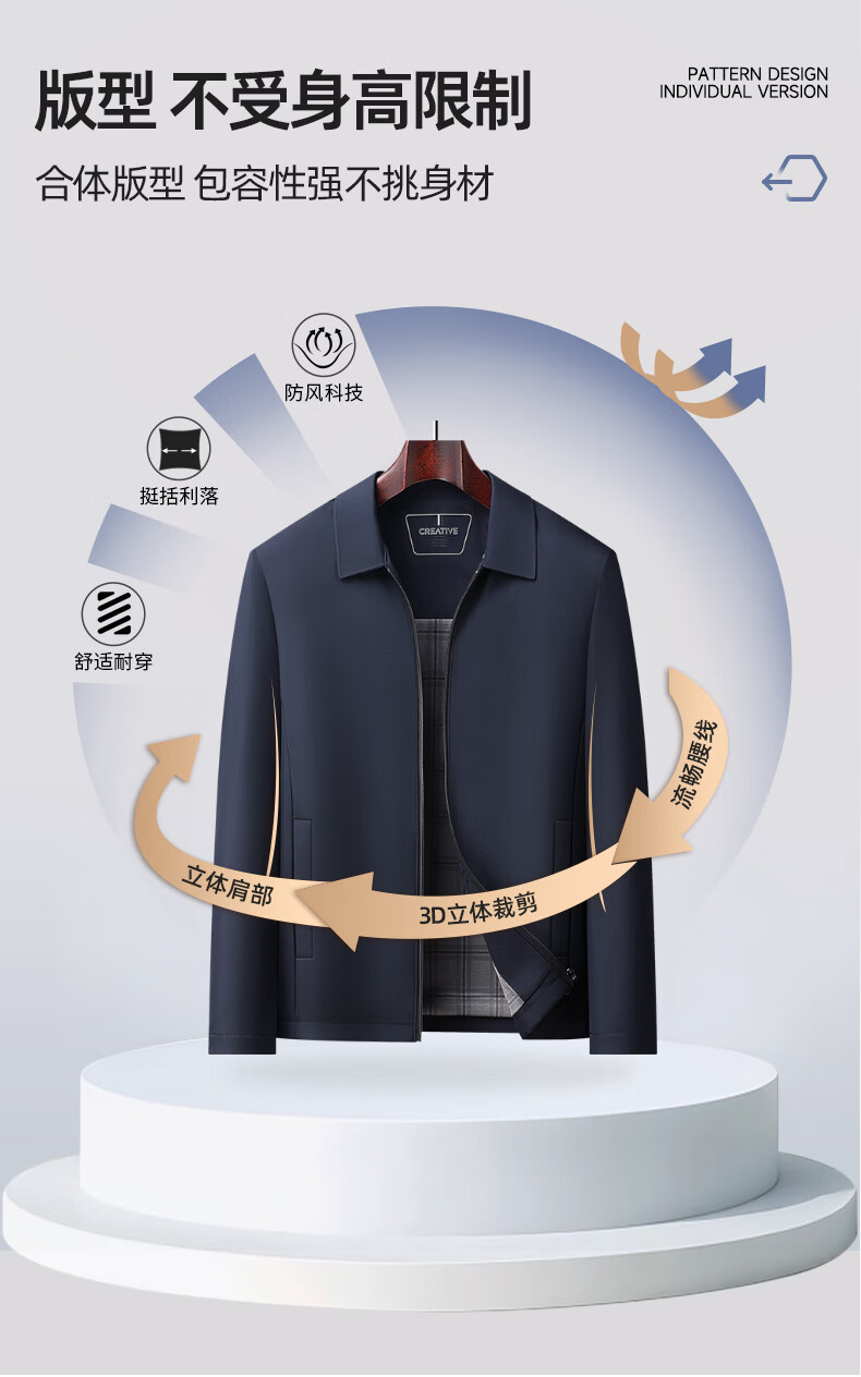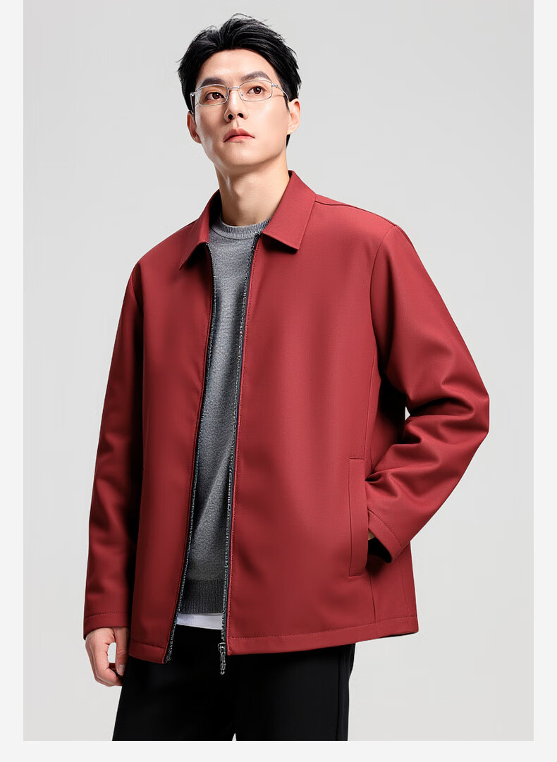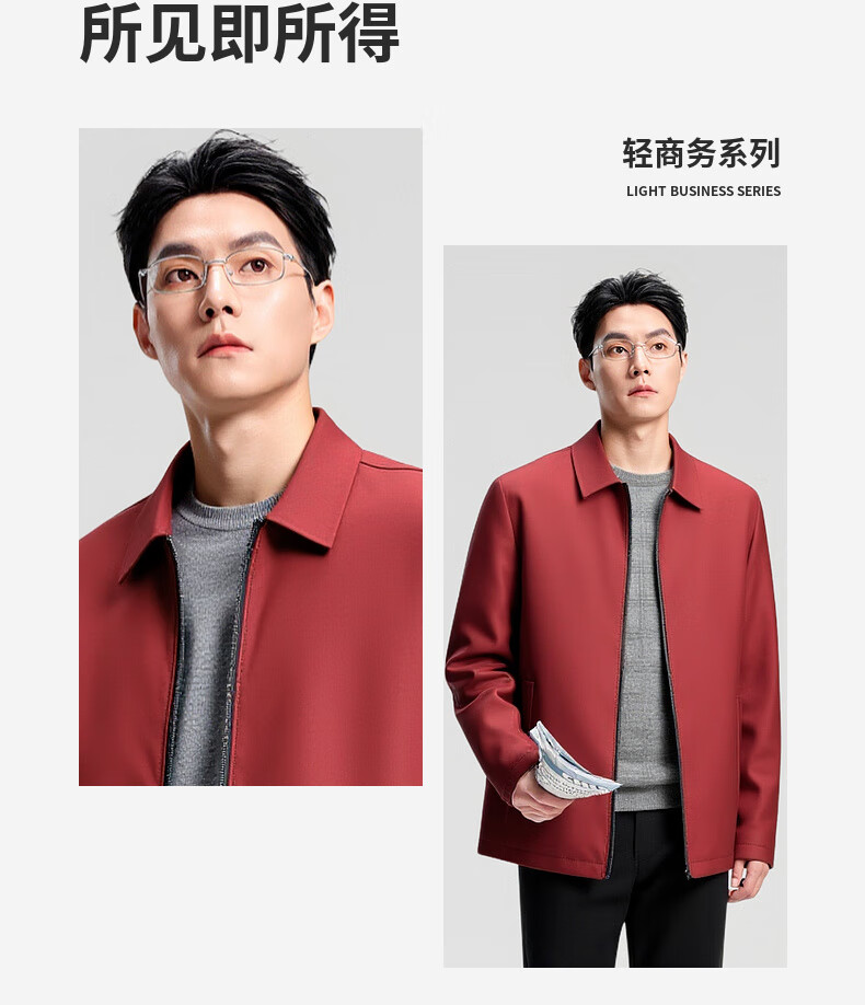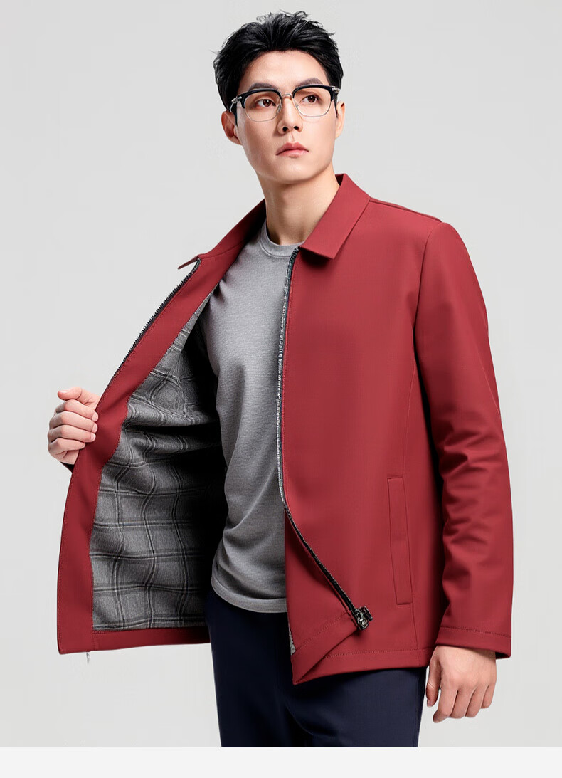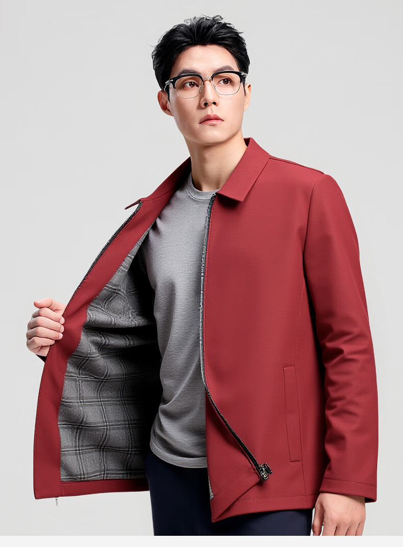 杉杉行政夹克男2026春季新款商务休闲翻领上衣男新年红品外套礼物男 藏青色 XL /180