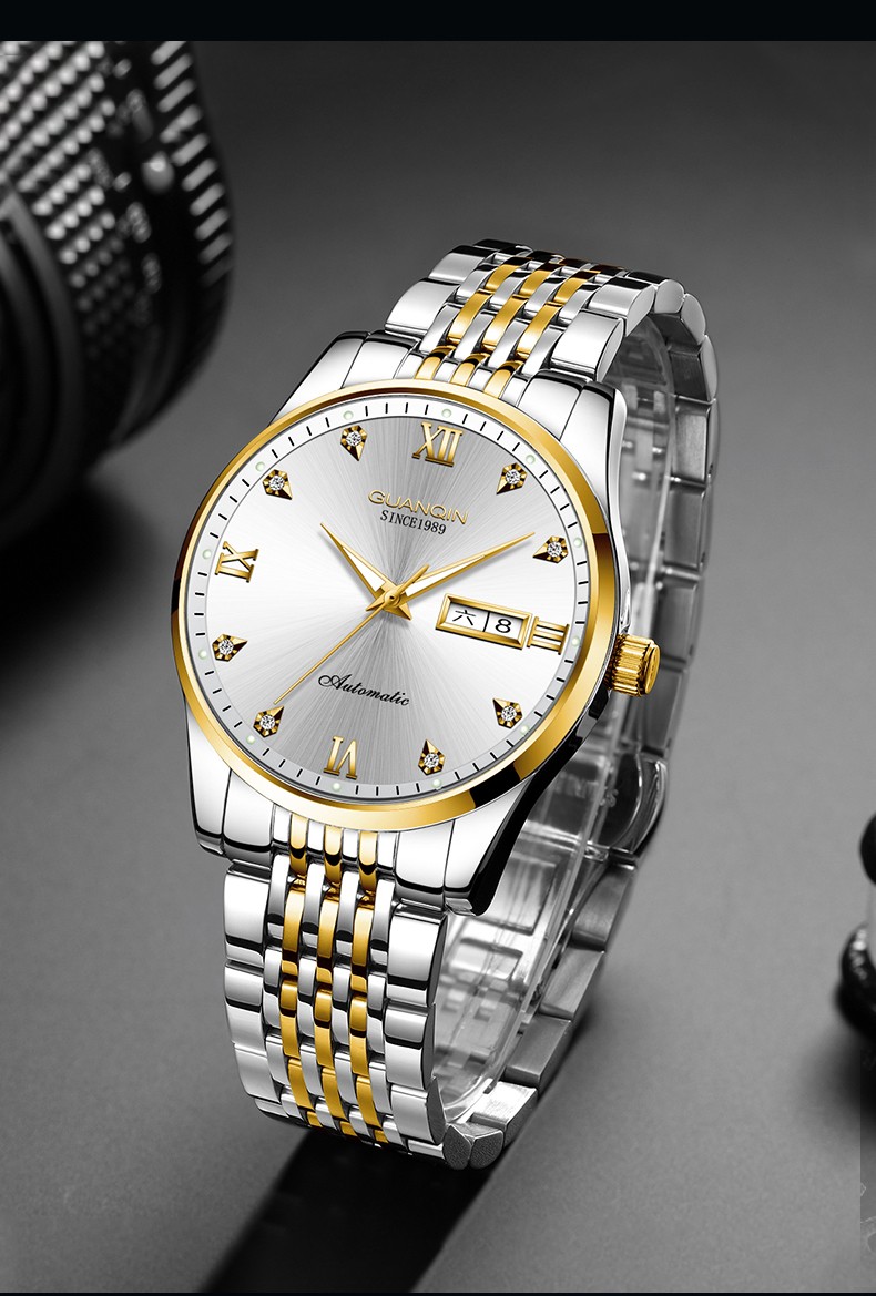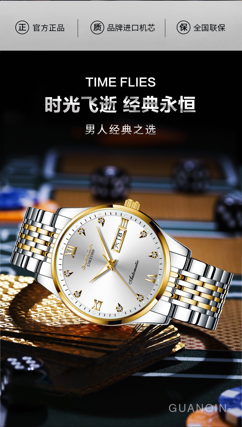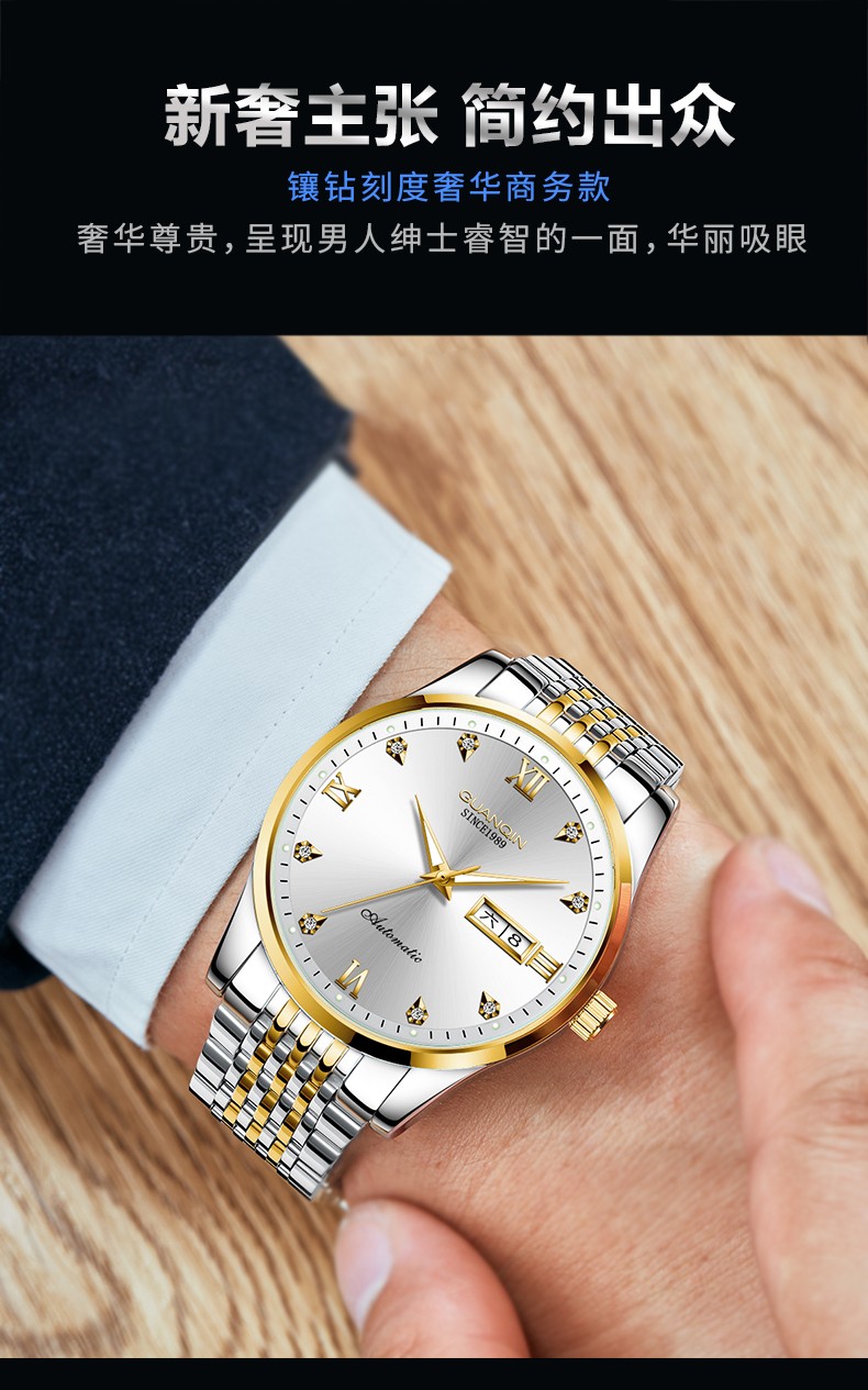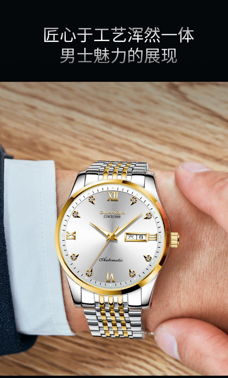 冠琴(GUANQIN)十大品牌手表男机械表全自动男表夜光防水进口机芯男士手表 间金白面【进口西鉄城机芯】