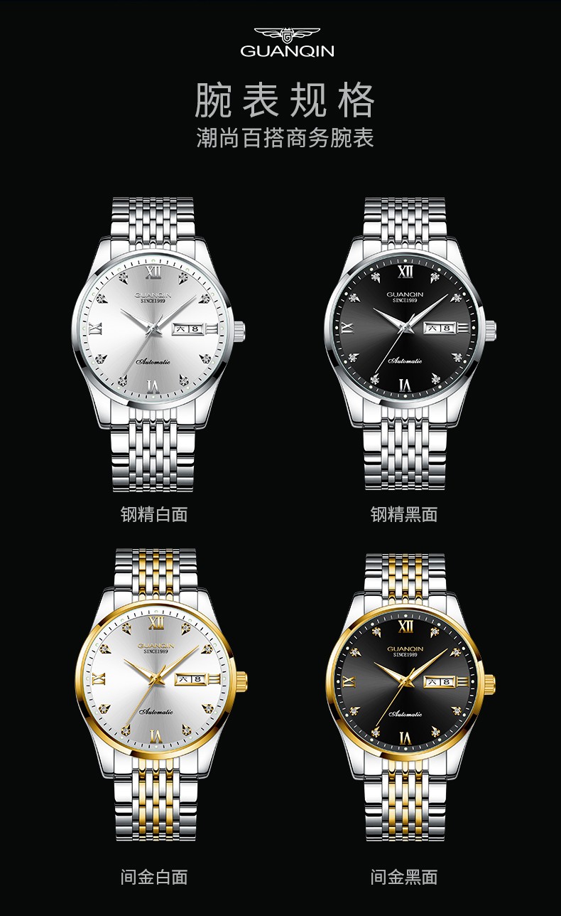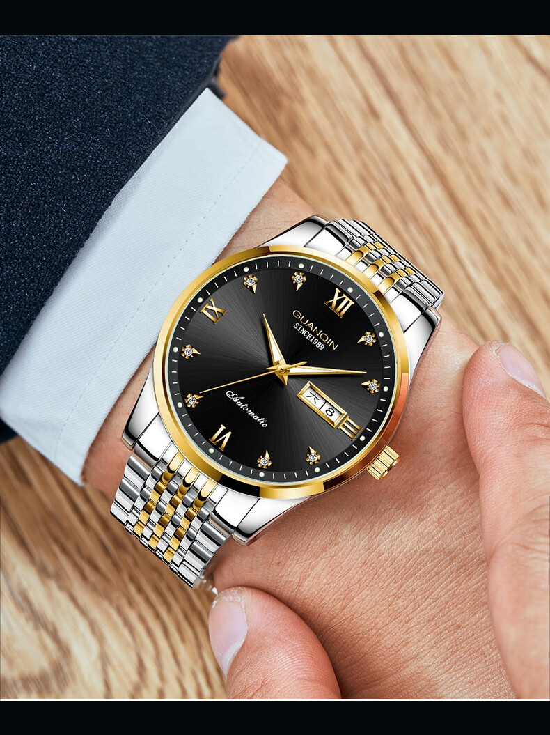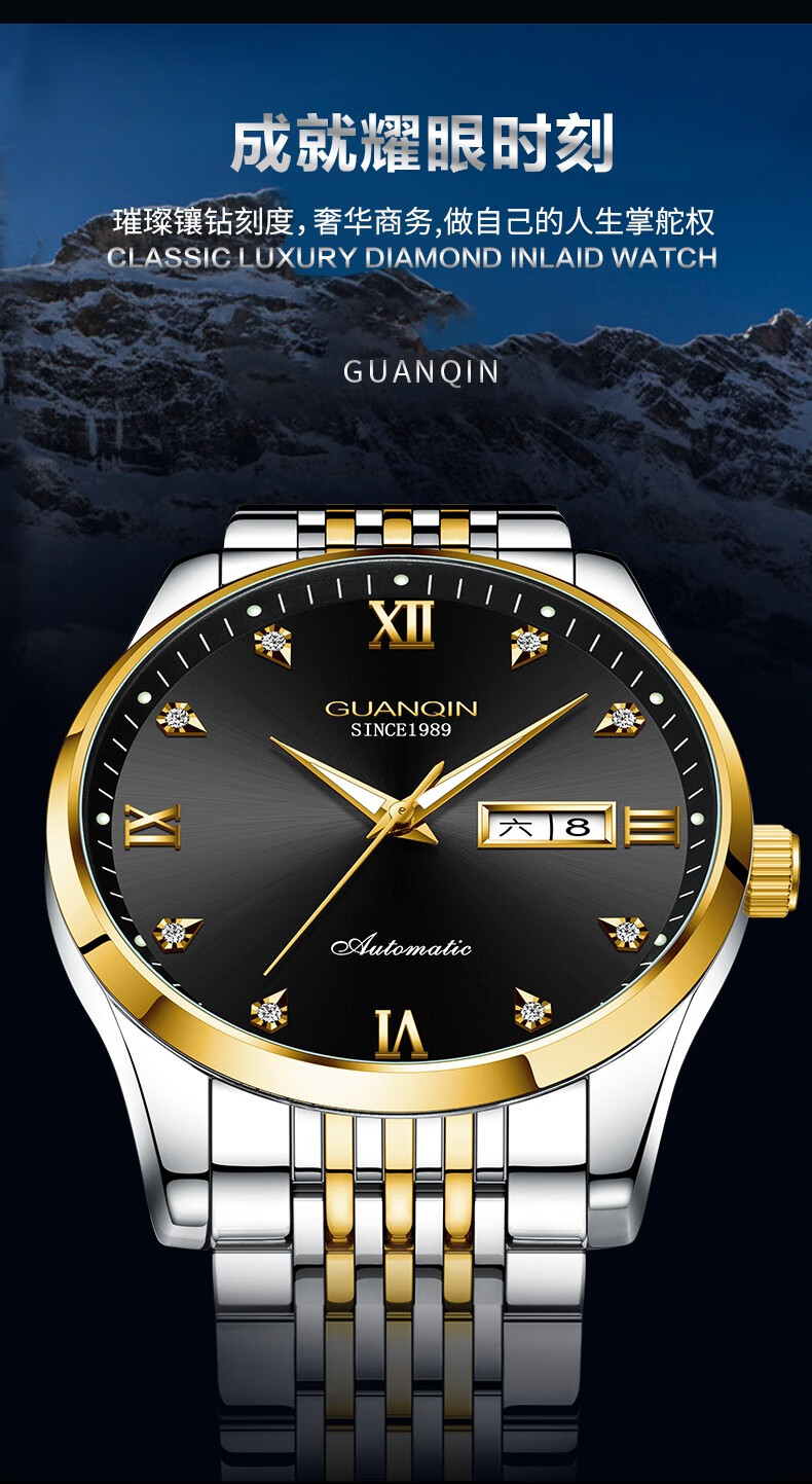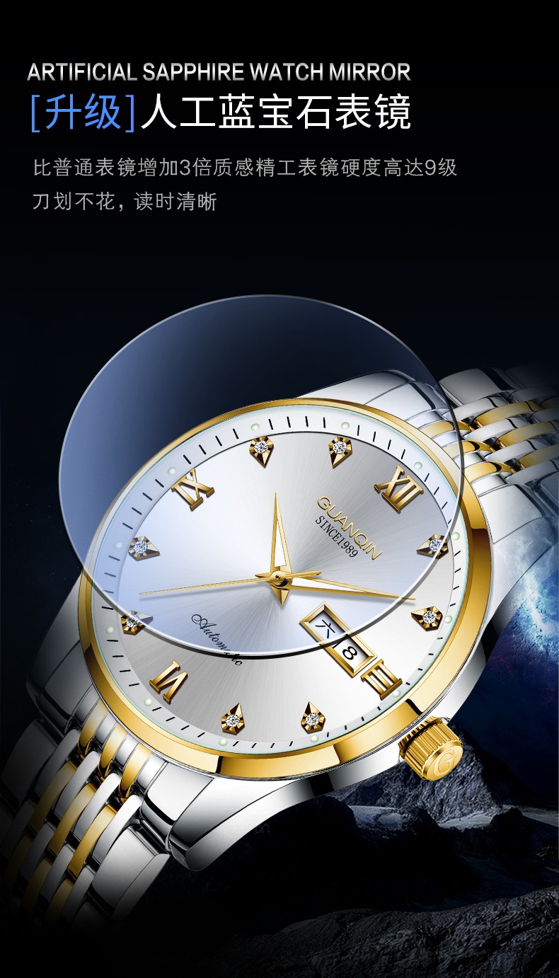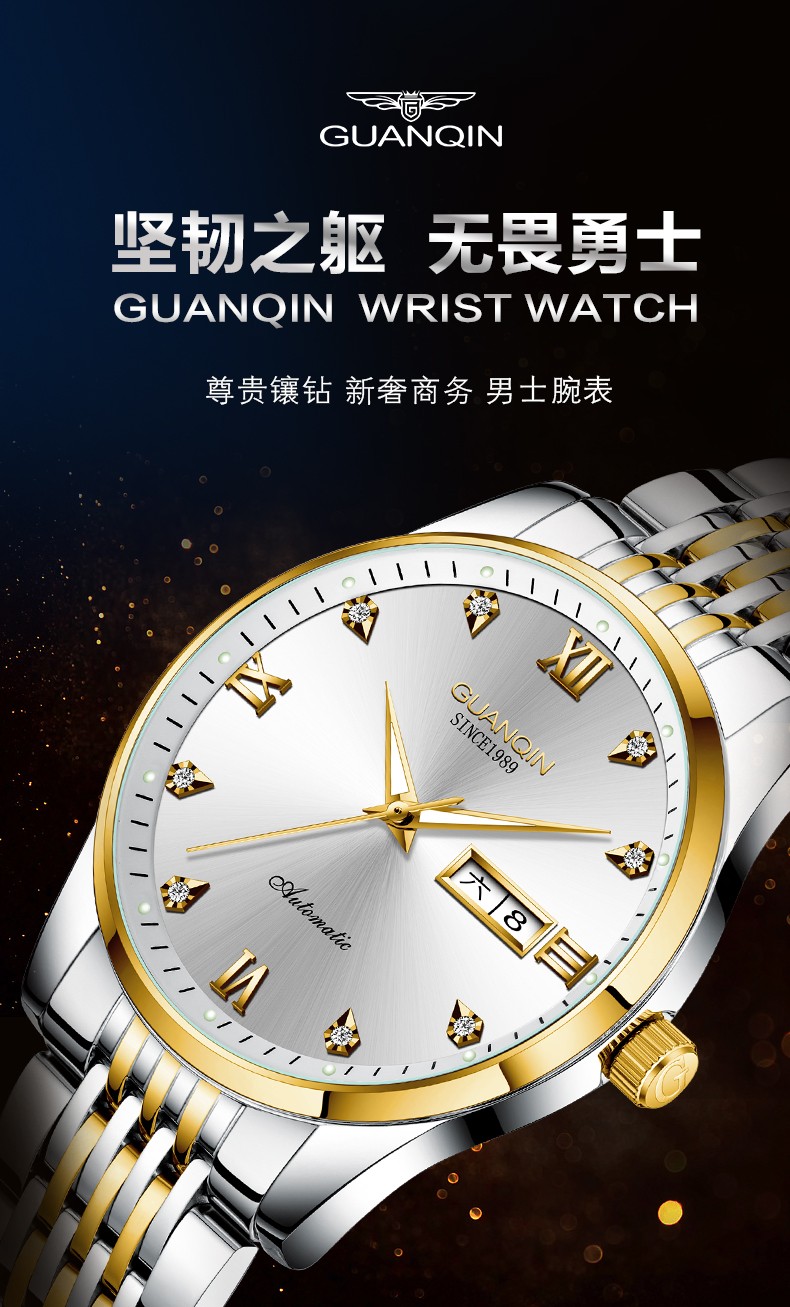 冠琴(GUANQIN)十大品牌手表男机械表全自动男表夜光防水进口机芯男士手表 间金白面【进口西鉄城机芯】