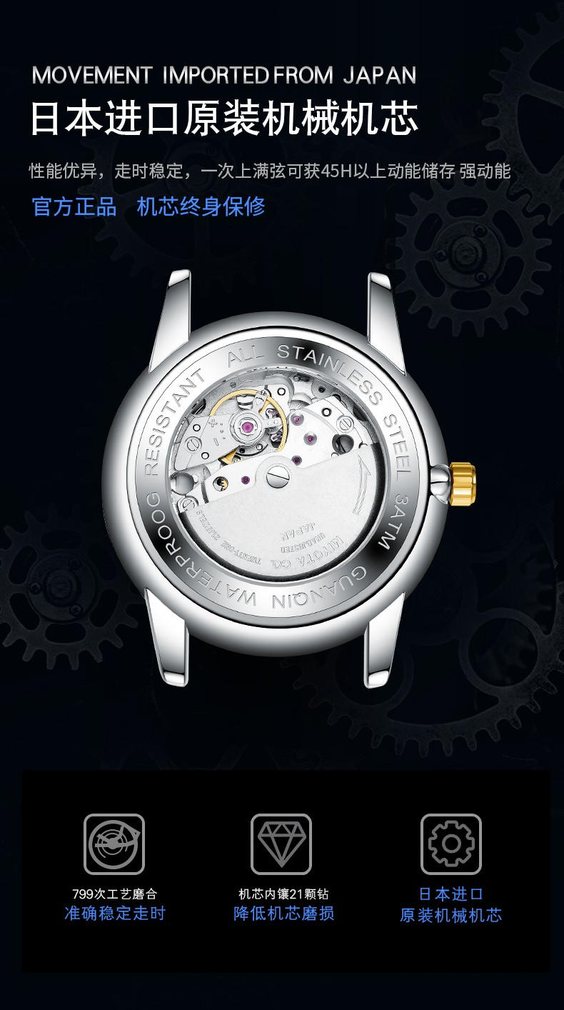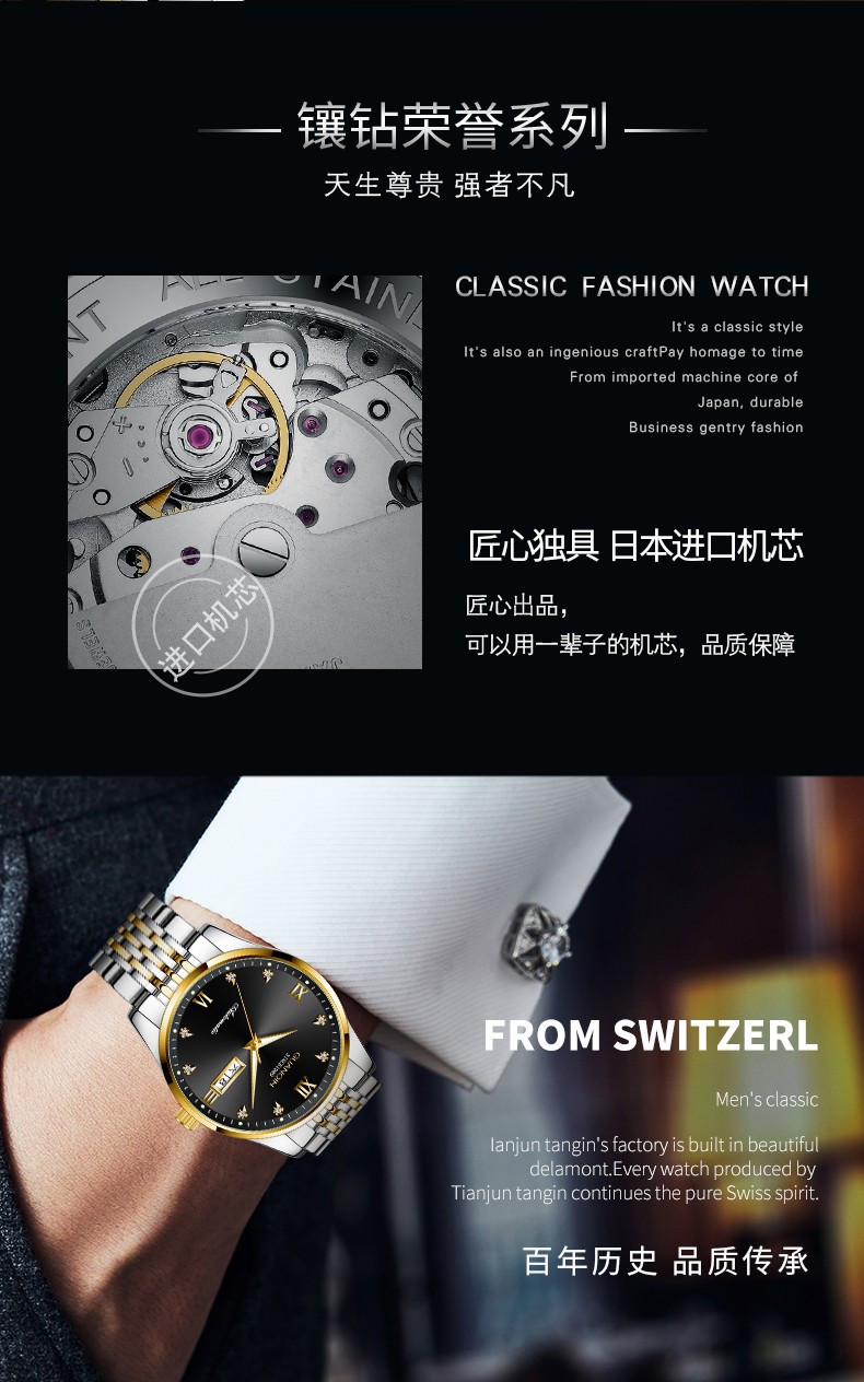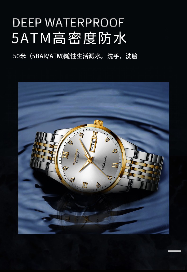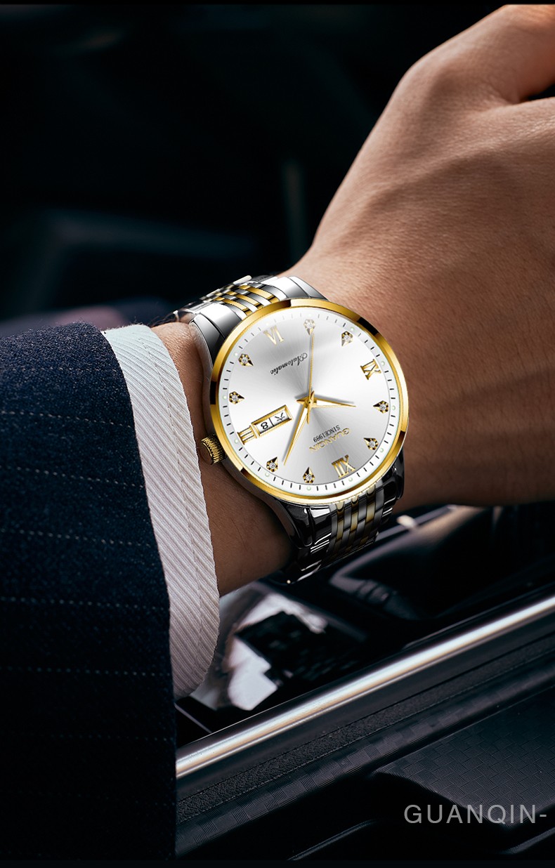 冠琴(GUANQIN)十大品牌手表男机械表全自动男表夜光防水进口机芯男士手表 间金白面【进口西鉄城机芯】