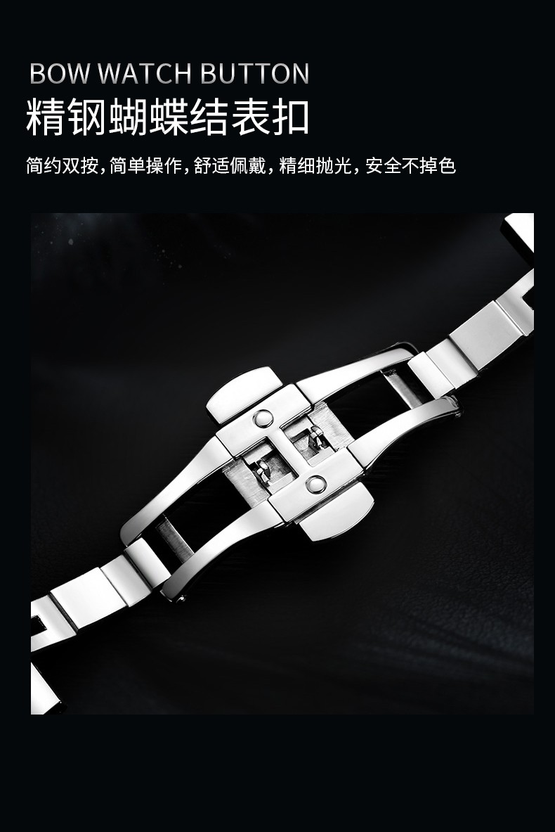 依波(EBOHR)大师系列男士自动机械表立体镂空国表防水实心钢带手表送男友礼物 黑盘钢带50660117