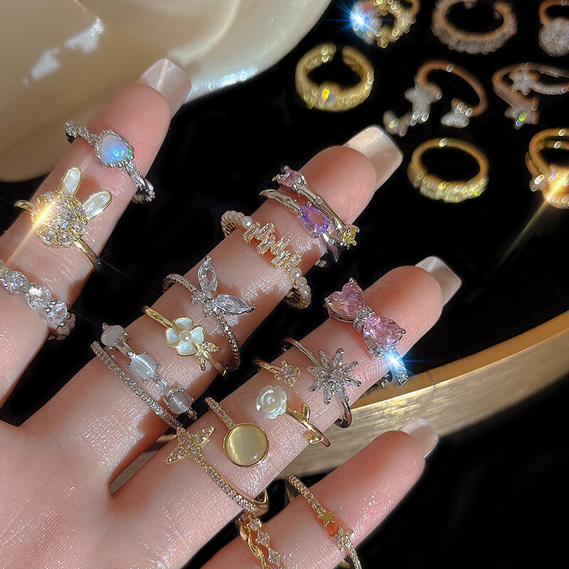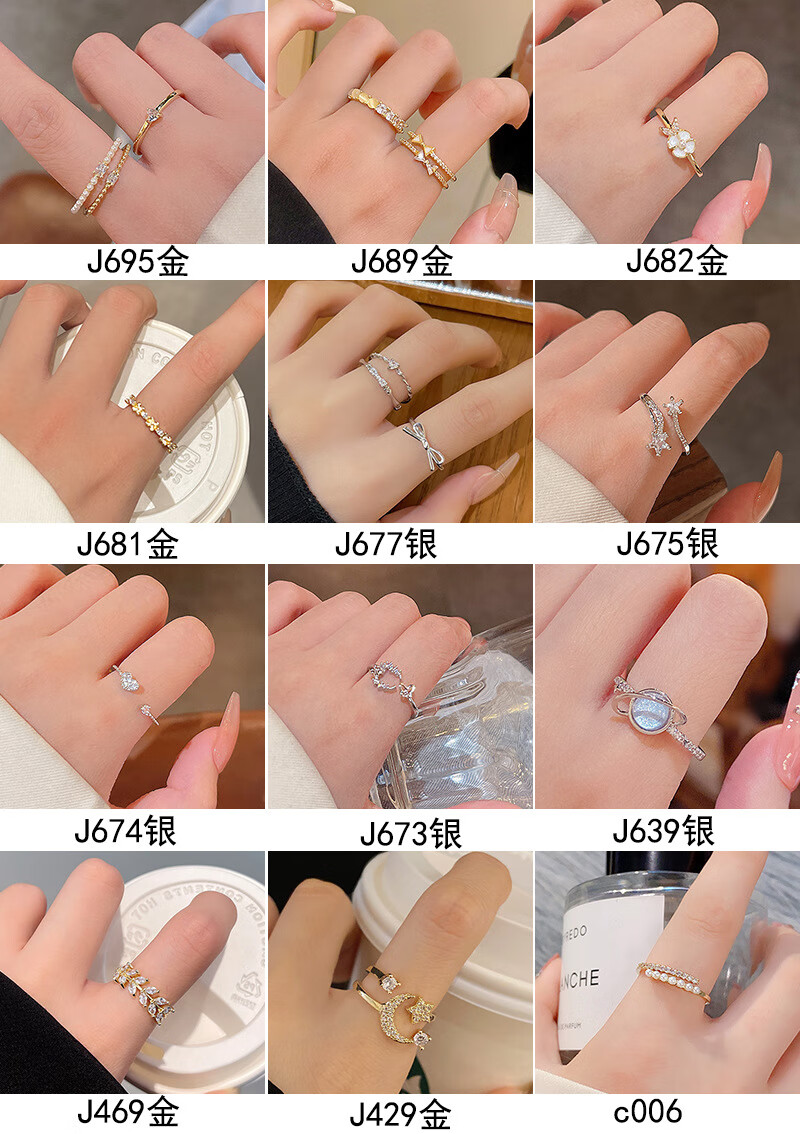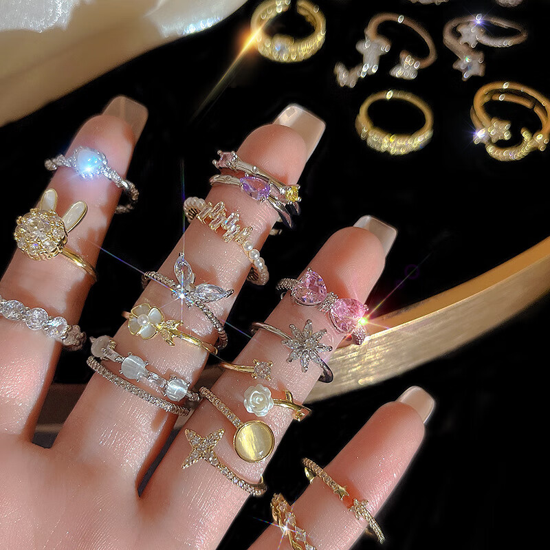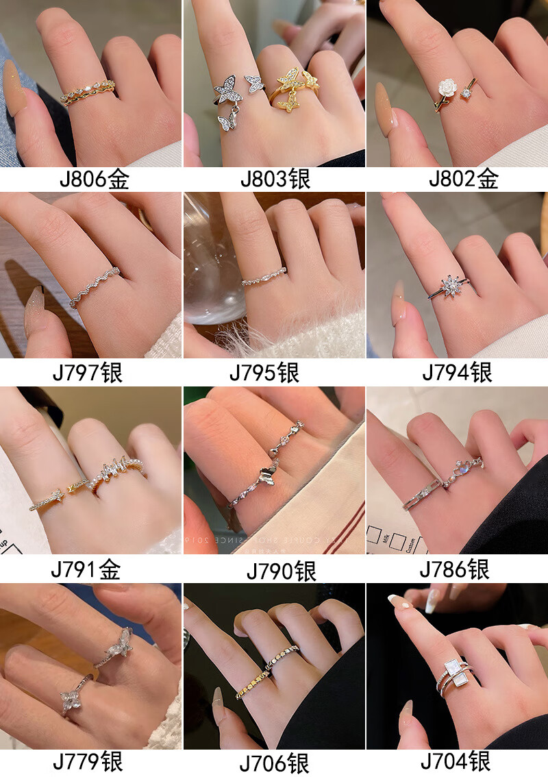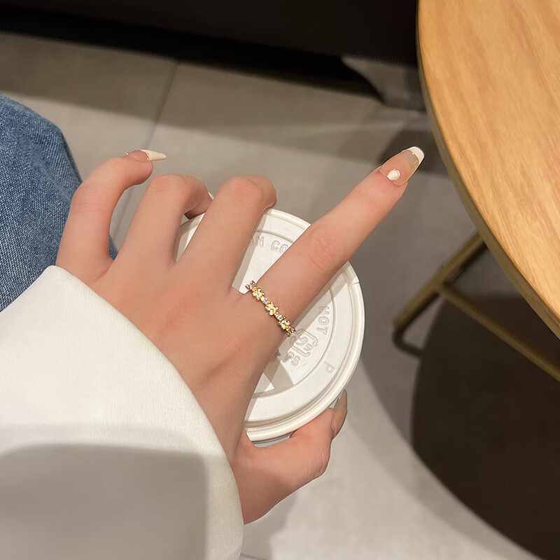 闺香初芙戒指女简约开口珍珠食指环可调节时尚个性 J802金-小清新山茶花戒指