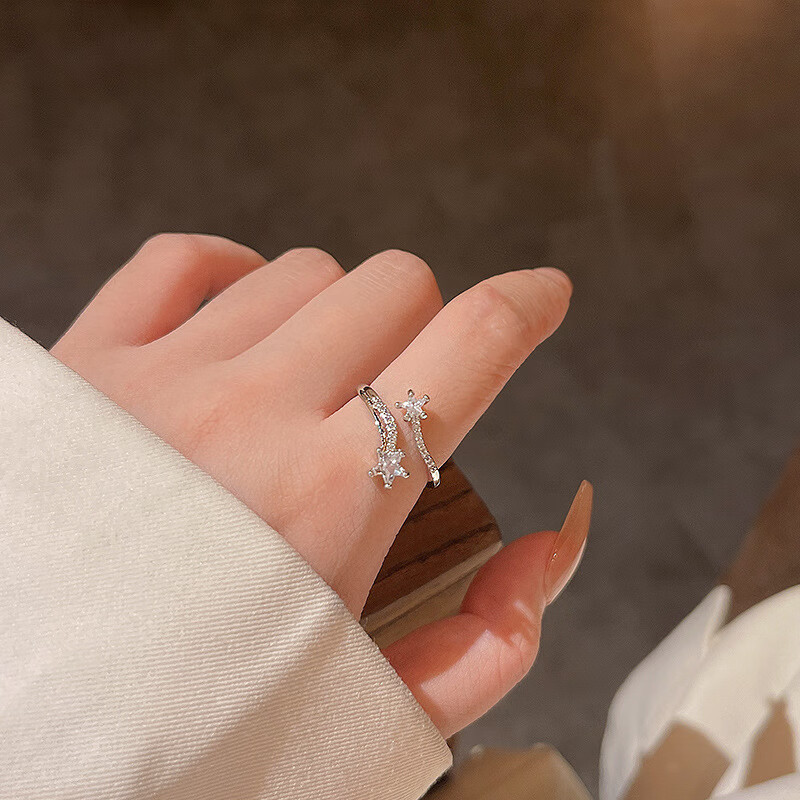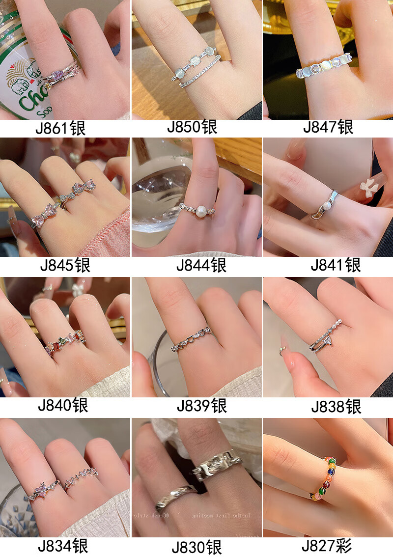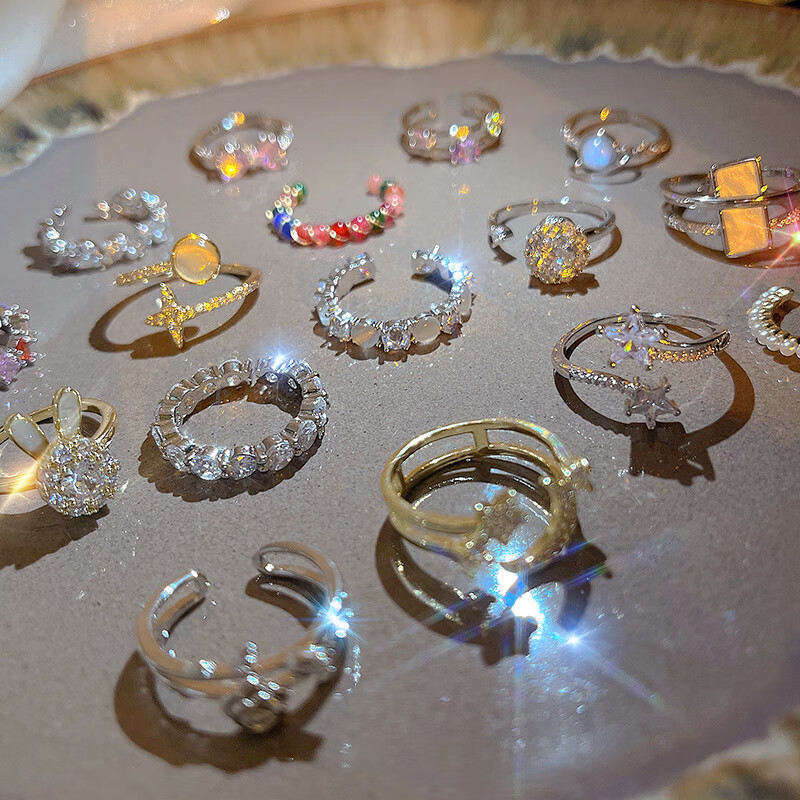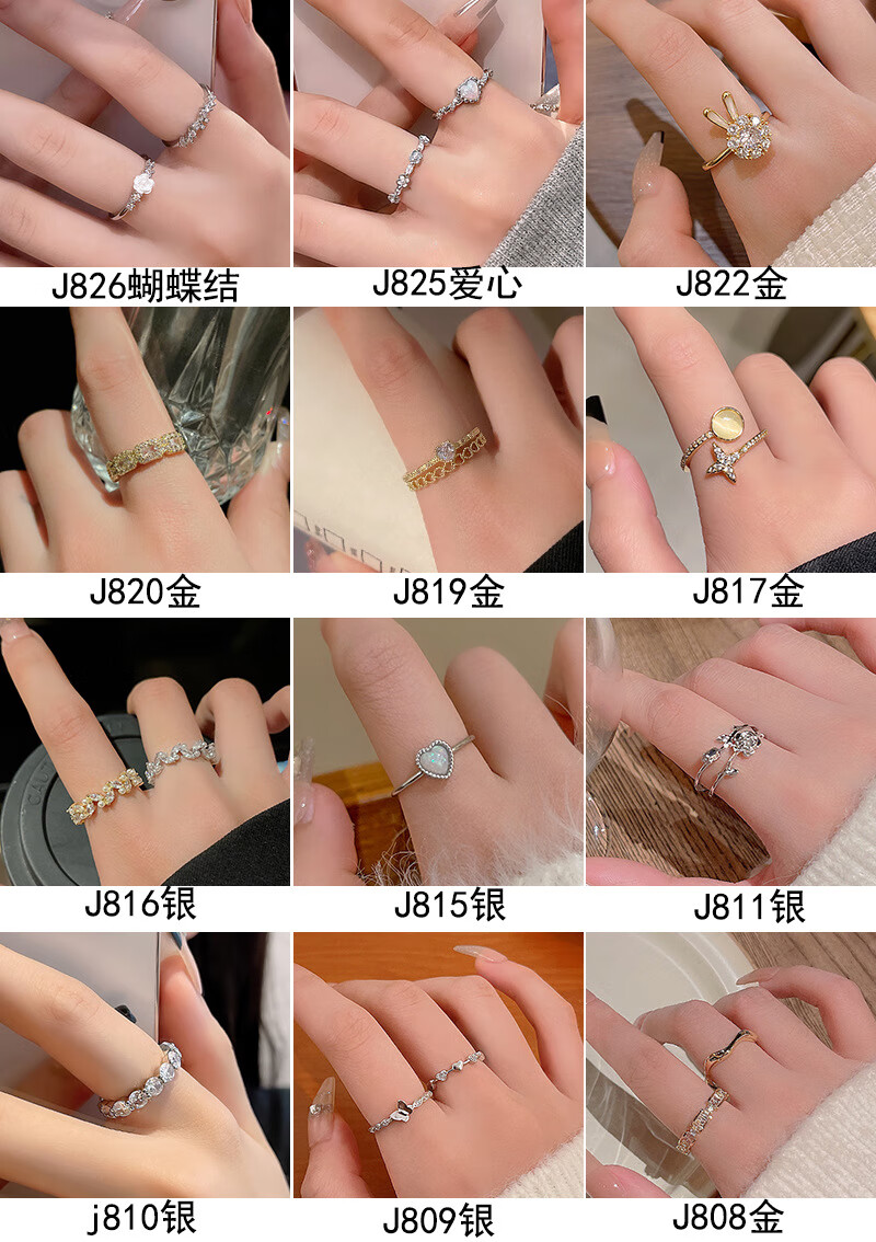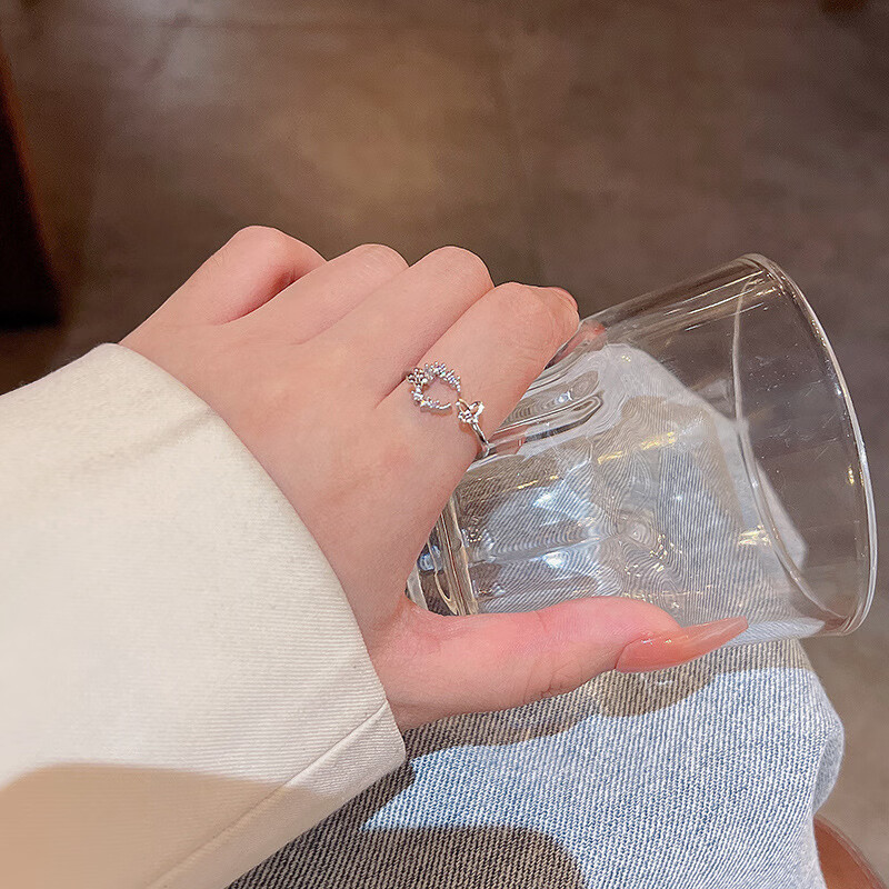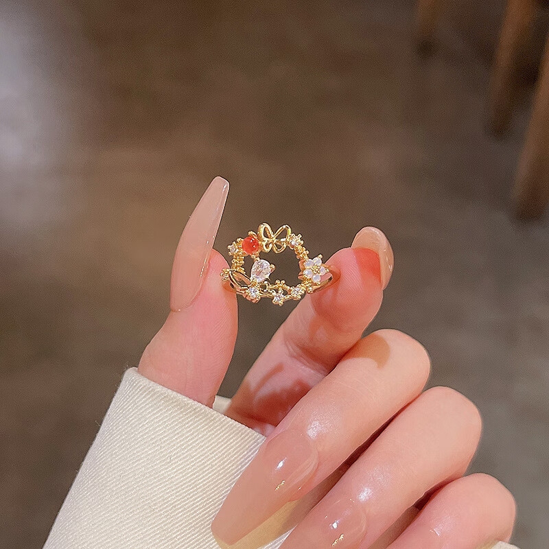 闺香初芙戒指女简约开口珍珠食指环可调节时尚个性 J802金-小清新山茶花戒指