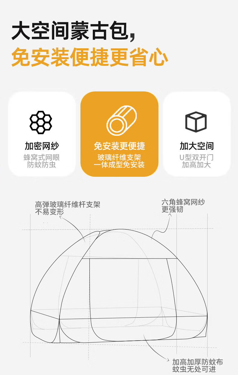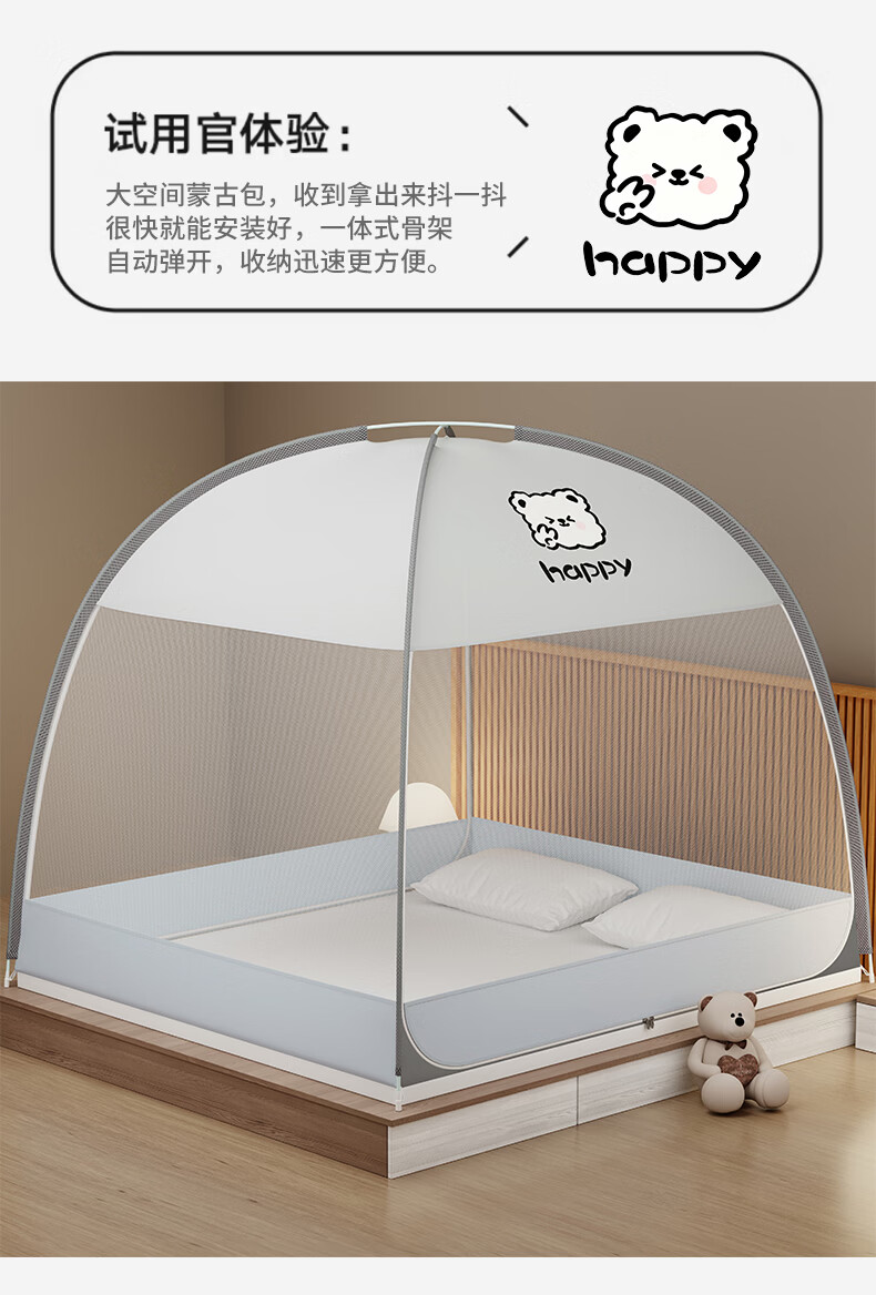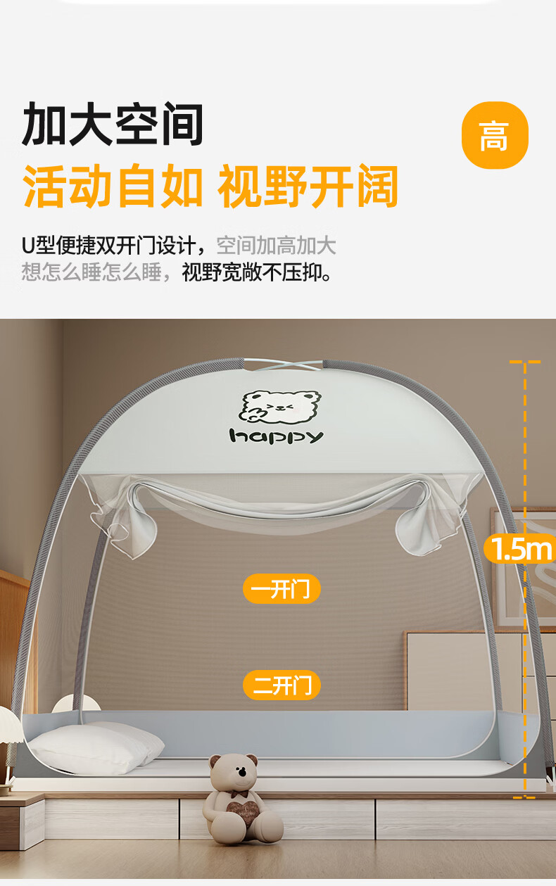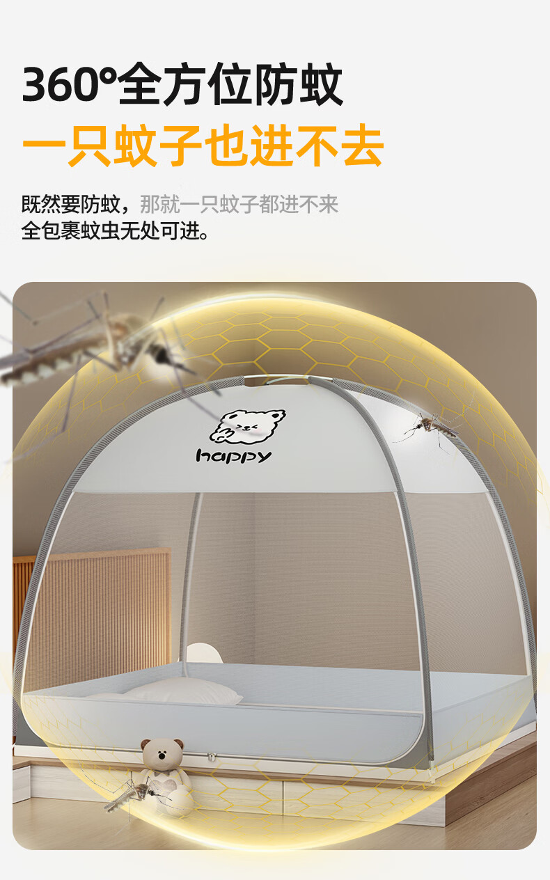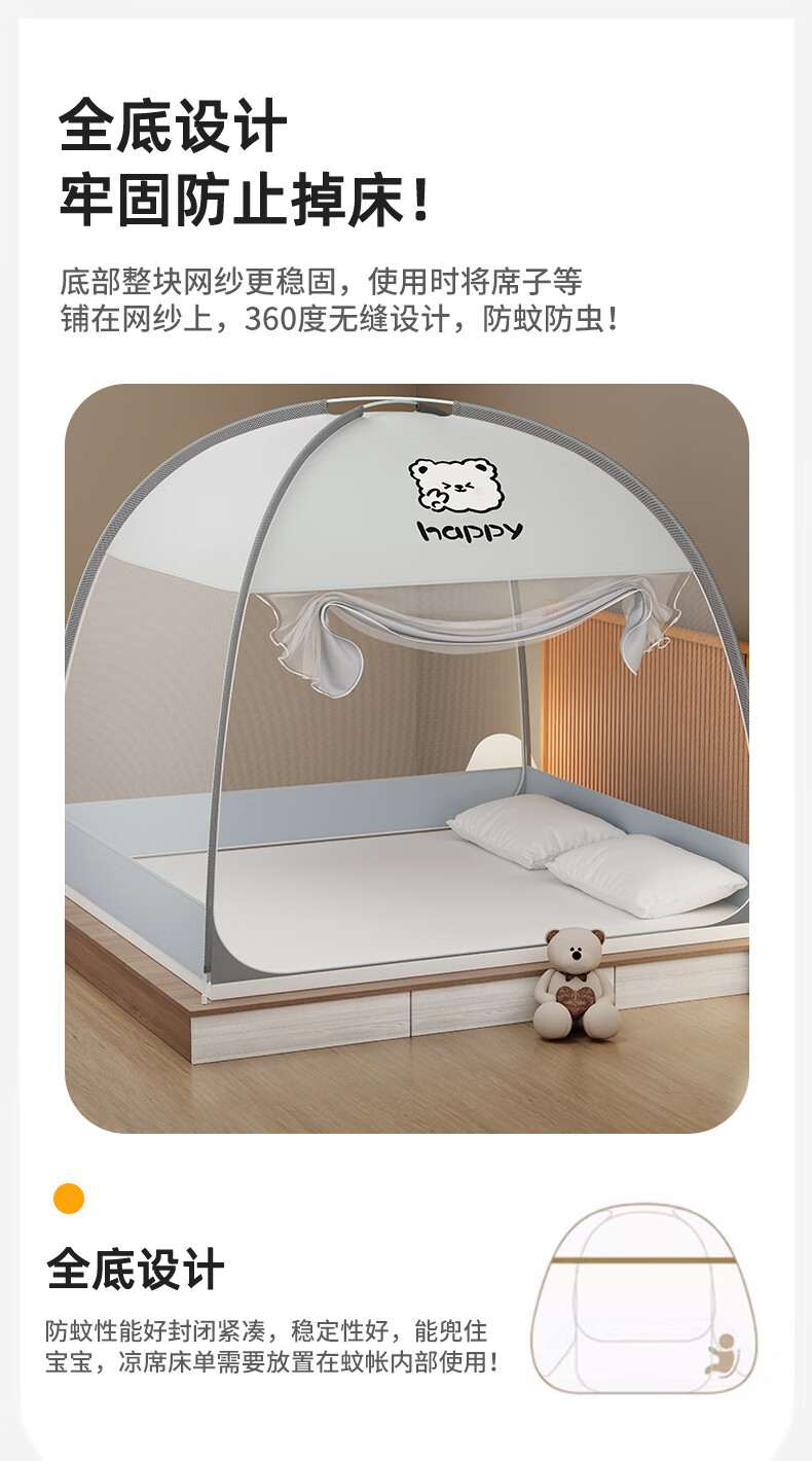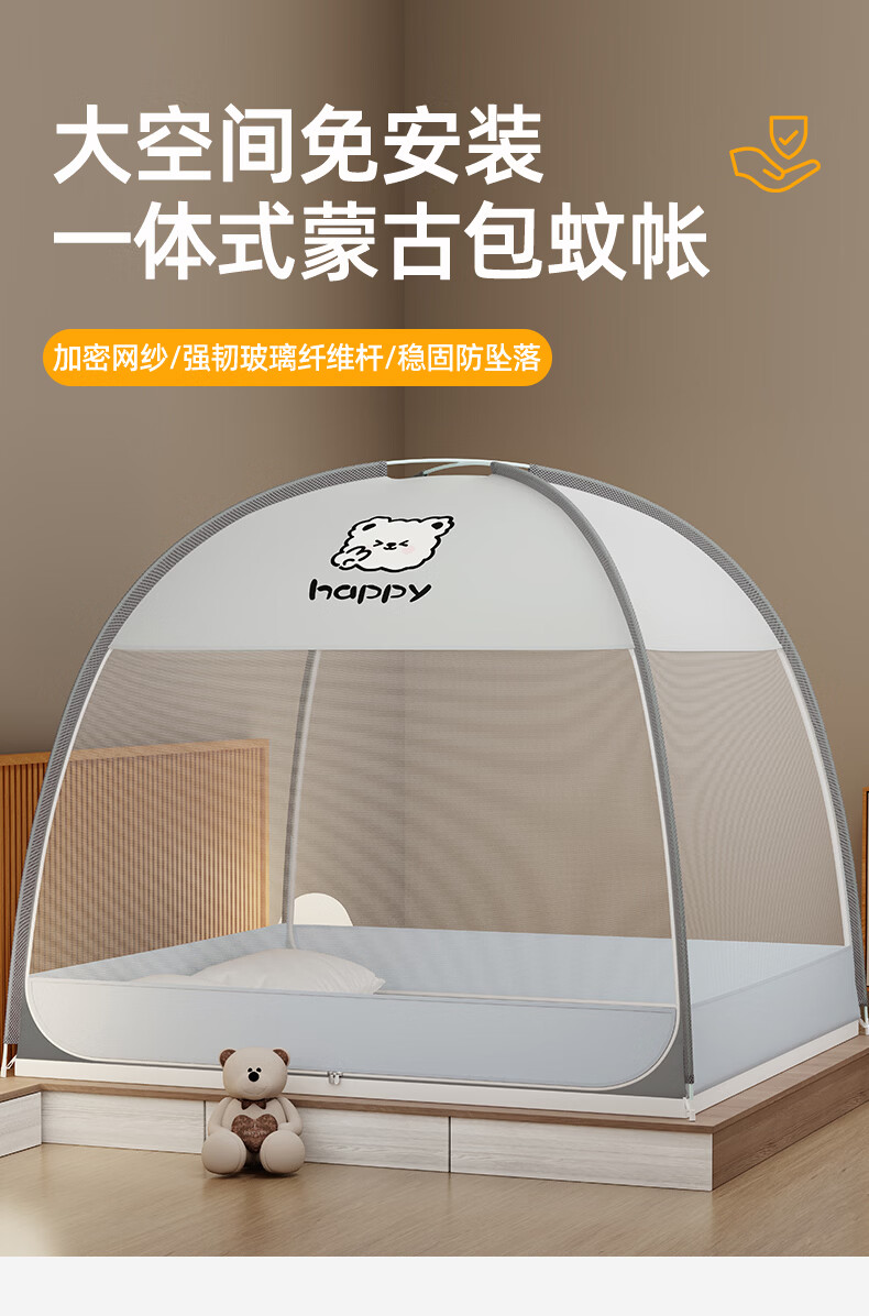 伊路卡新款免安装蒙古包蚊帐1.8x2米家用1.5米床1.2m儿童床蚊帐 鱼趣【升级加固款】 180*198*160cm高