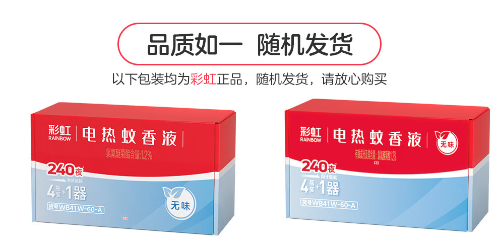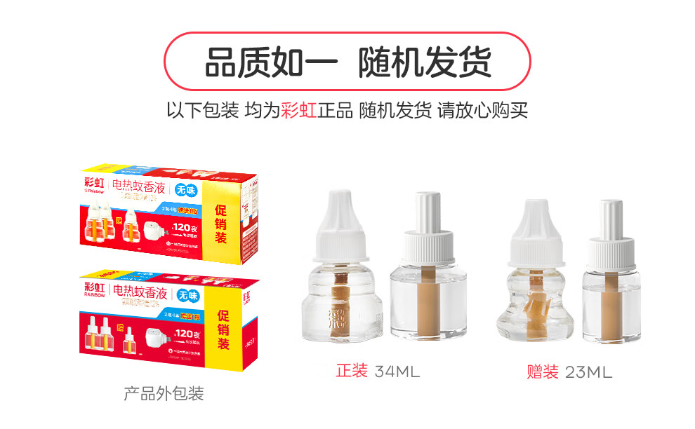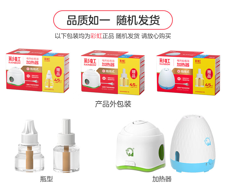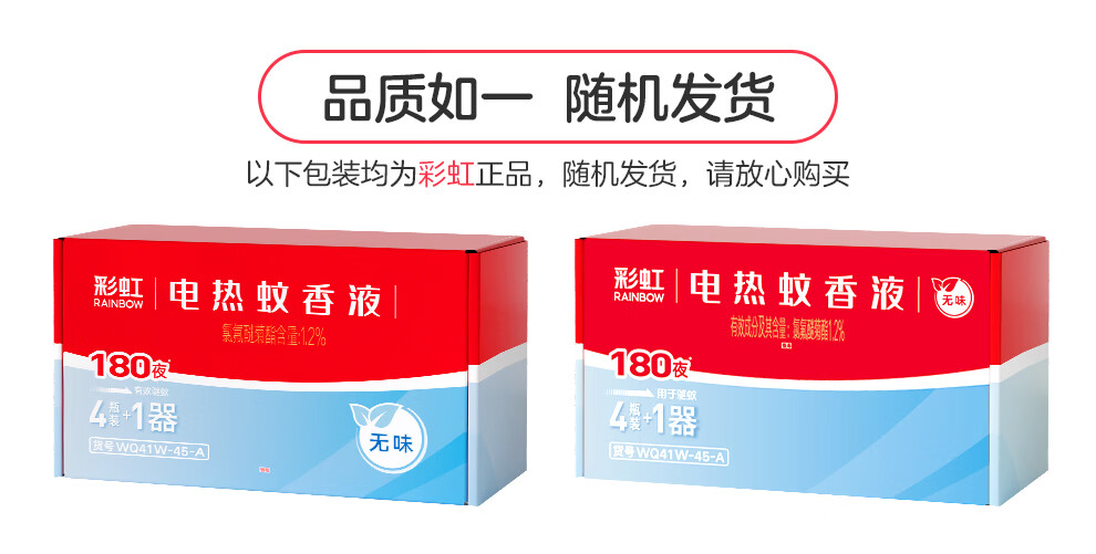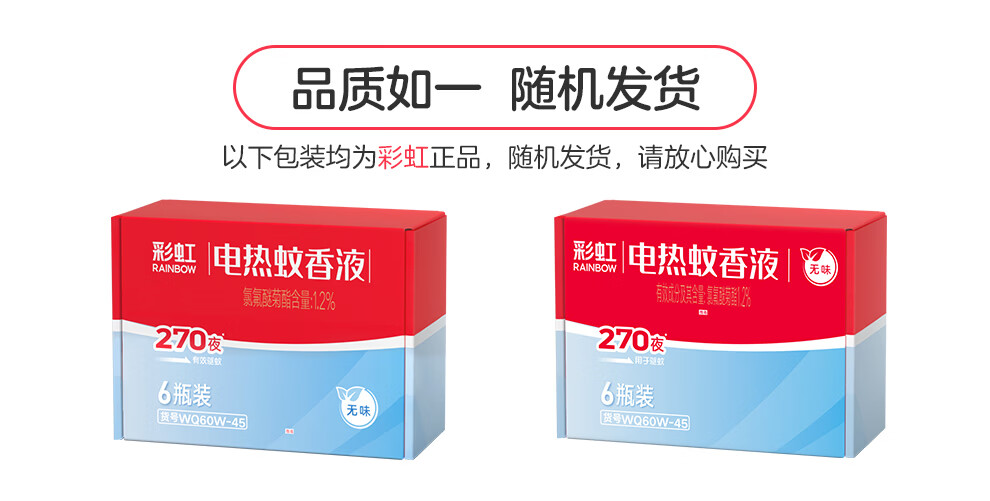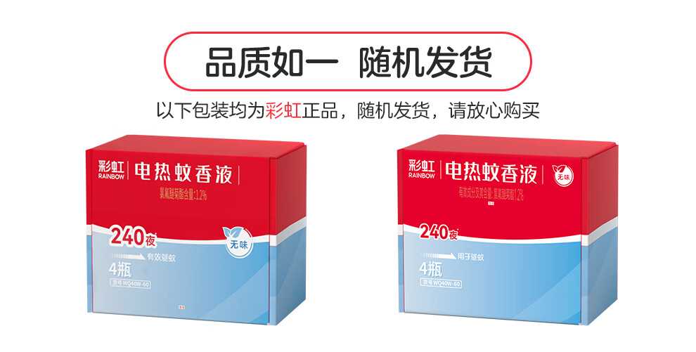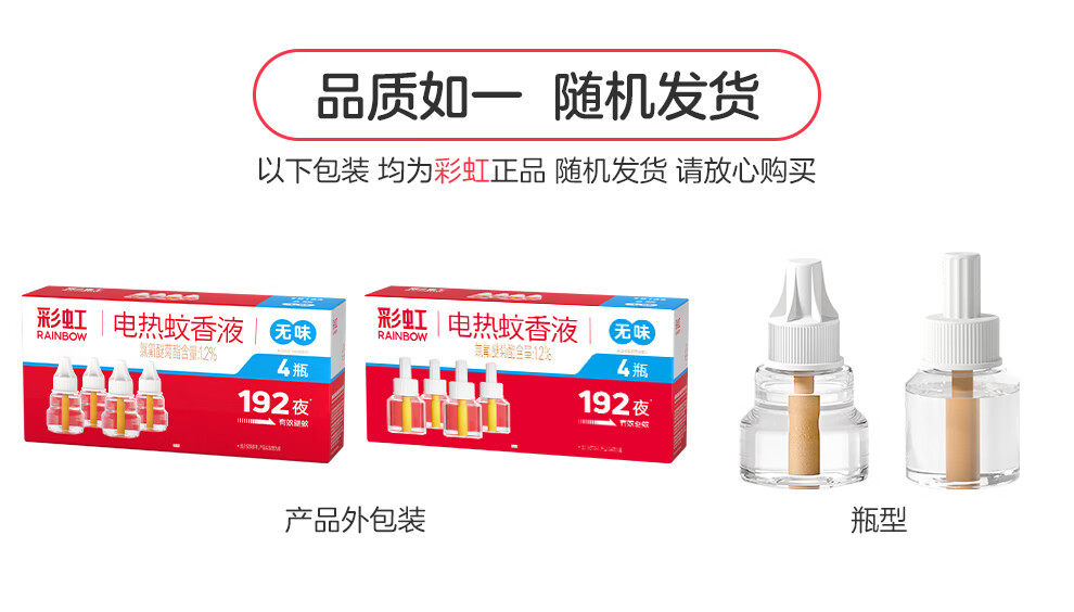 彩虹电热蚊香液驱蚊液(灭蚊液)无味电蚊香液家用加热器随机防蚊液 4瓶补充液(180晚)