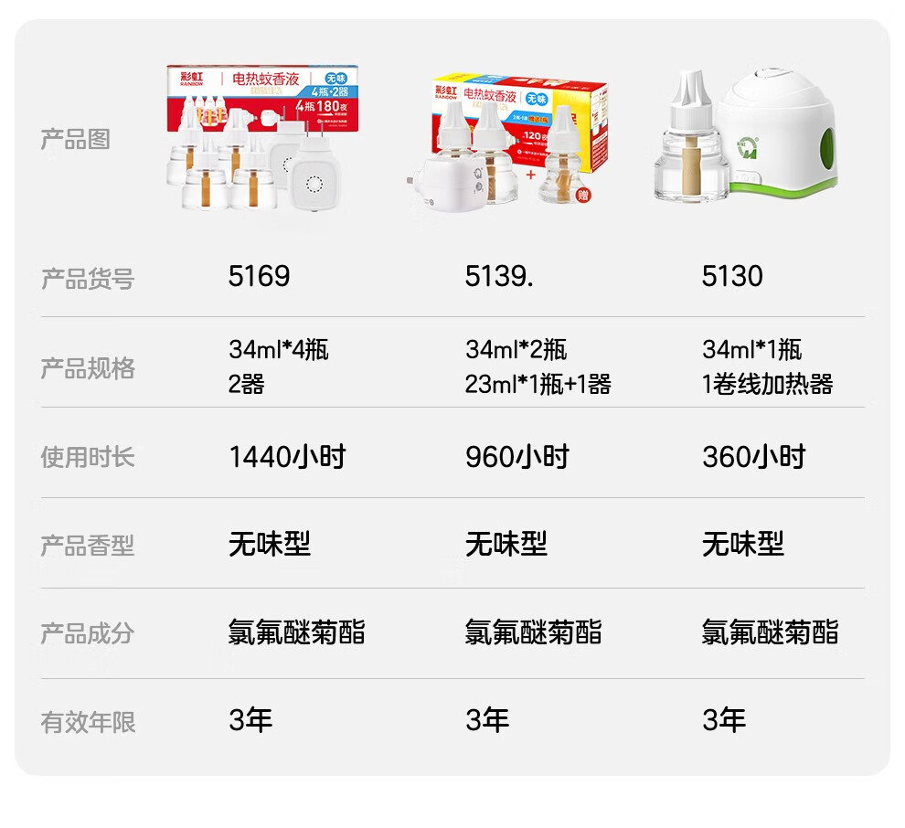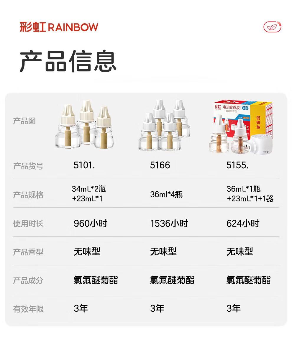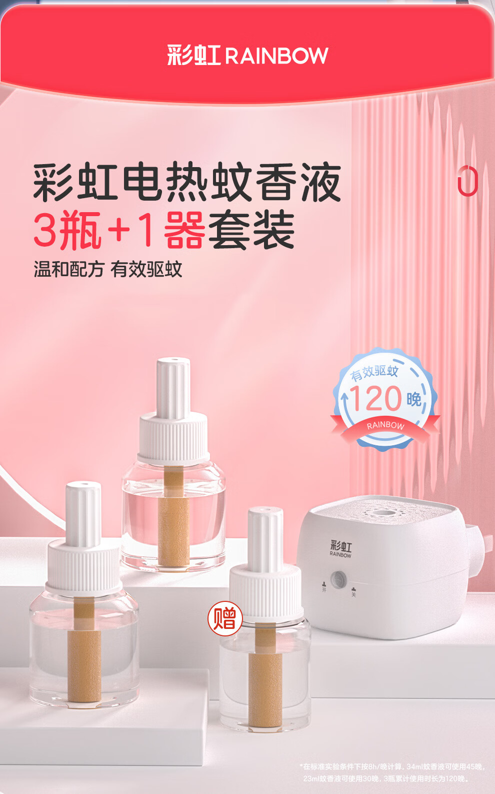 彩虹电热蚊香液驱蚊液(灭蚊液)无味电蚊香液家用加热器随机防蚊液 4瓶补充液(180晚)