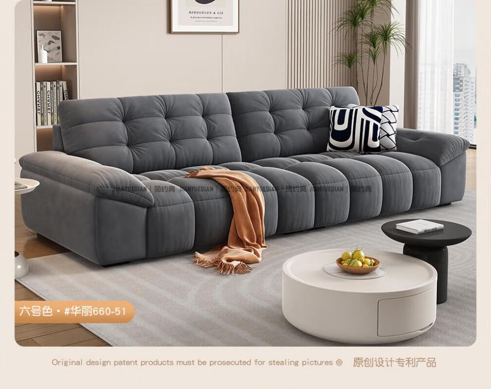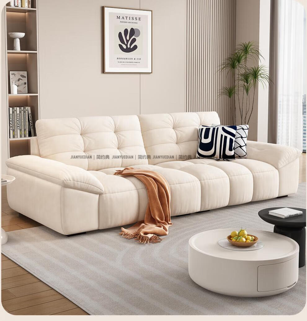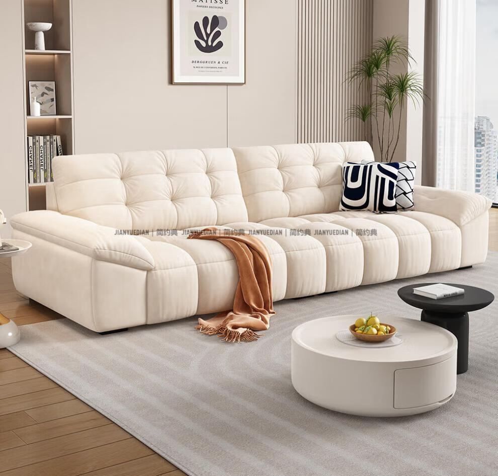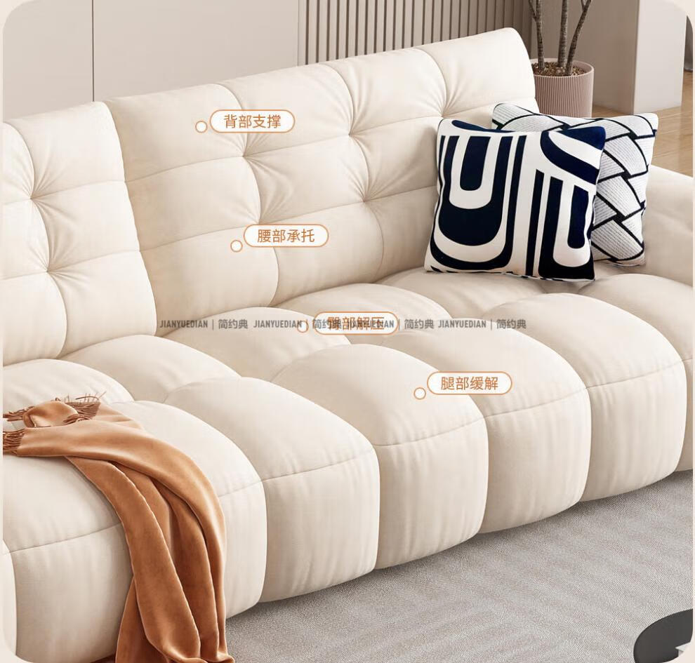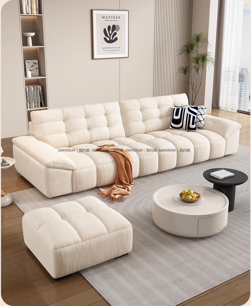 安森威沙发客厅现代简约猫抓绒沙发大小户型棉花糖泡芙直排布艺沙发 一号色(猫抓绒+海绵标准版) 直排三人位(2.1米)