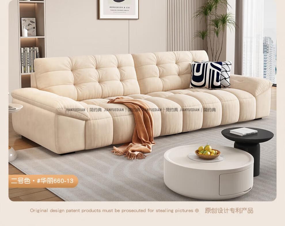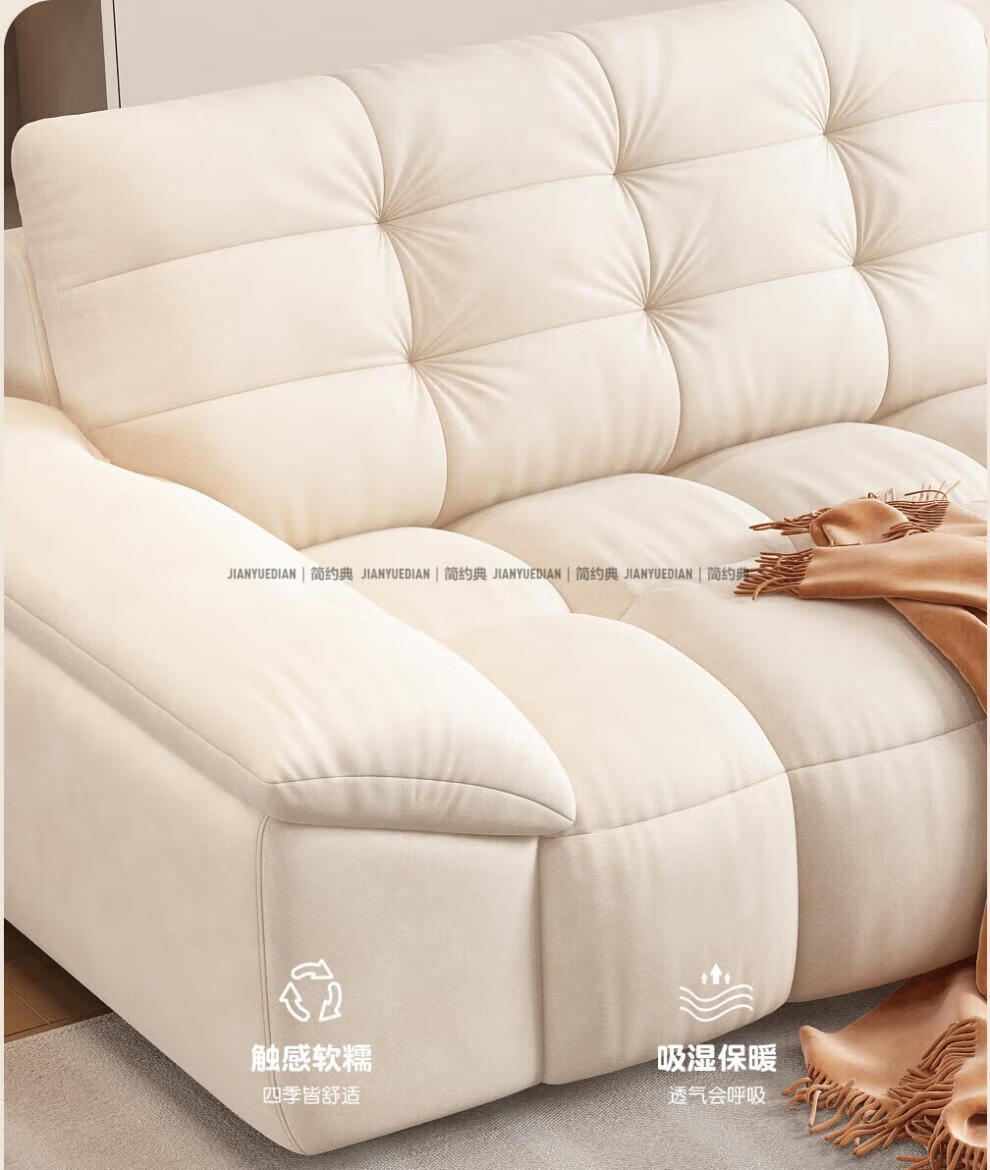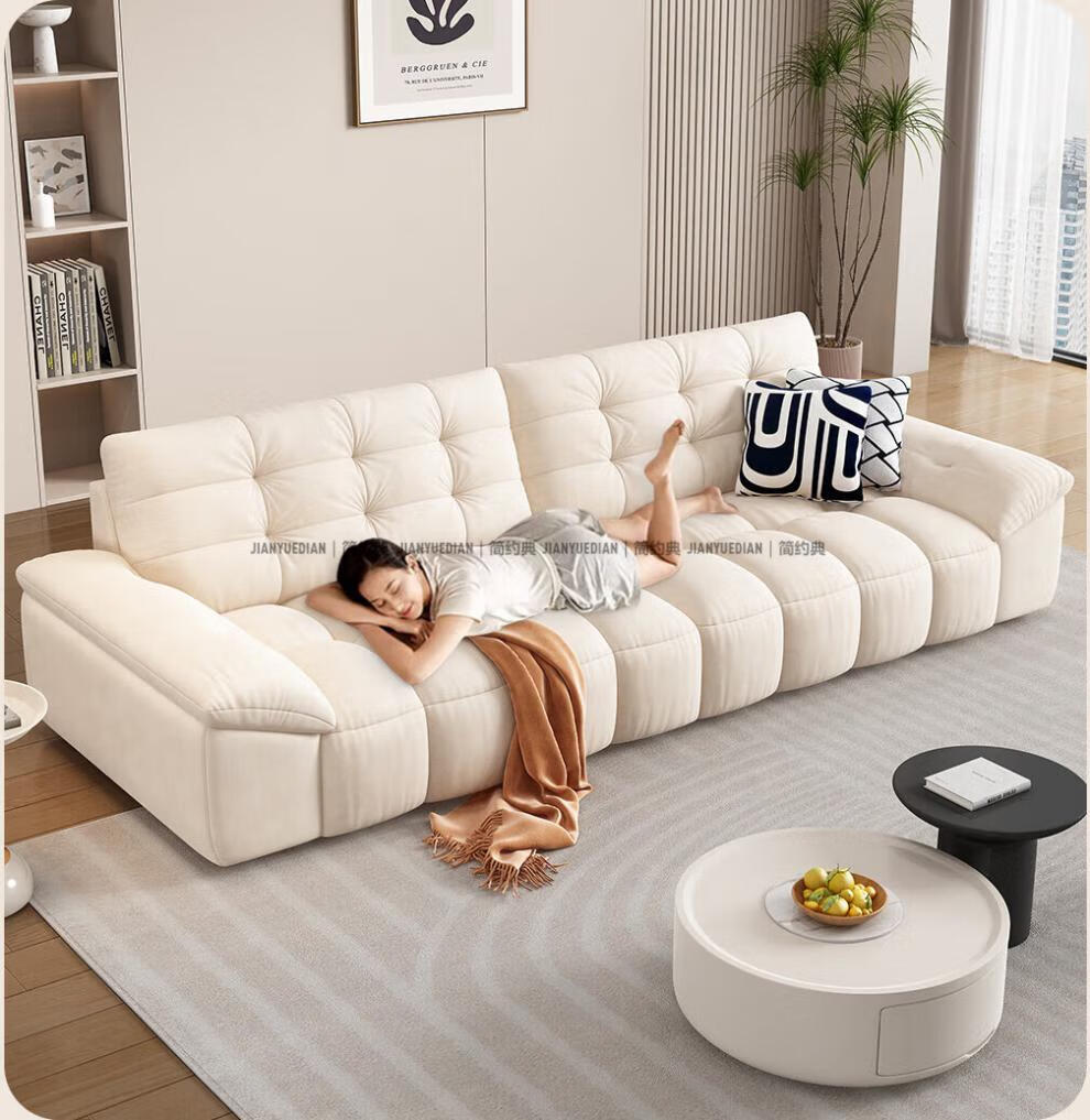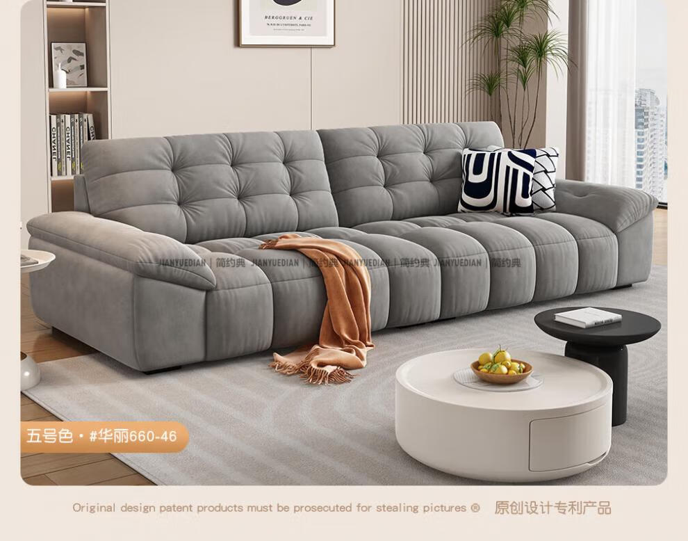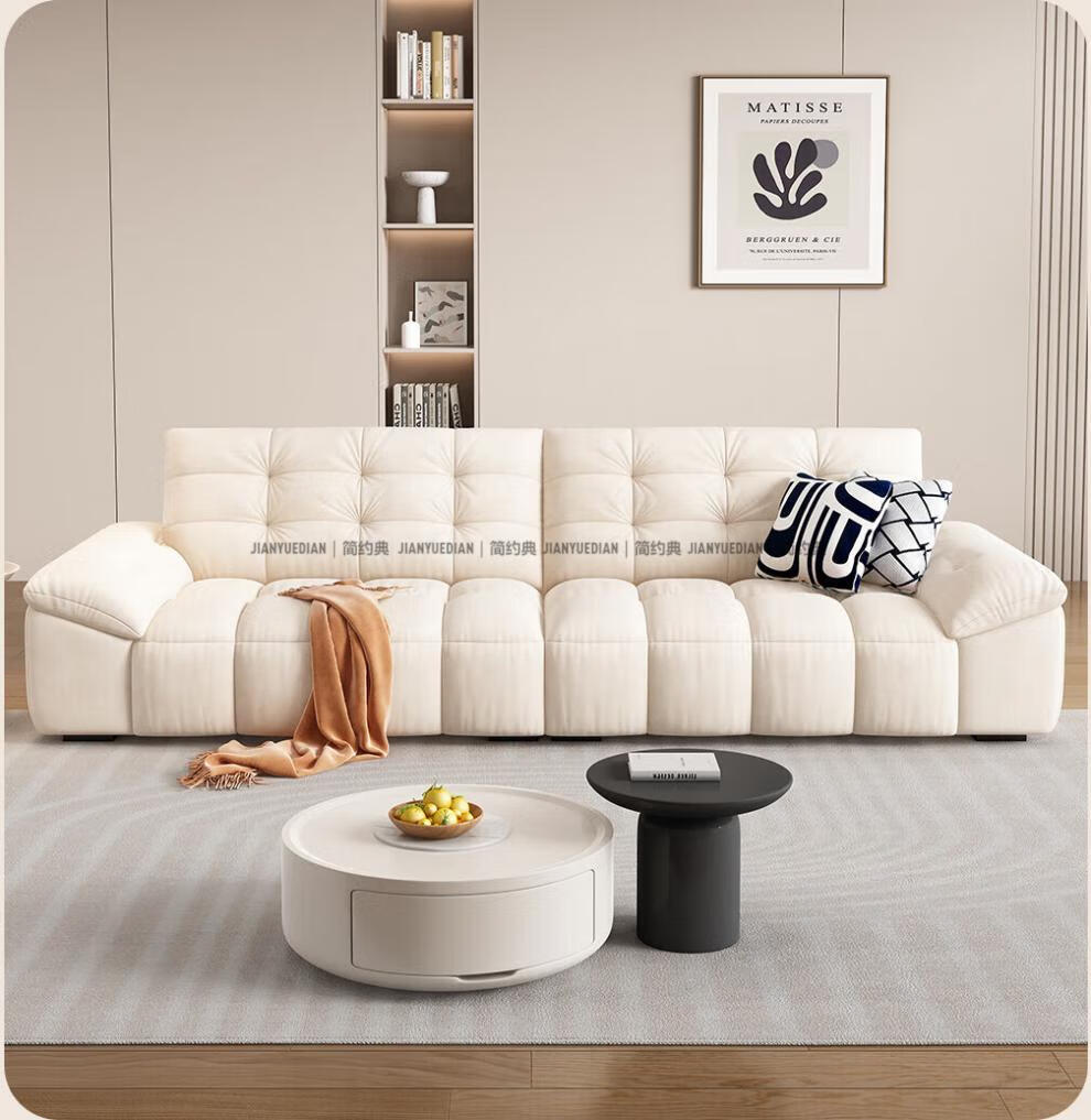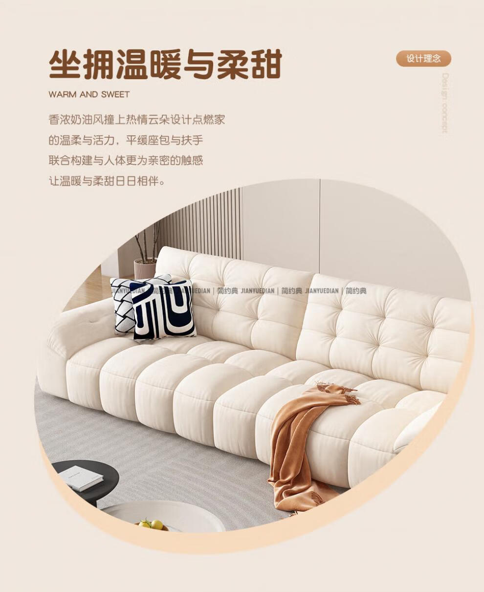 安森威沙发客厅现代简约猫抓绒沙发大小户型棉花糖泡芙直排布艺沙发 一号色(猫抓绒+海绵标准版) 直排三人位(2.1米)