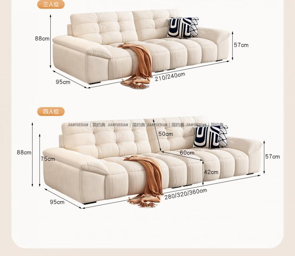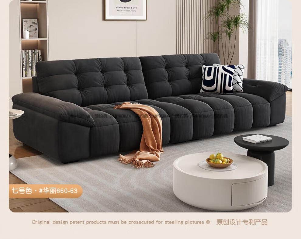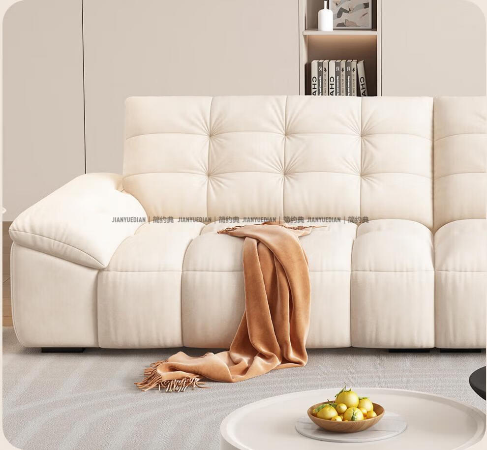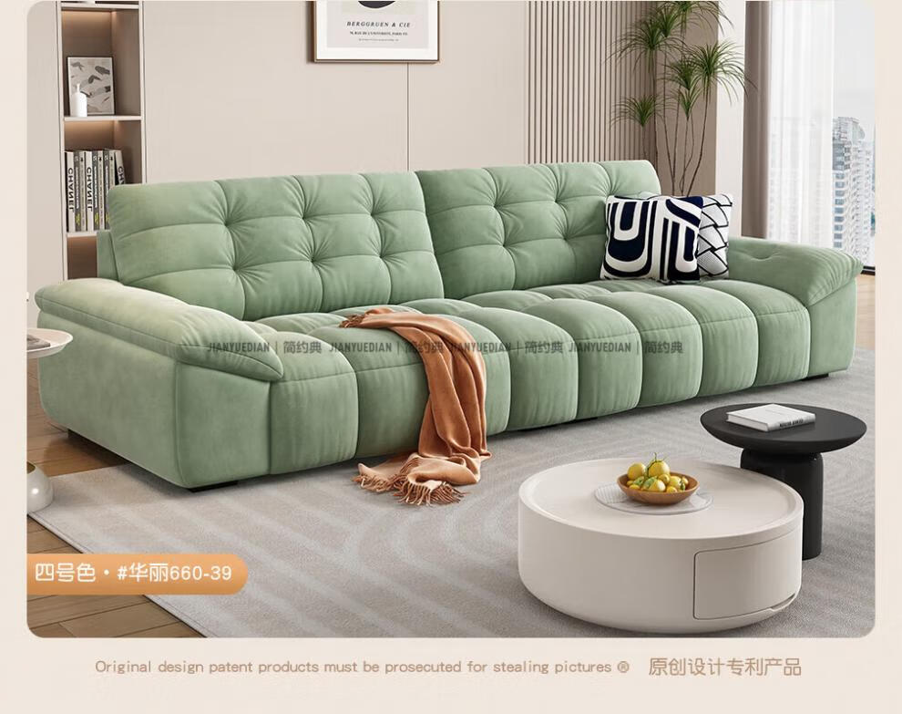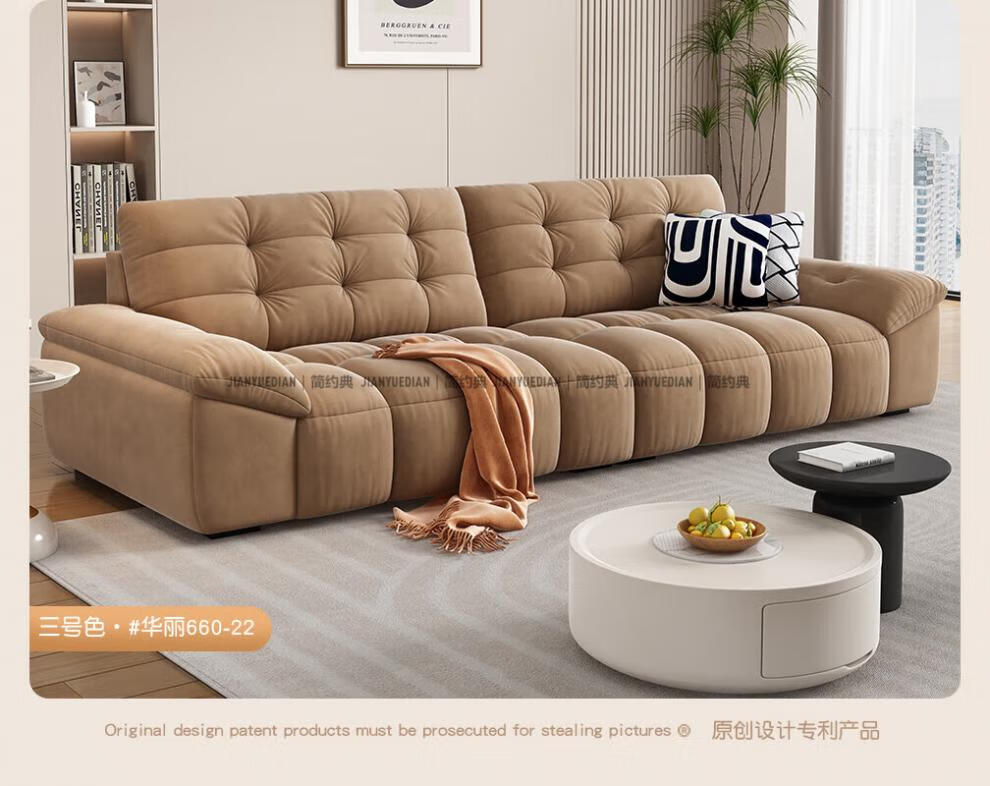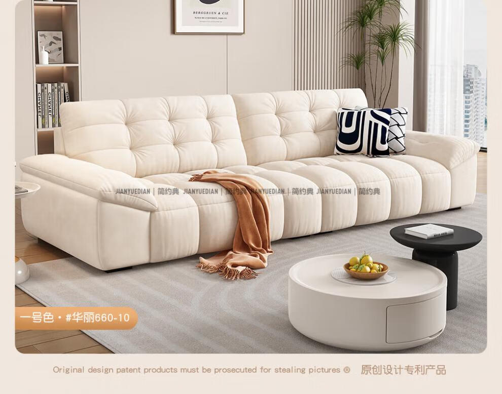 安森威沙发客厅现代简约猫抓绒沙发大小户型棉花糖泡芙直排布艺沙发 一号色(猫抓绒+海绵标准版) 直排三人位(2.1米)
