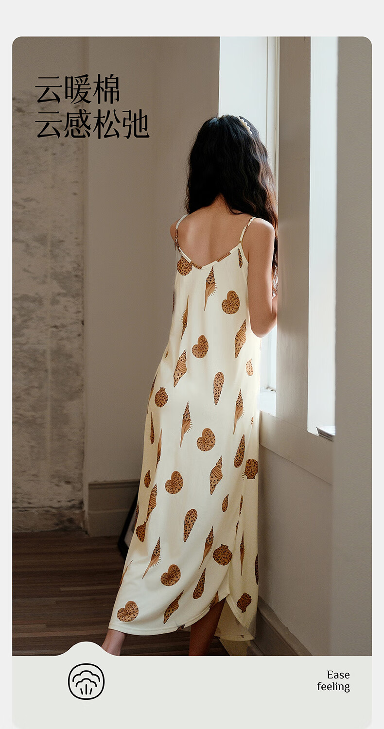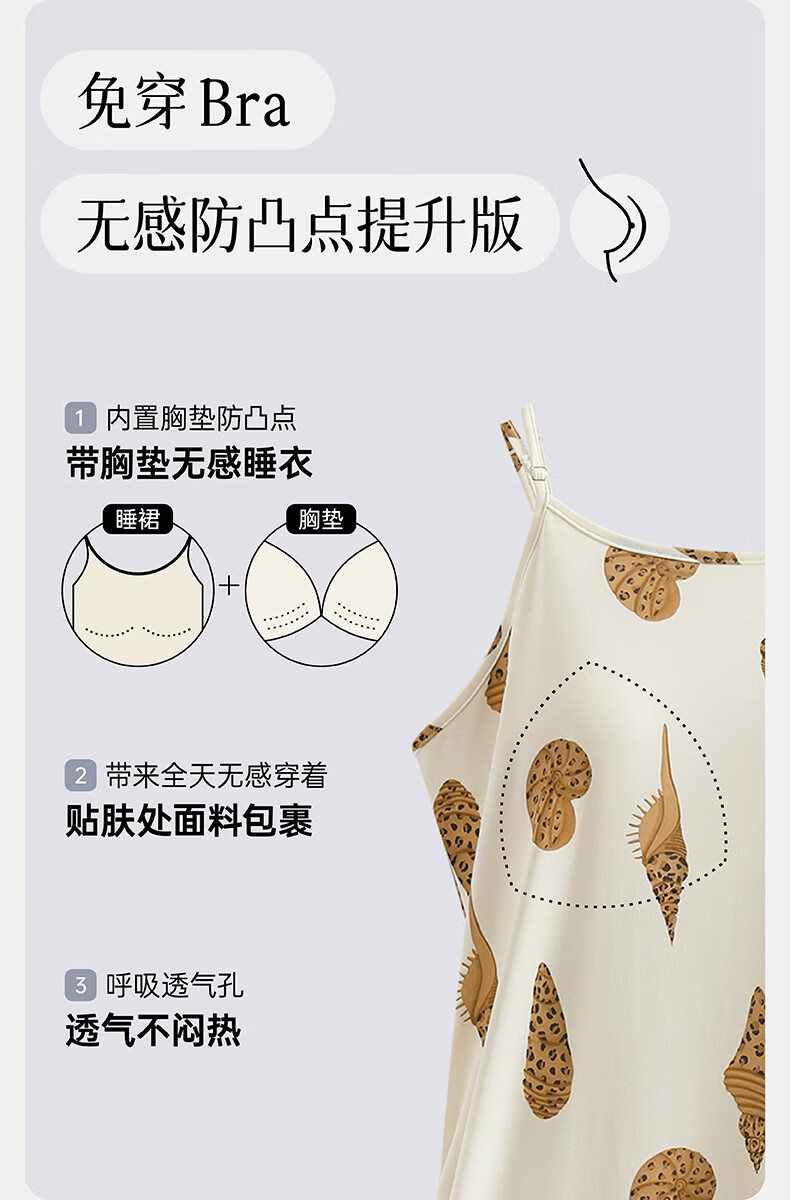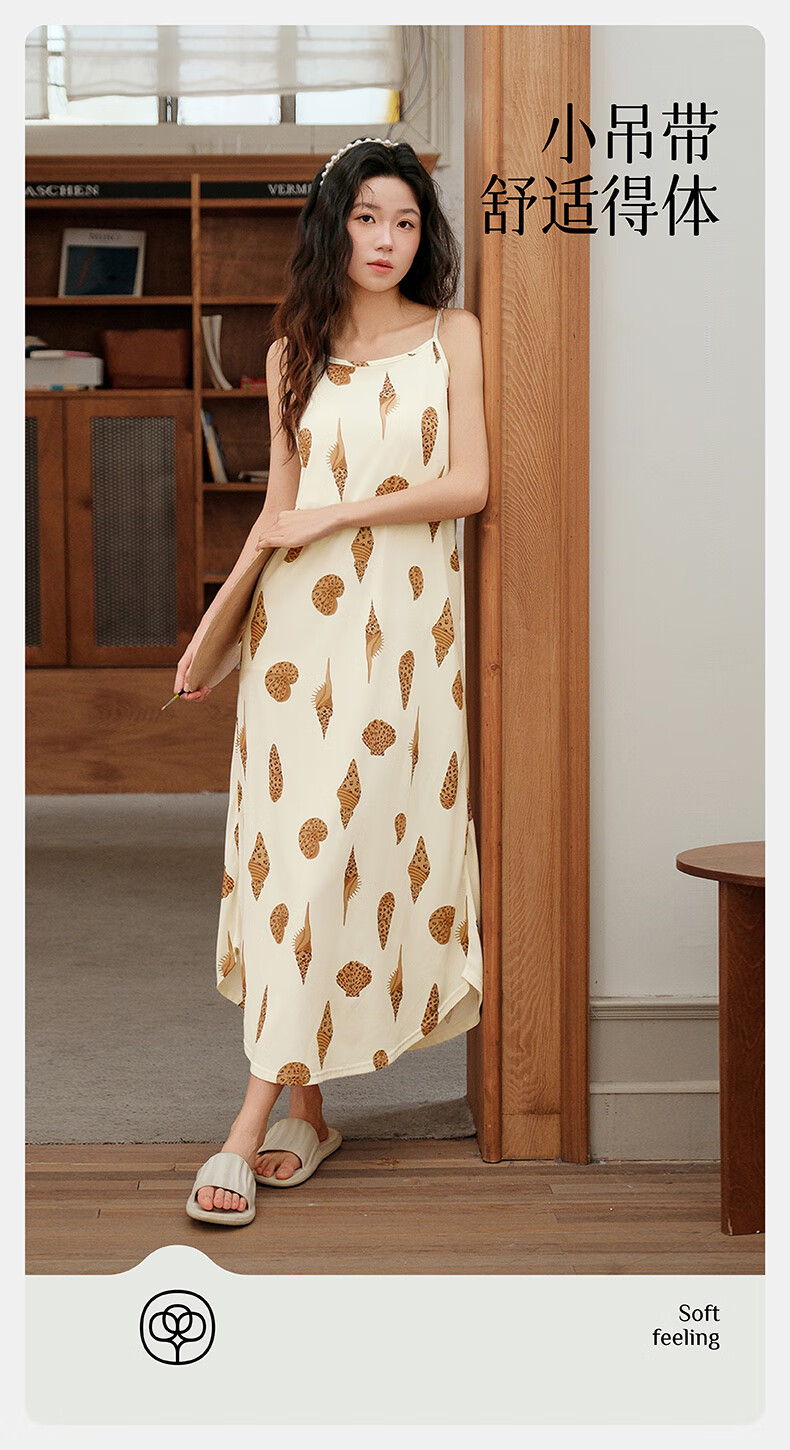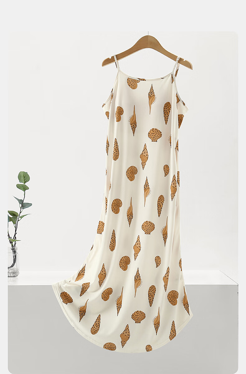 芬腾夏季冰丝凉感吊带睡裙女带胸垫连衣裙薄款大码可外穿家居服睡衣 FJ26921798米黄 L 建议:110-125斤