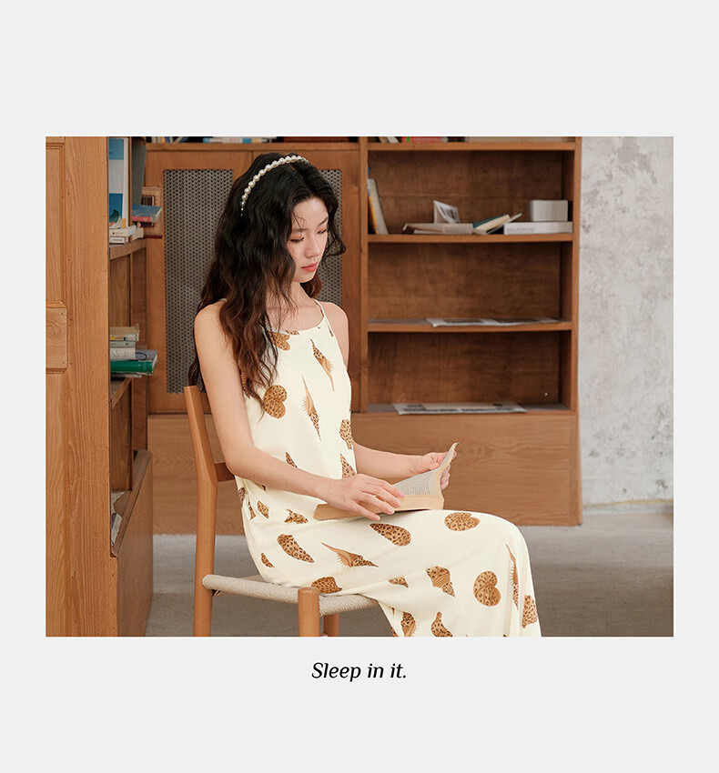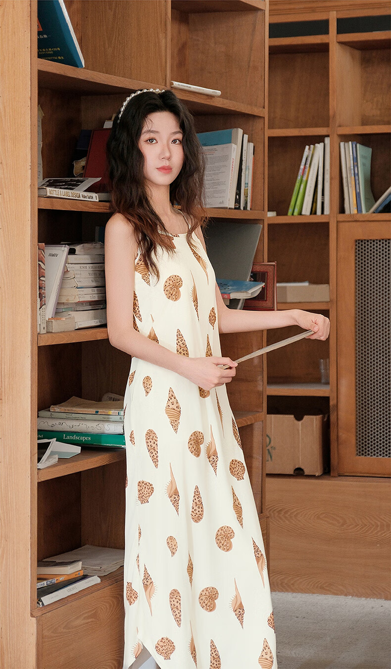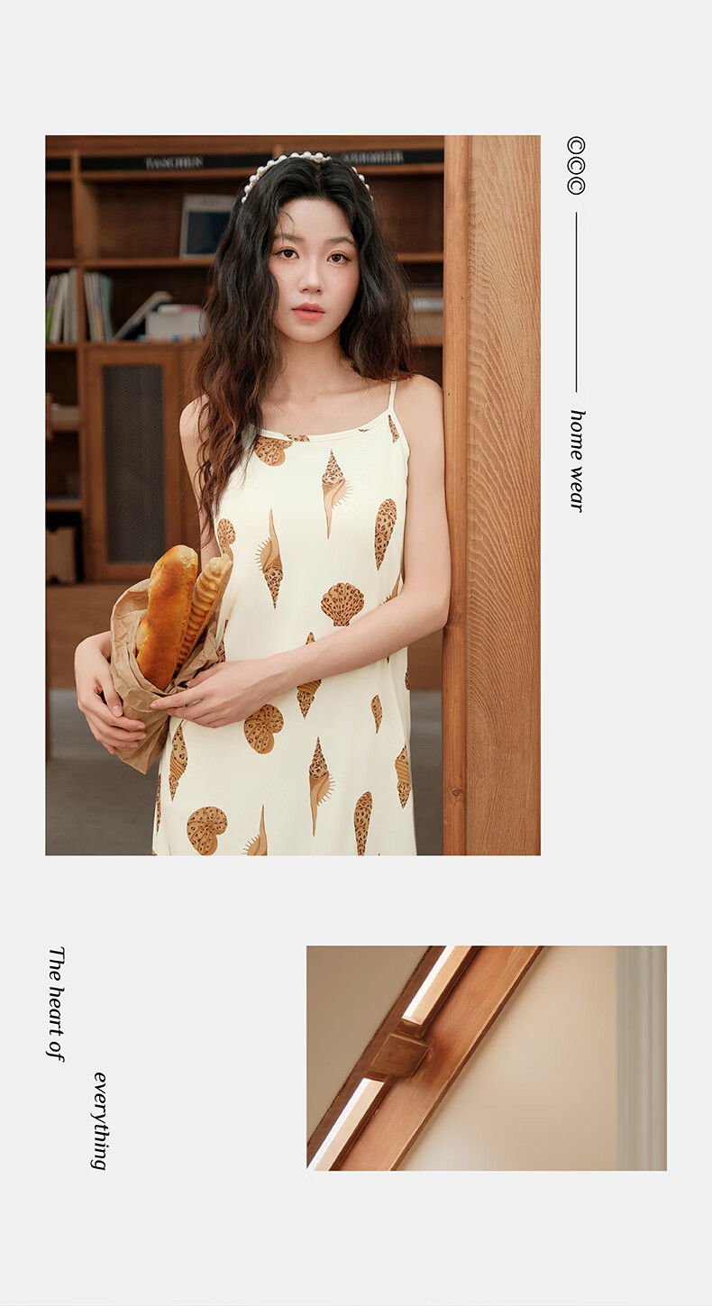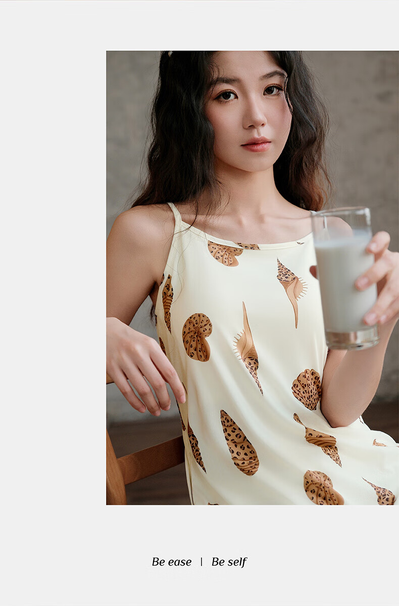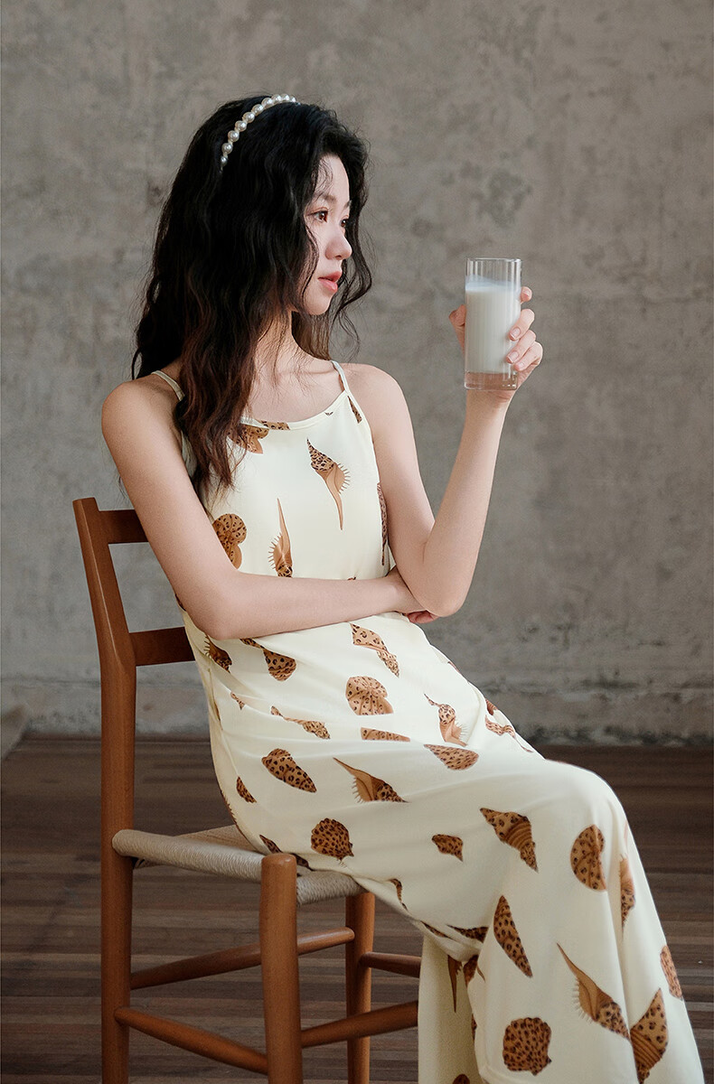 芬腾夏季冰丝凉感吊带睡裙女带胸垫连衣裙薄款大码可外穿家居服睡衣 FJ26921798米黄 L 建议:110-125斤