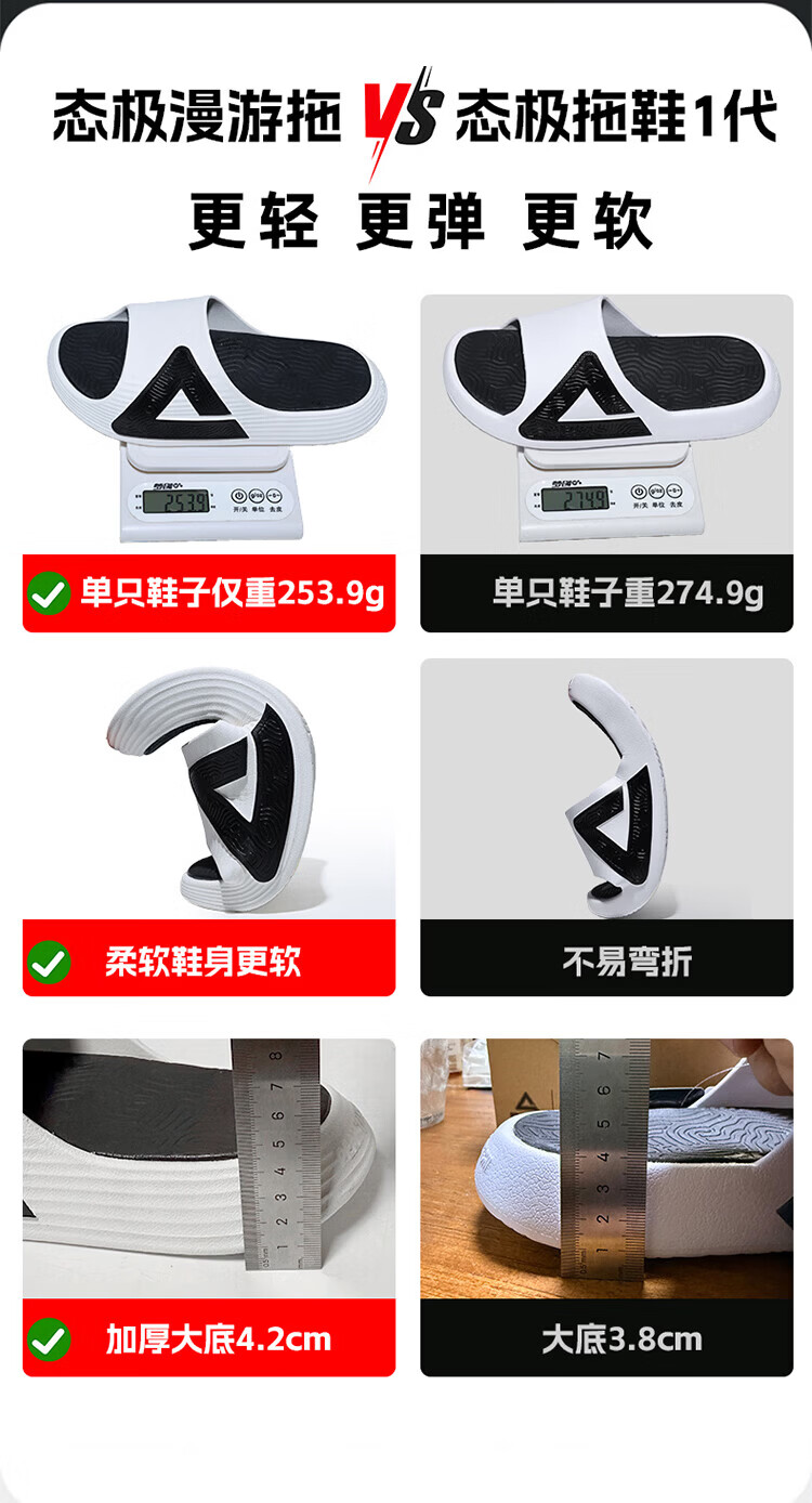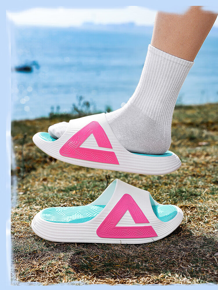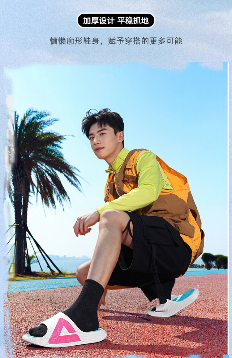 匹克(PEAK)态极运动拖鞋男夏季室内户外外穿防滑厚底拖鞋沙滩拖 白/玫红/绿 42
