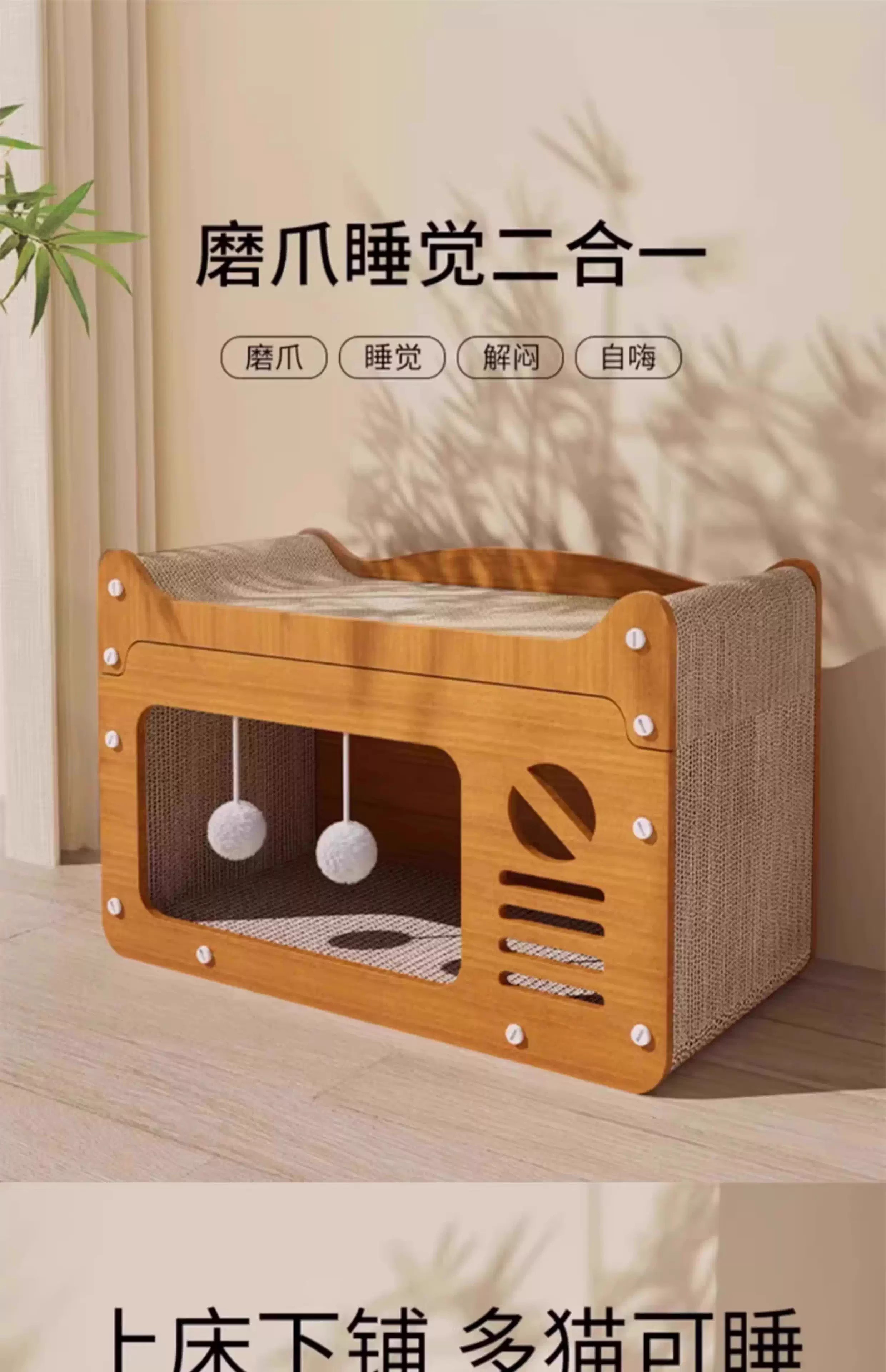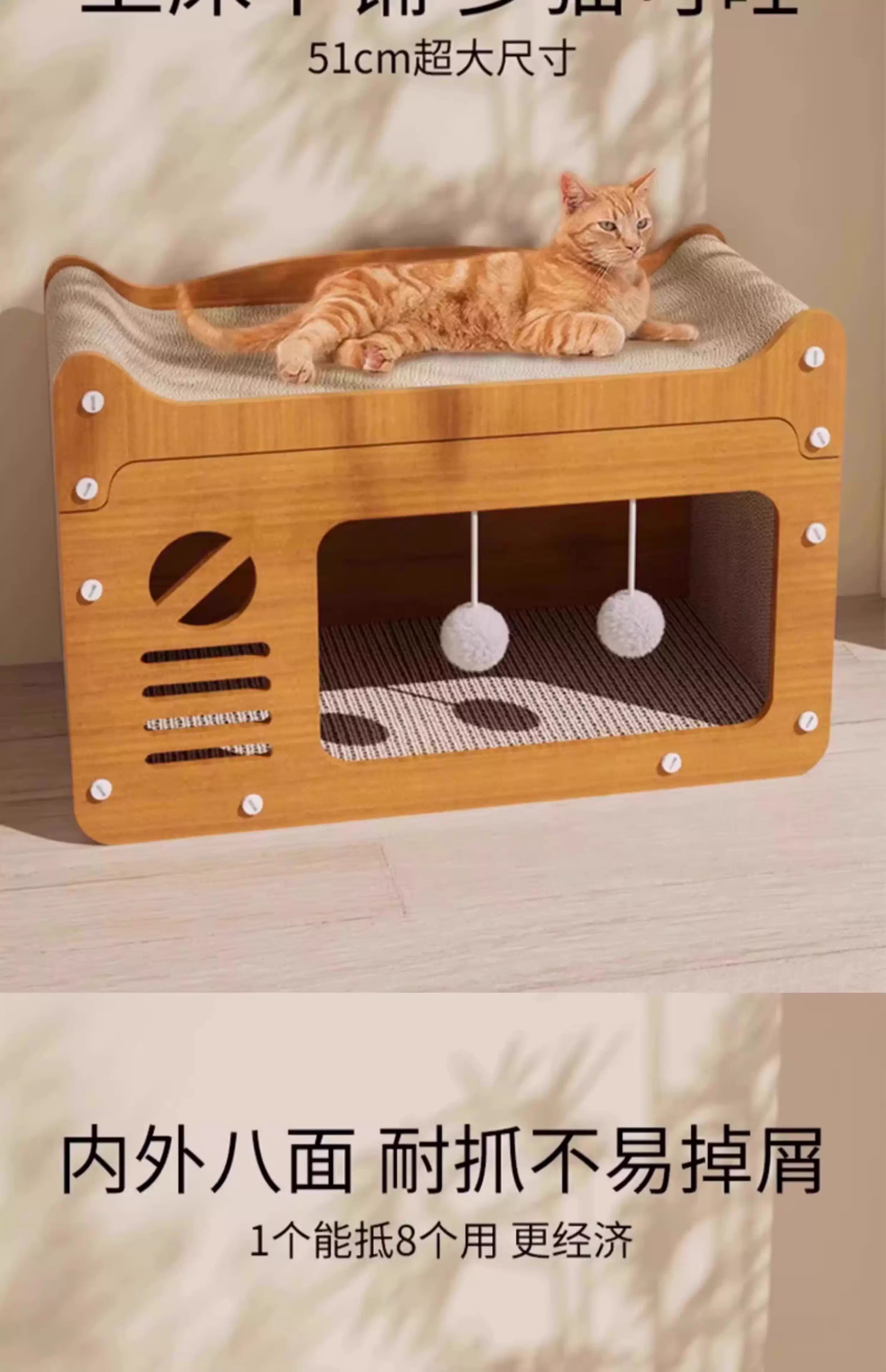小猫日记猫抓板耐磨耐抓猫爪板猫窝四季通用猫屋沙发防抓猫咪玩具非不掉屑 双层双球升级款-中号