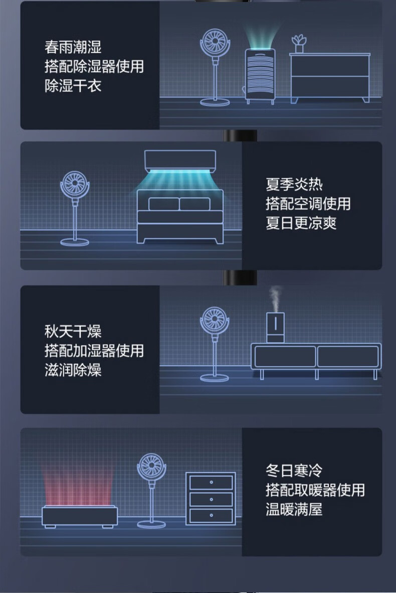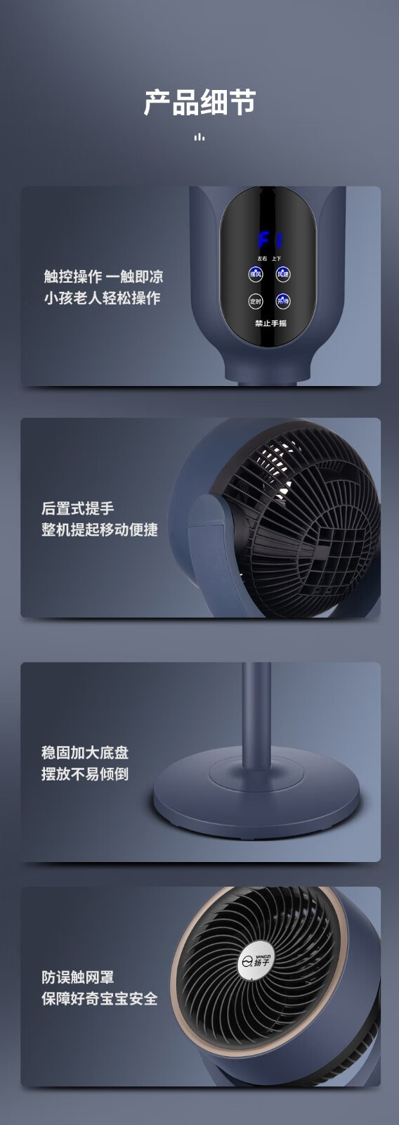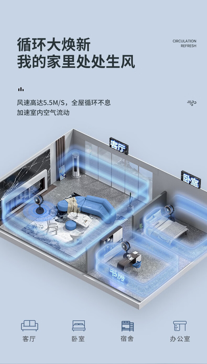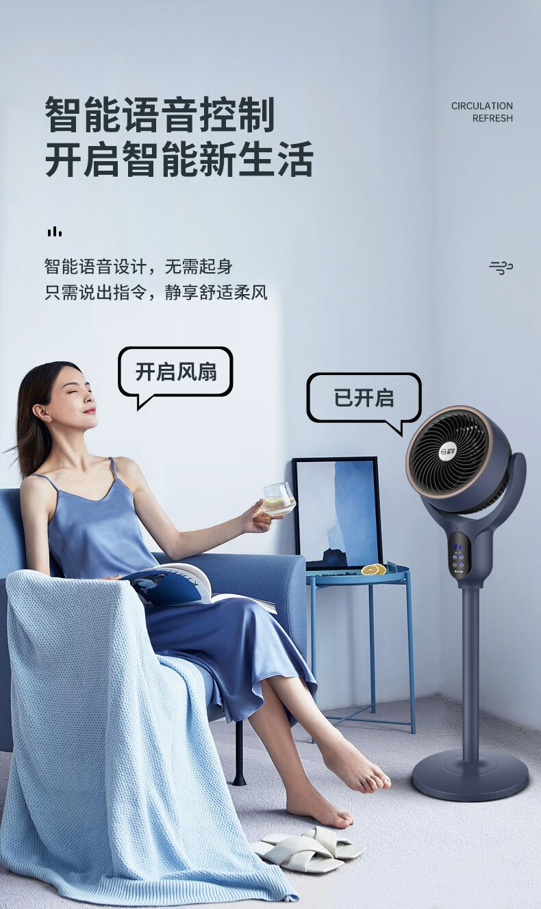 扬子(YANGZI)(YANGZI)电风扇空气循环扇智能遥控风扇家用卧室客厅大风量落地扇台扇两用低音摇头净化循环扇 深海蓝语音款 空气循环扇