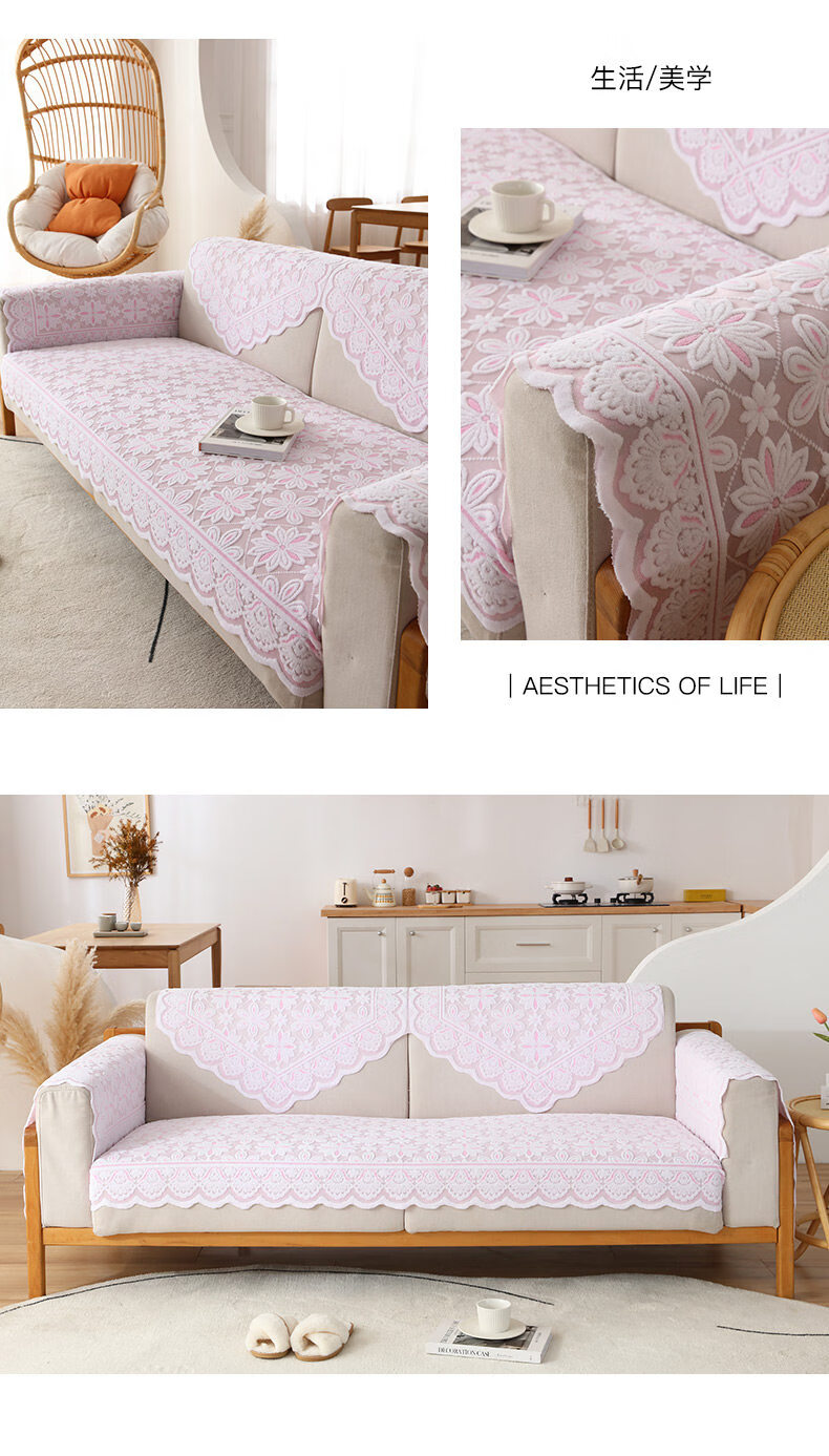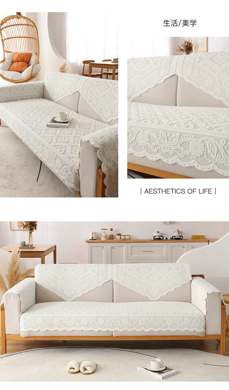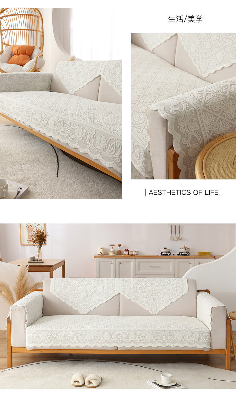 正圣沙发扶手巾蕾丝沙发套罩靠背巾欧式简约现代扶手盖布防尘防滑垫子 银杏花【36针高品质加厚】 65cm*70cm 三角巾