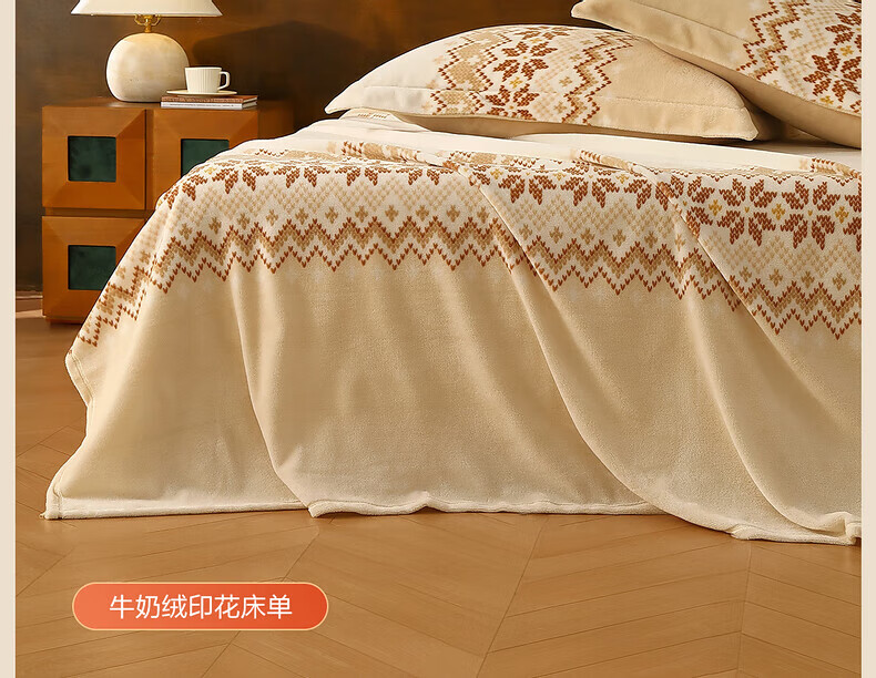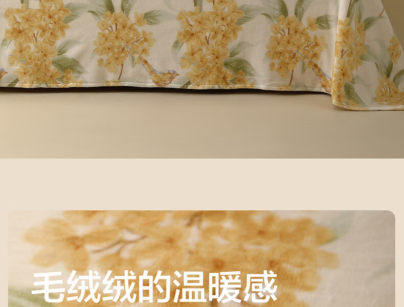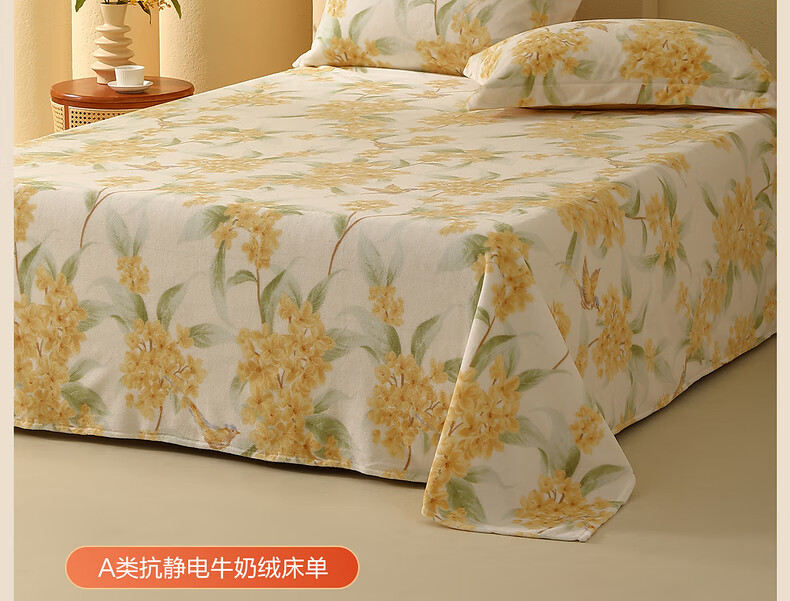 水星家纺床单单件 高密牛奶绒抗静电床单 冬季加厚保暖防脏床罩床上用品 【精致雕花绒&抗静电】金语叶 230cm*245cm