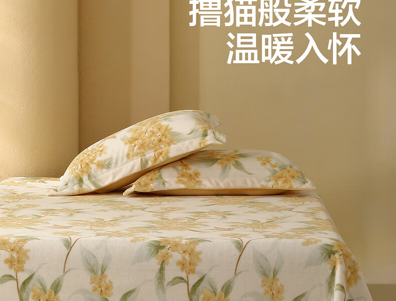 猫人(MiiOW)床上用品四件套全棉纯棉2025新款床单被套三件套高端轻奢高级感 米黄+豆绿【100%亲肤精梳棉 适合裸睡】 床单款 1.2m床三件套-适合150x200cm被子
