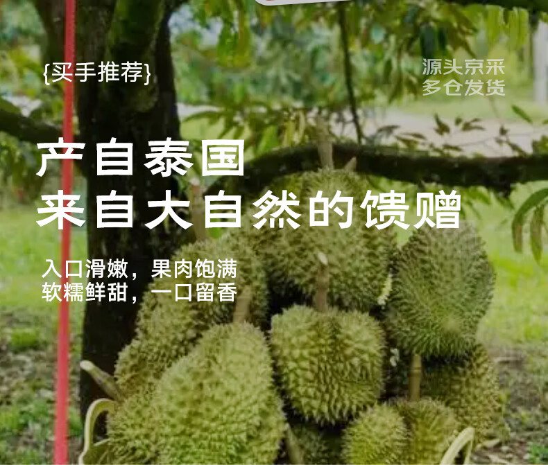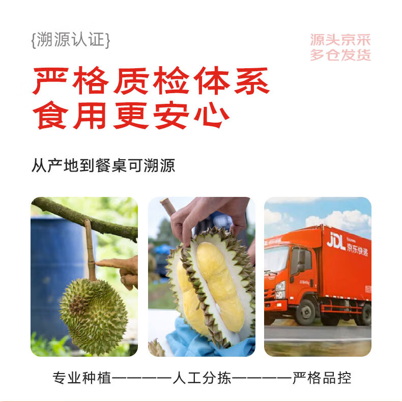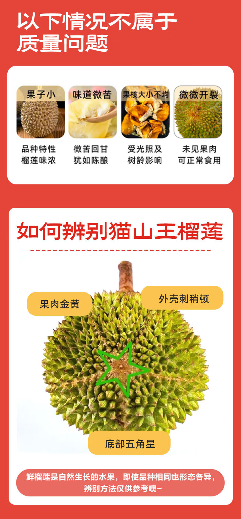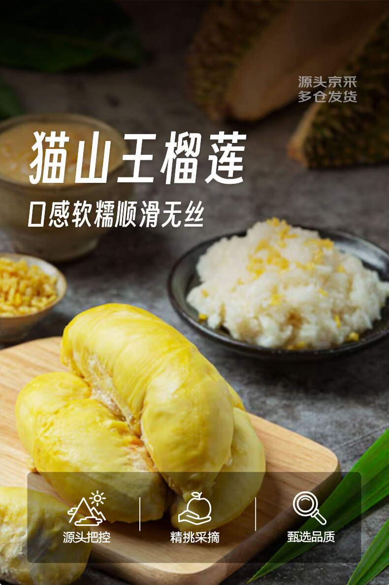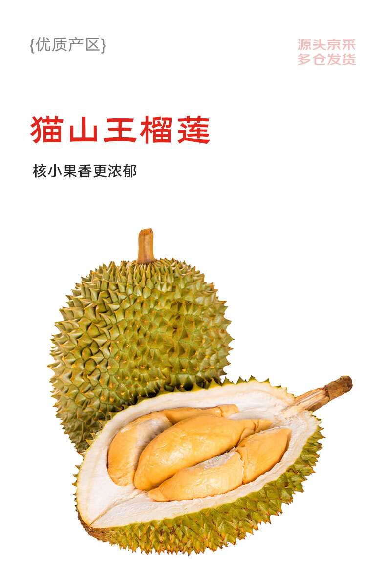 京鲜生泰国进口猫山王鲜榴莲净重7-8斤 2-3粒装 丑猫 新鲜水果 源头直发