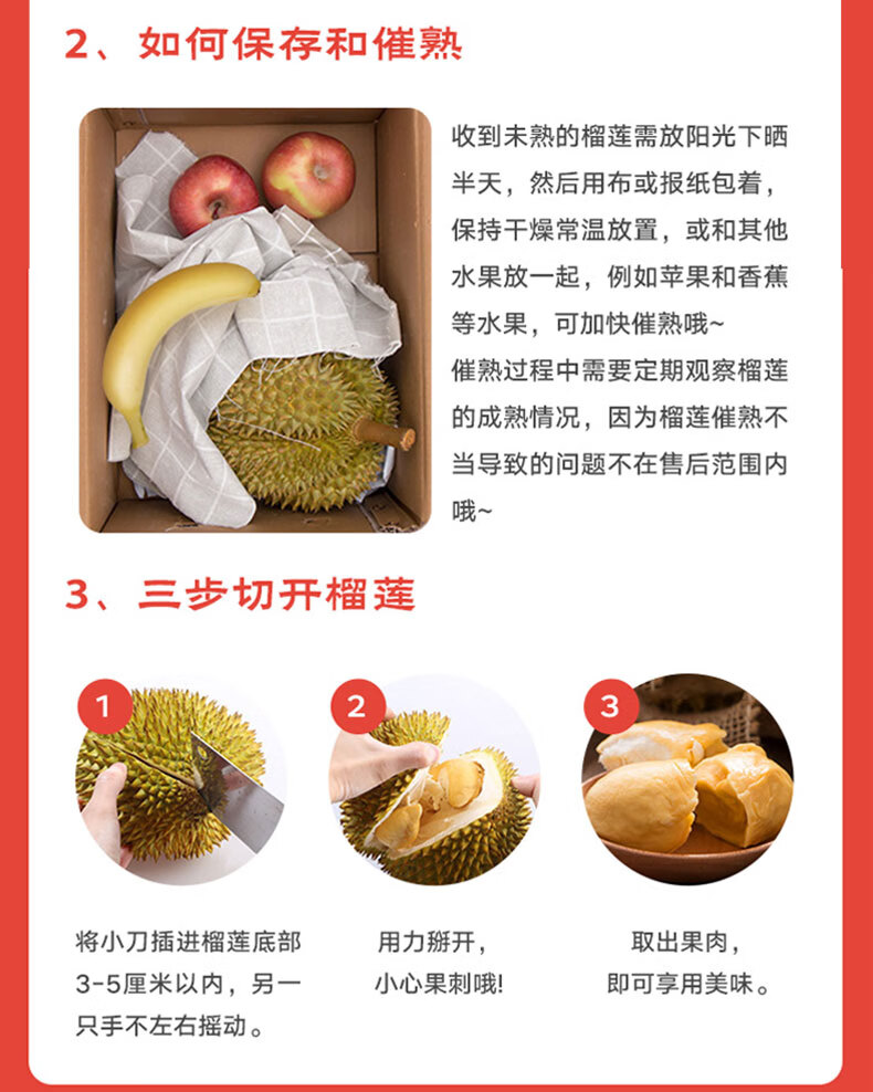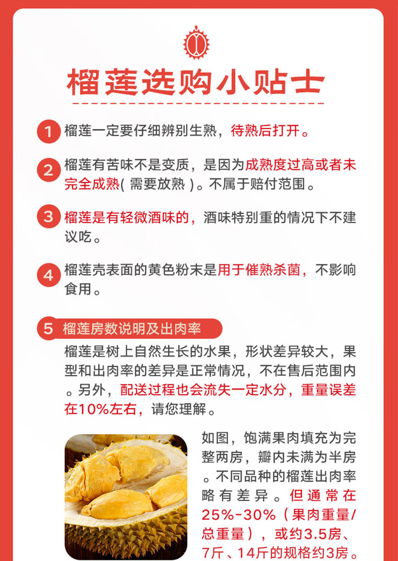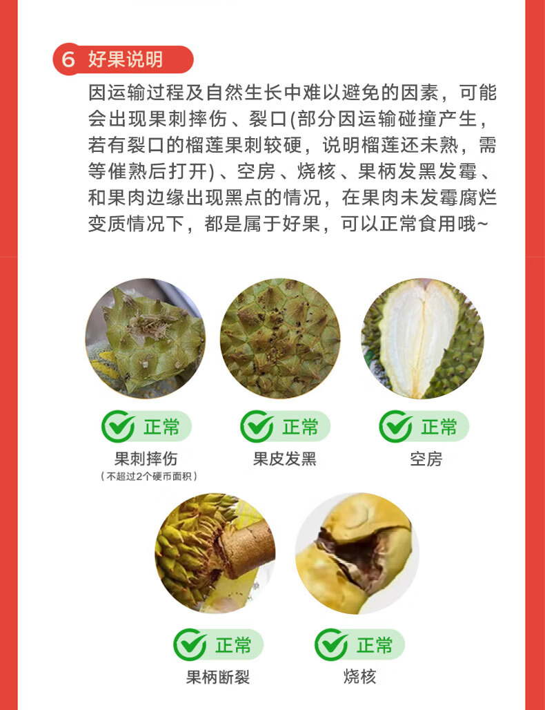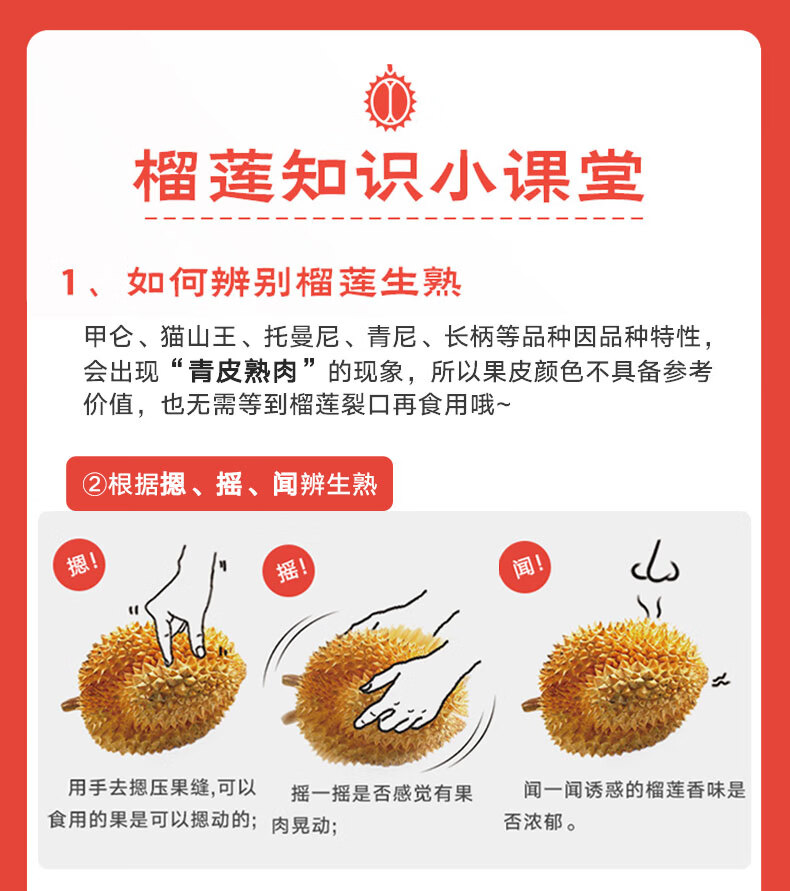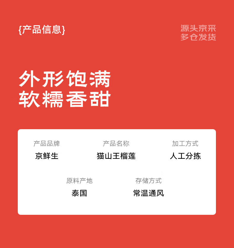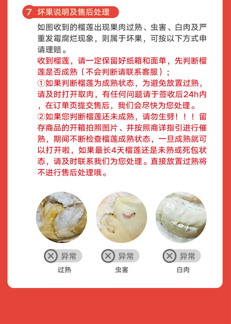 京鲜生泰国进口猫山王鲜榴莲净重7-8斤 2-3粒装 丑猫 新鲜水果 源头直发