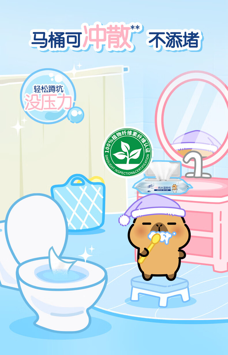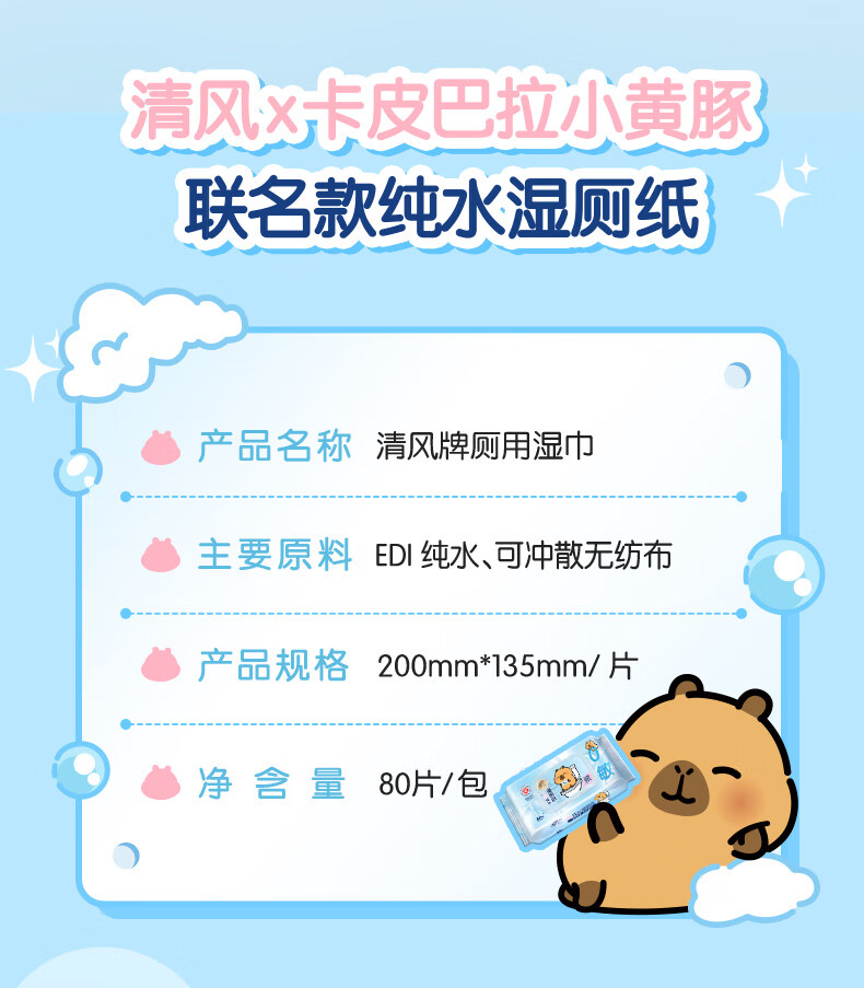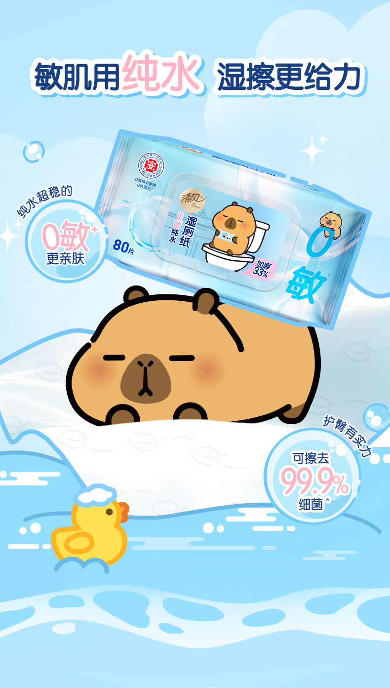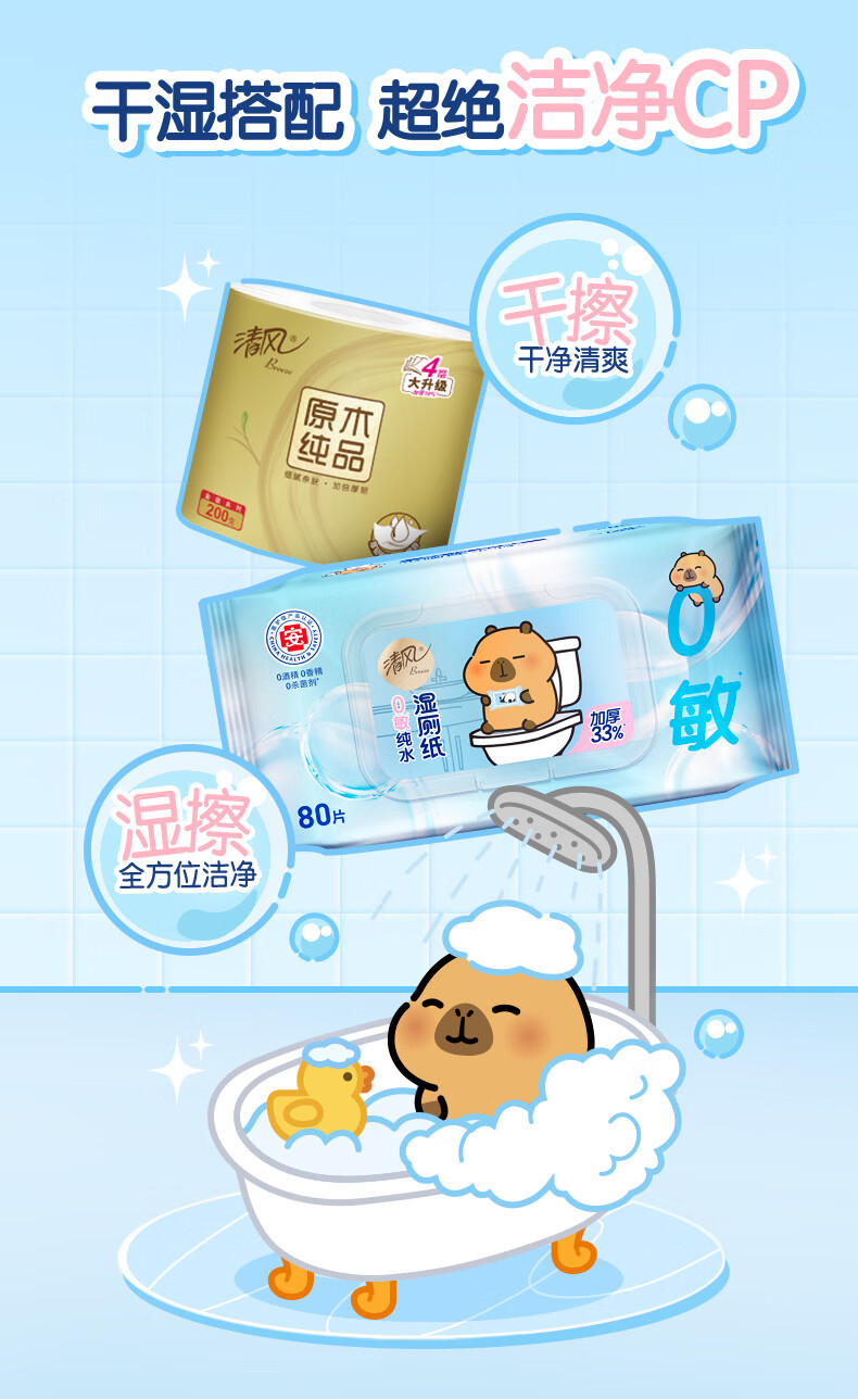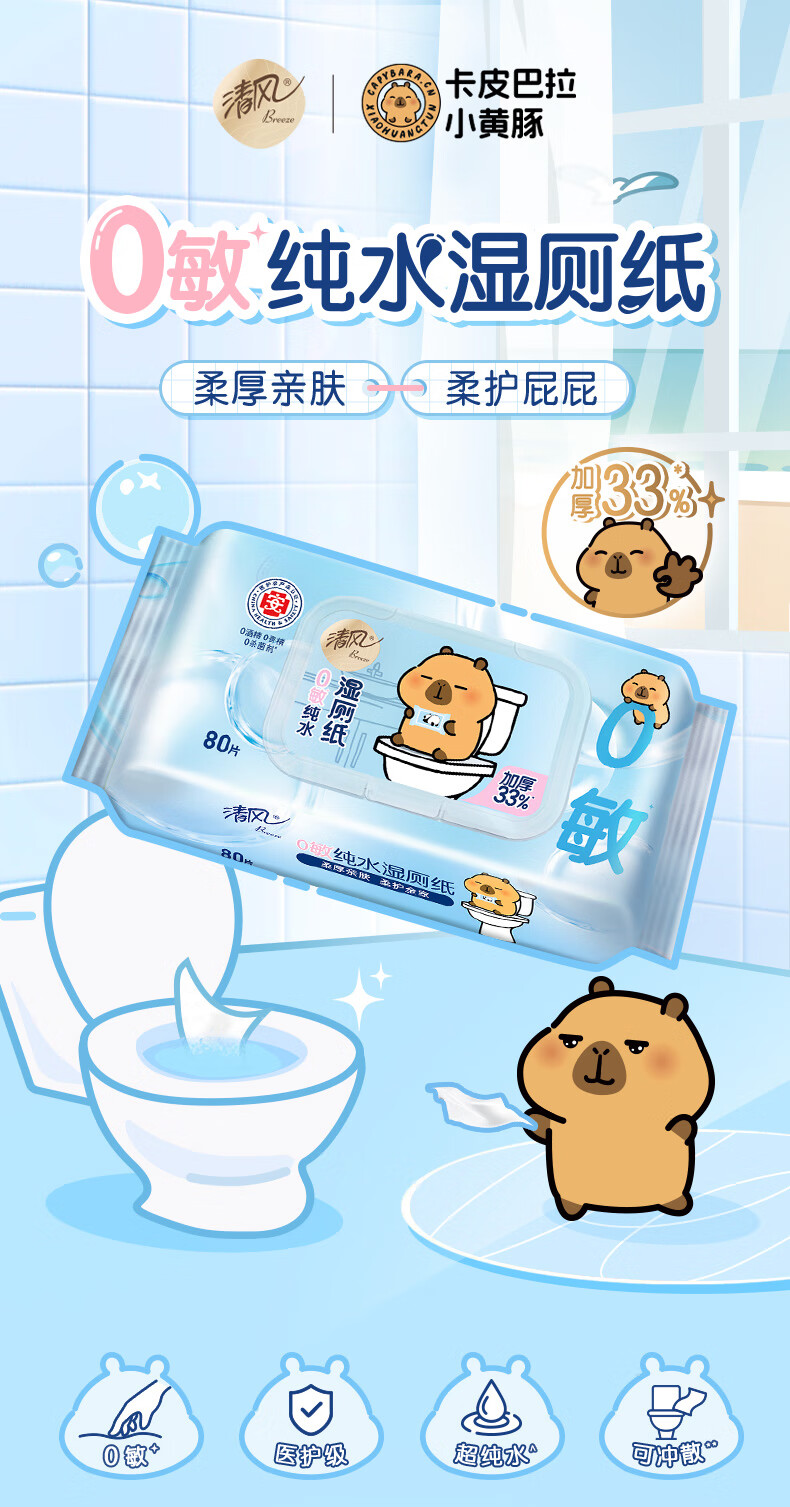 清风纯水湿厕纸80片*5包400片 医护认证 搭配卷纸 湿纸巾湿巾
