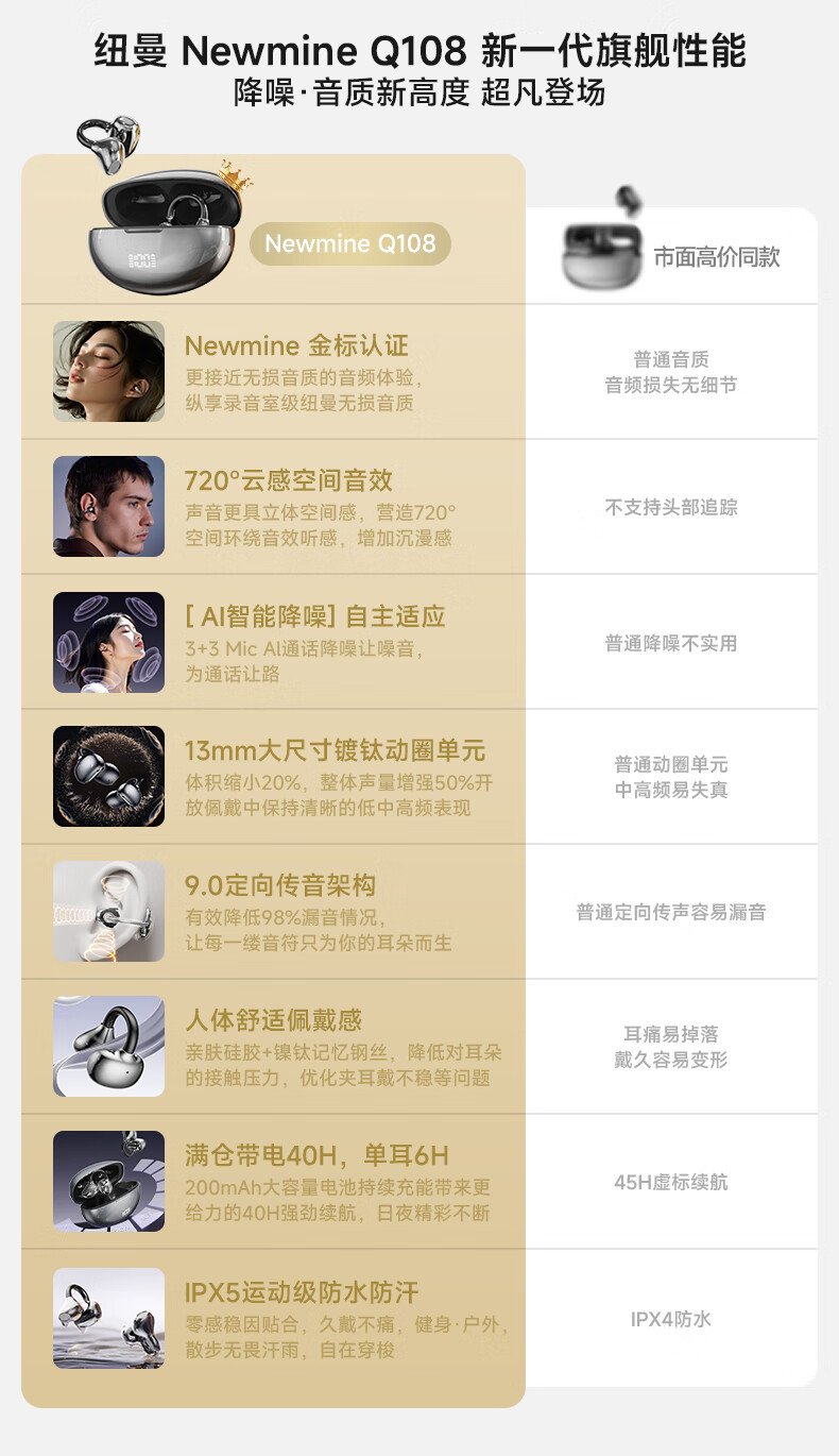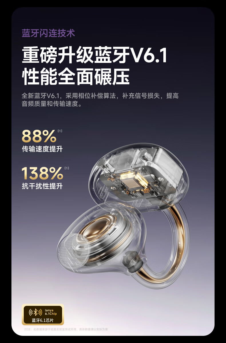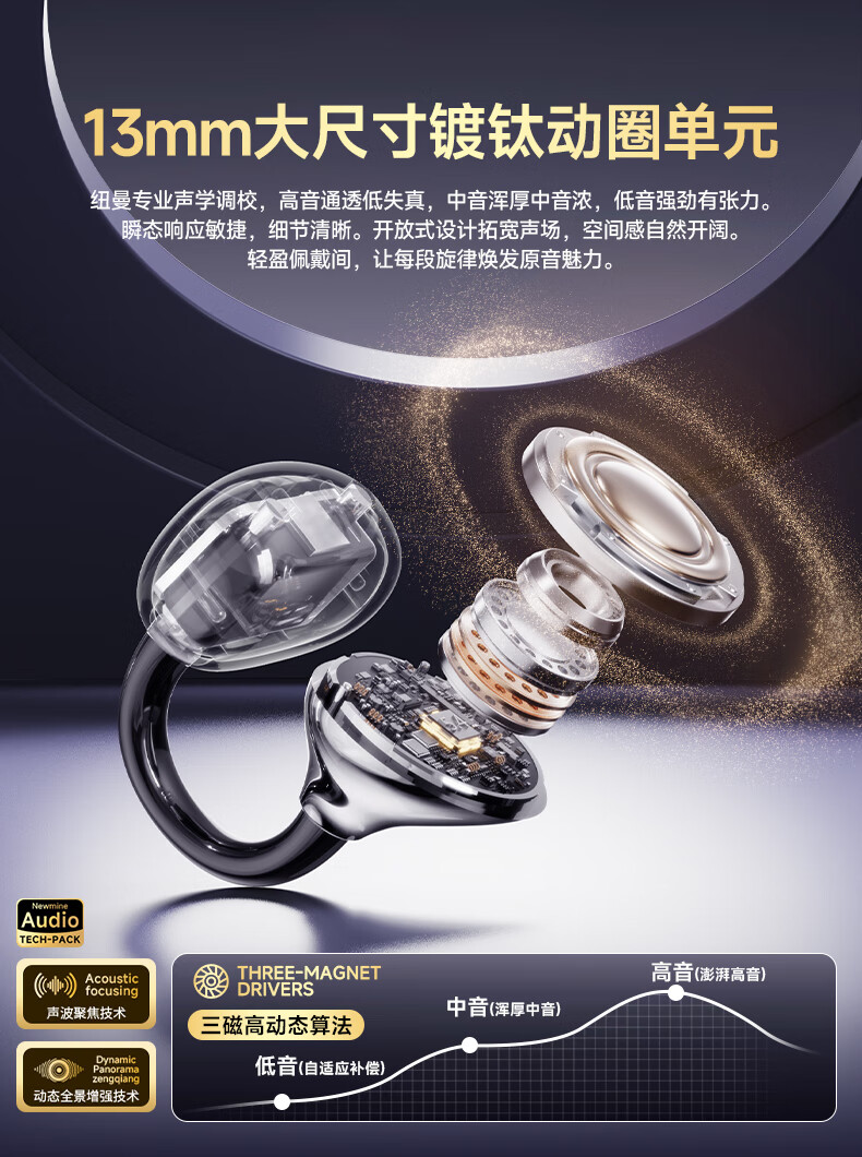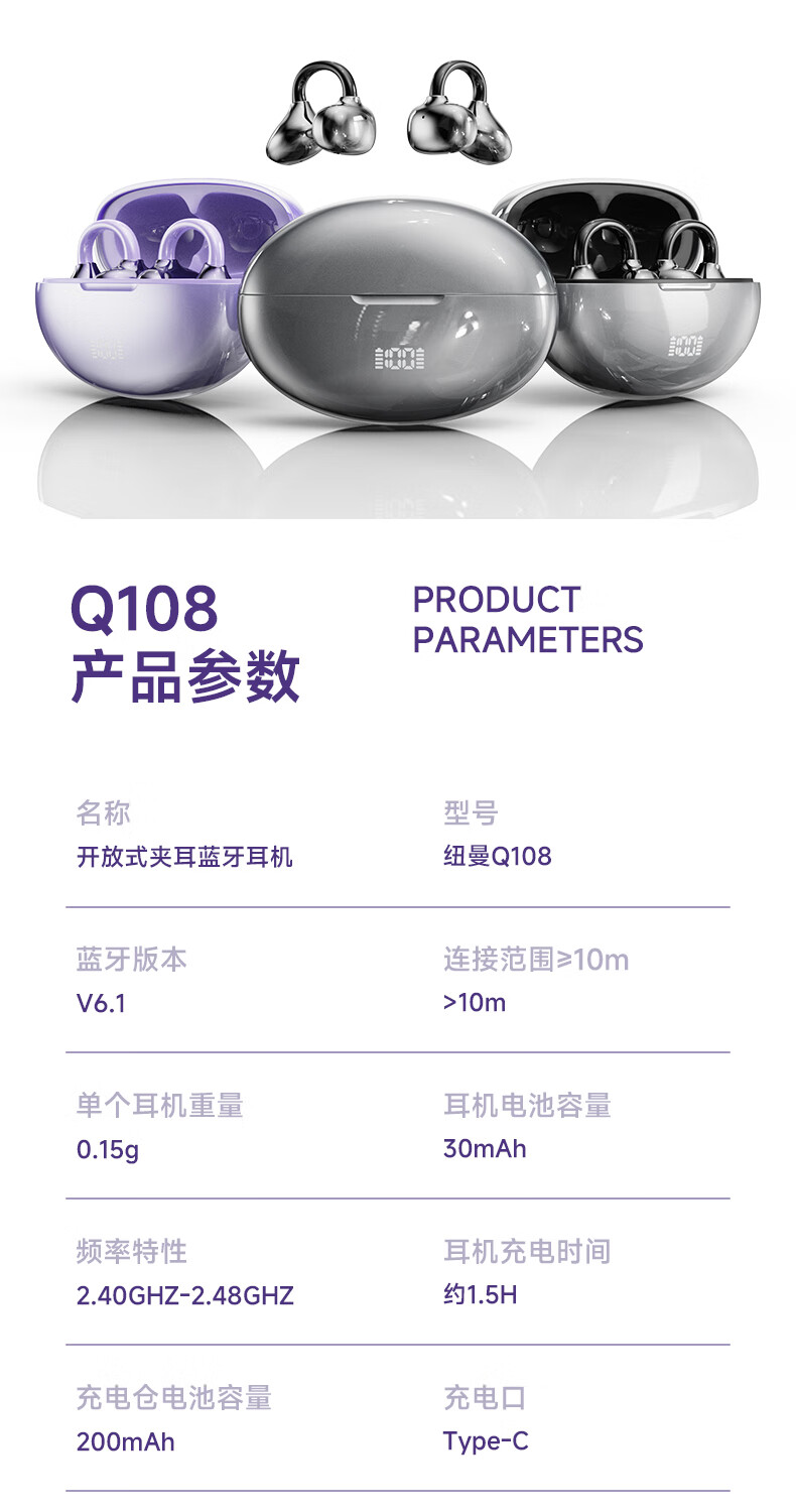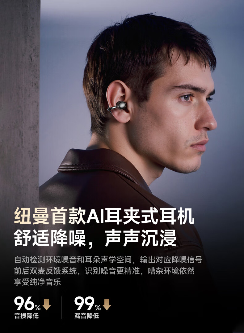 纽曼(Newmine)【2026顶配丨720°全景云感环绕音】蓝牙耳机耳夹式骨传导真无线不入耳运动跑步通话降噪超长续航 【720°空间环绕立体音丨无感佩戴丨超长续航】紫色