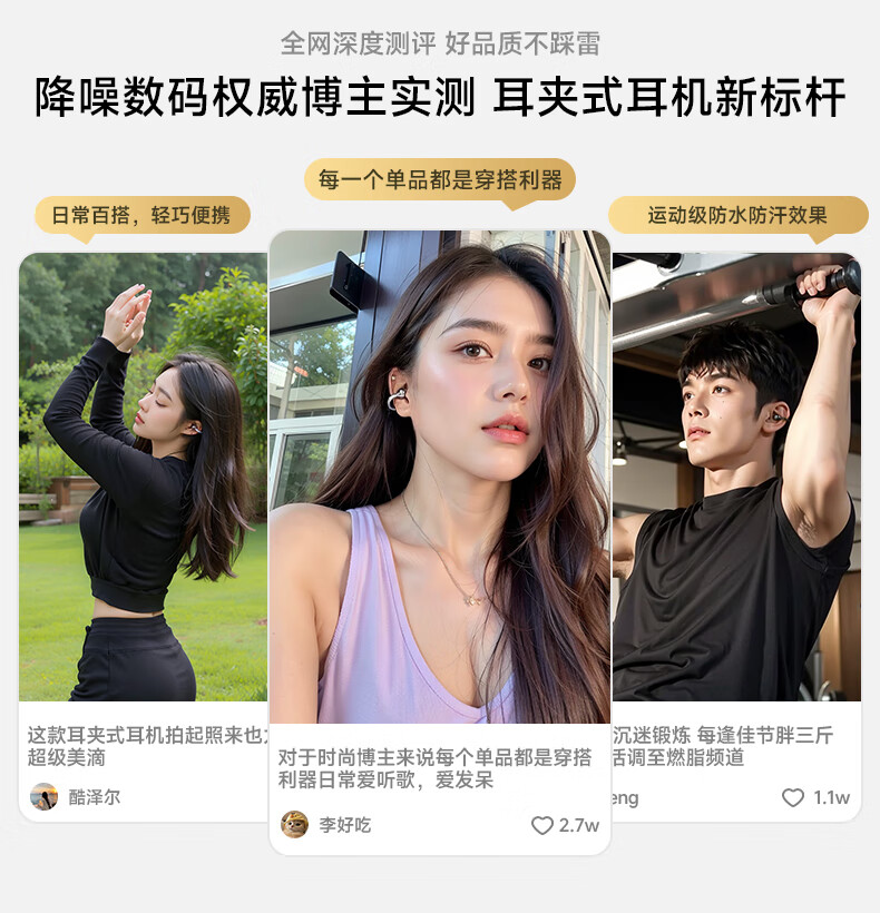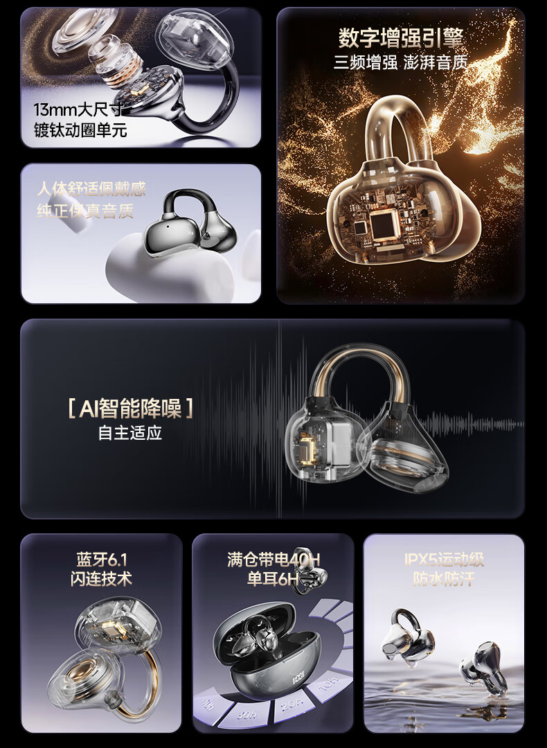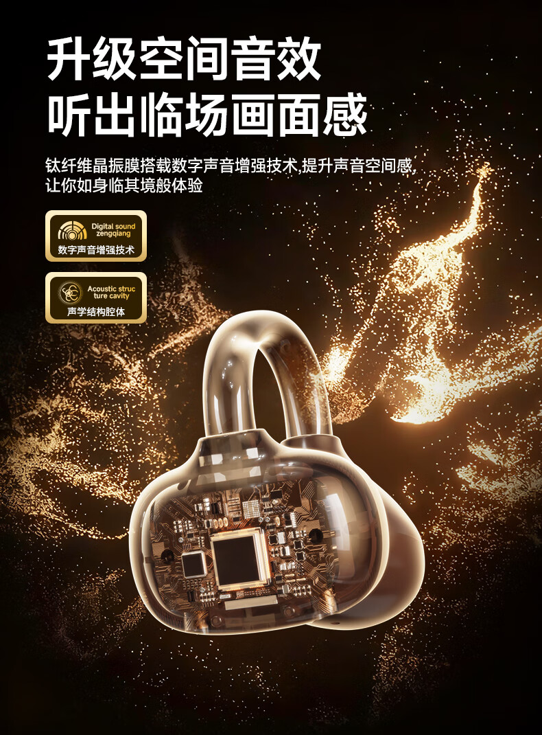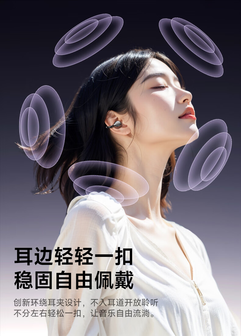 弱水时砂OpenFeel【周传雄推荐】蓝牙耳机耳夹式不入耳真无线开放式HIFi气骨传导概念通话降噪挂耳运动跑步