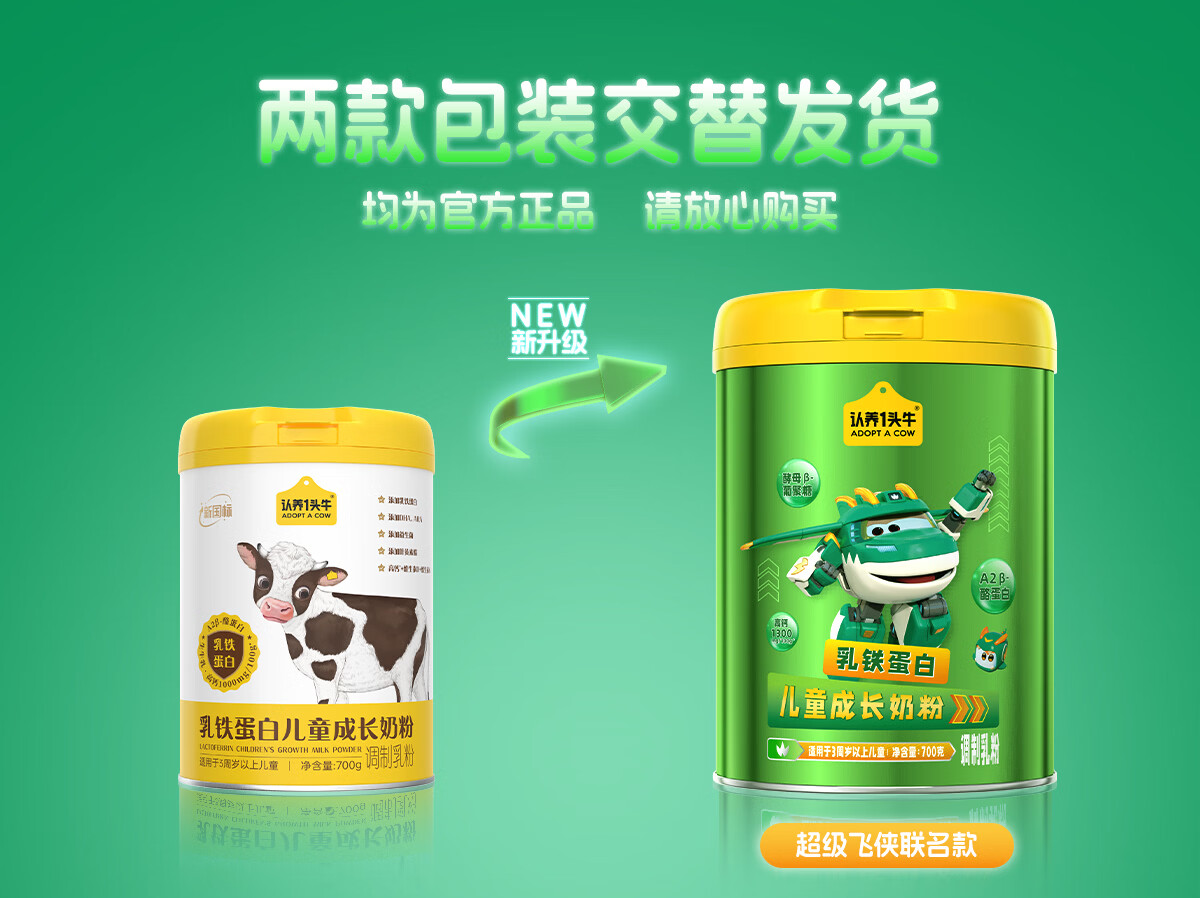 认养一头牛乳铁蛋白儿童成长奶粉4段3岁700g*1罐益生菌+益生元-新老包装混发