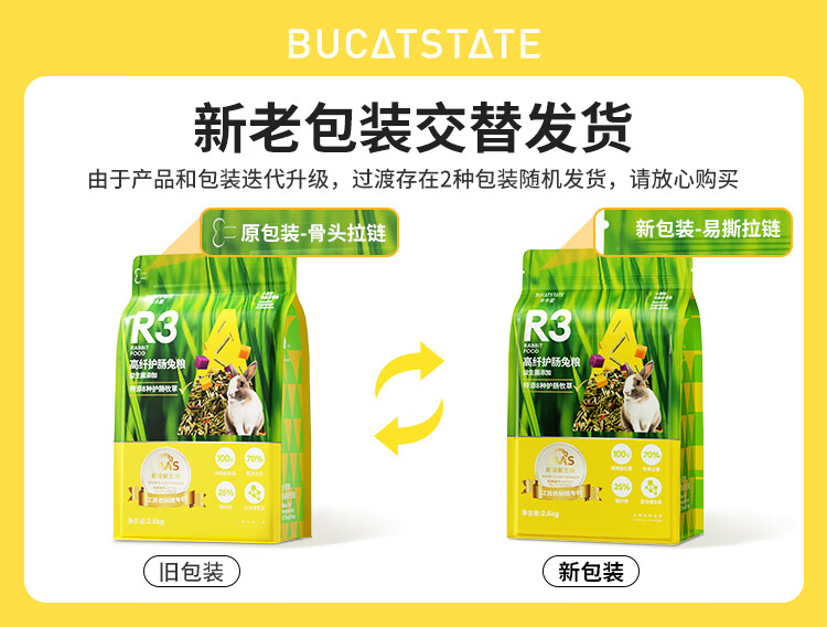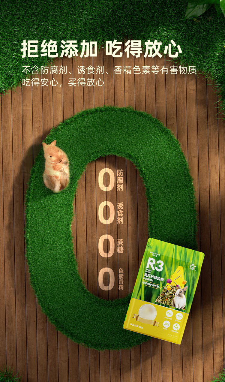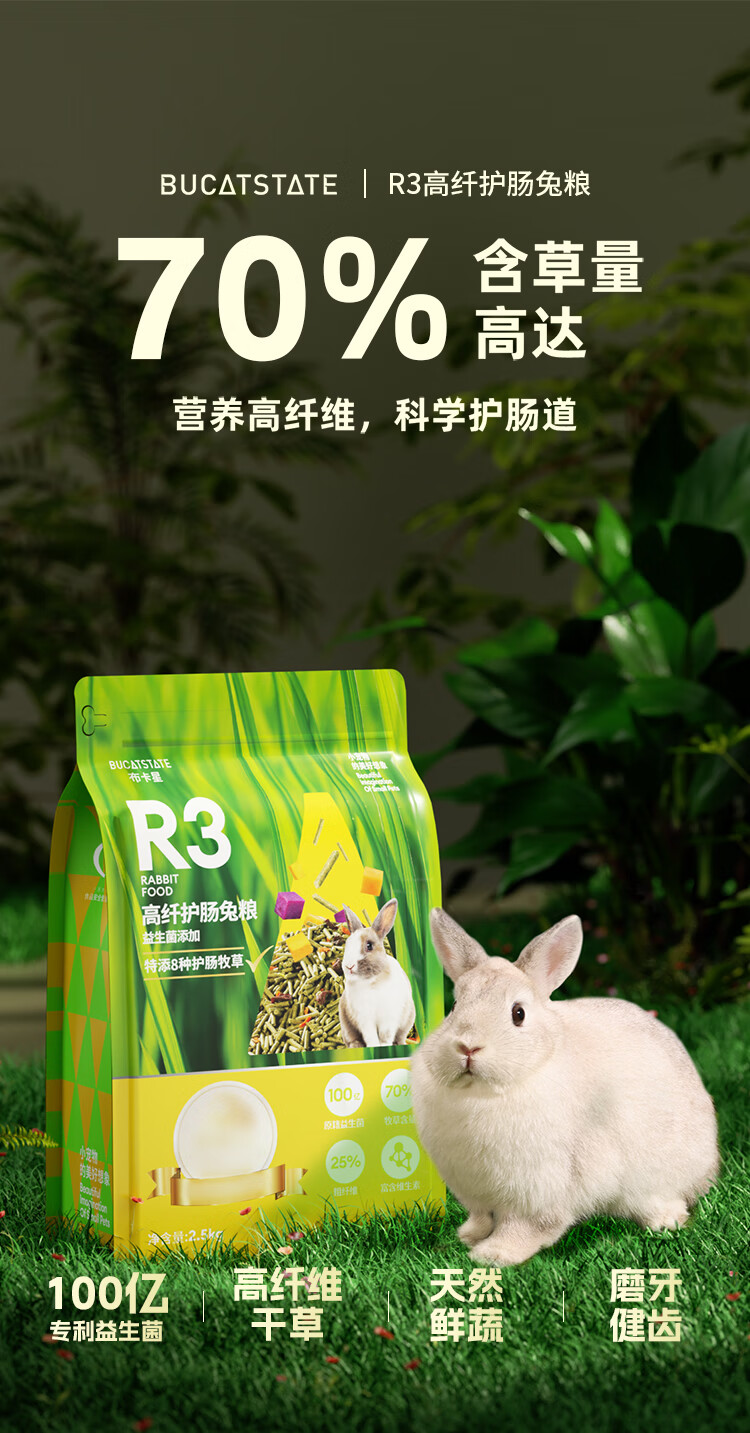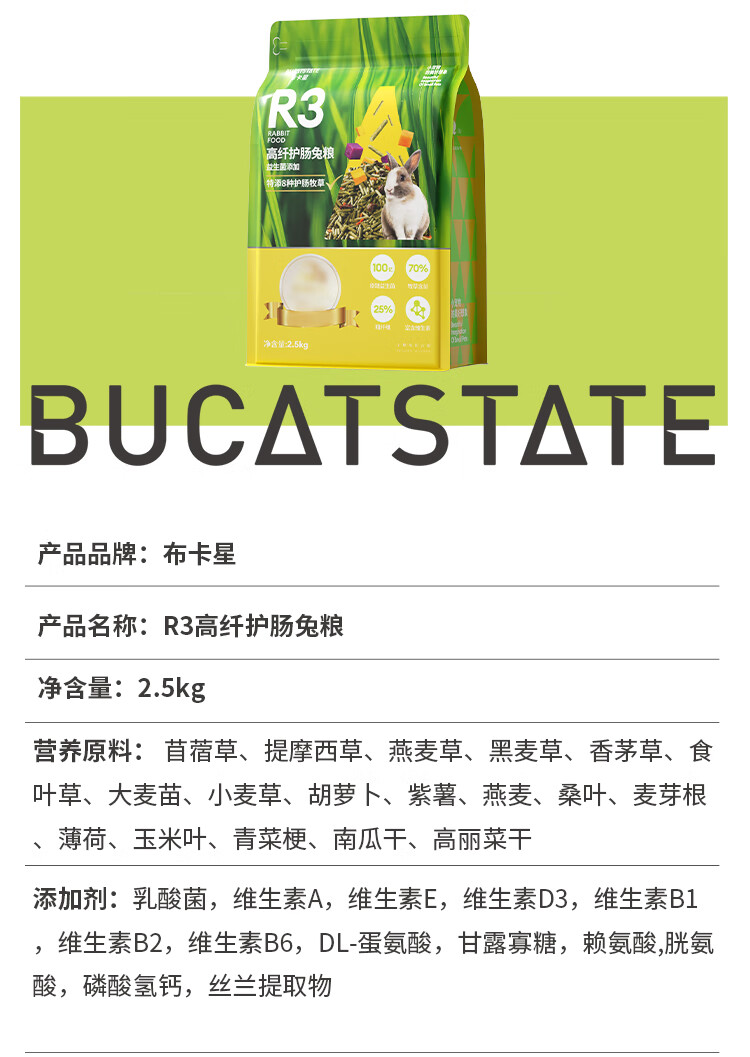 布卡星R3高纤营养兔粮 成兔幼兔垂耳兔全阶兔粮食2.5kg