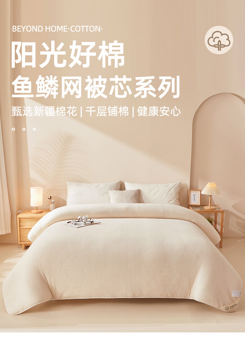 浪莎(LangSha)新疆棉花被子春秋被芯棉絮床垫褥子宿舍单人棉胎薄被可铺可盖冬被 鱼鳞网被芯 150*200cm8斤