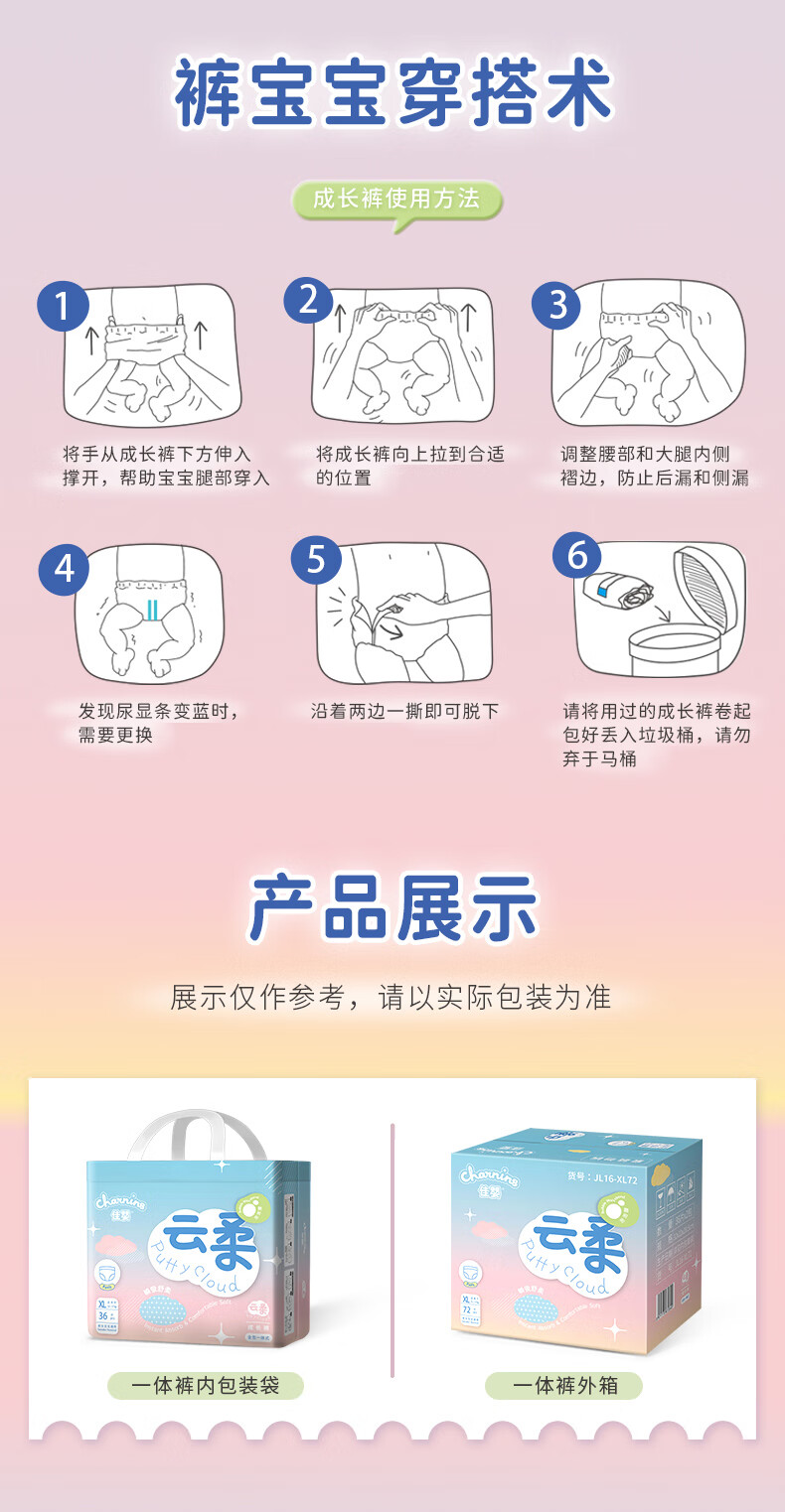 佳婴云柔拉拉裤L码76片(5-10KG)婴儿尿不湿超薄透气一体成长裤