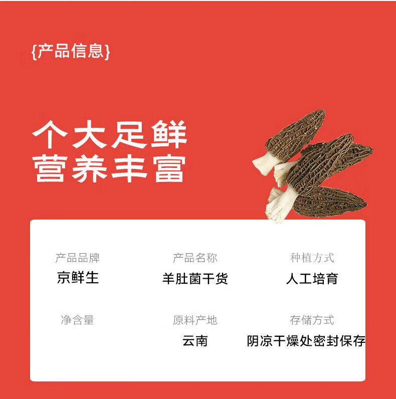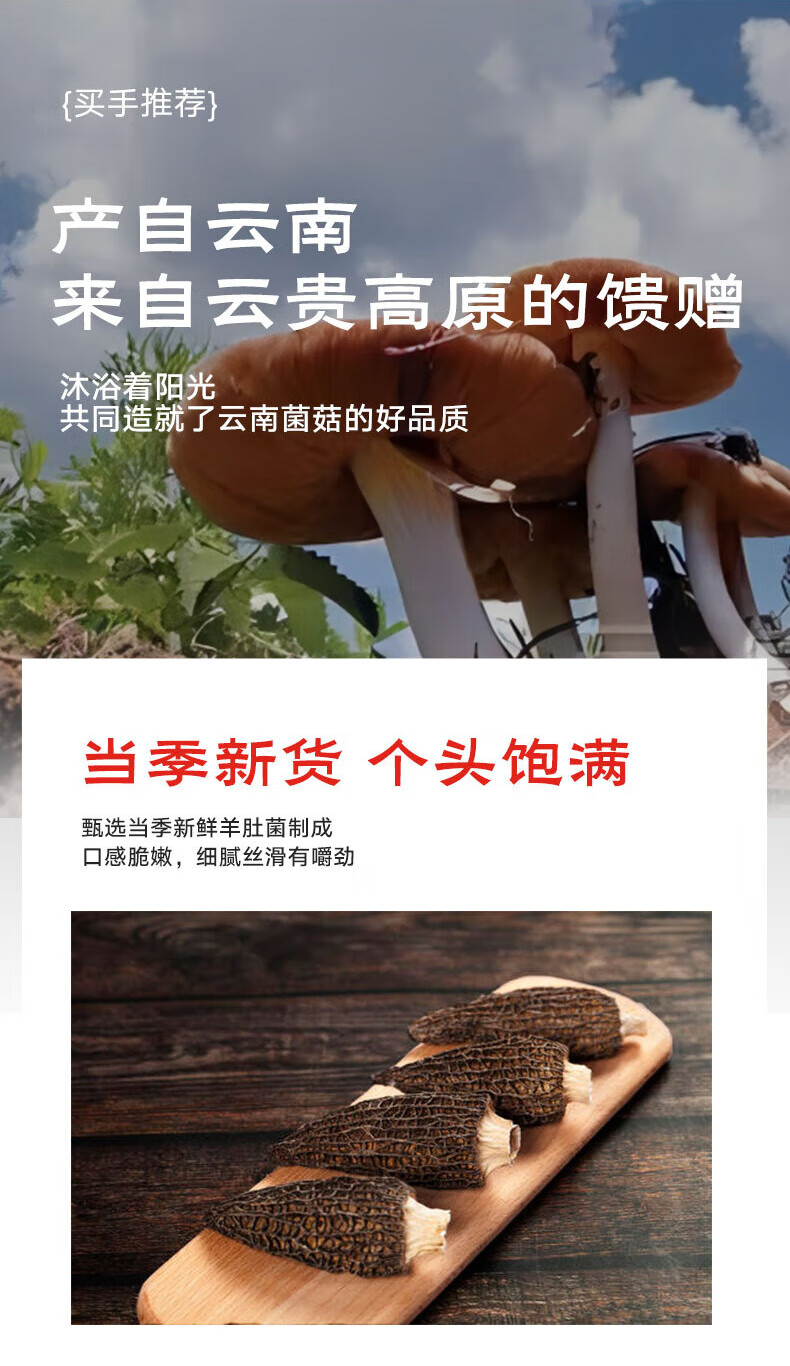 京鲜生 羊肚菌干货净重30g云南特产菌菇干货3-5cm煲汤火锅食材源头直发