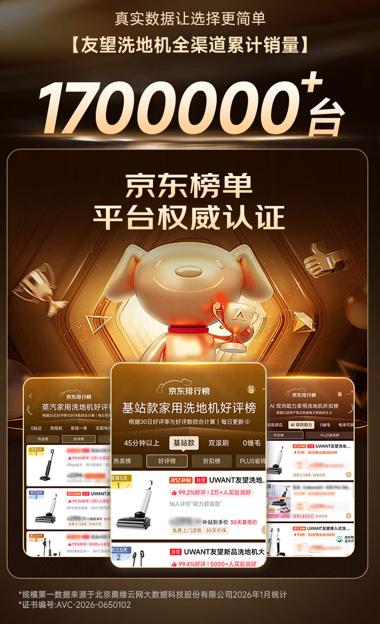 UWANT友望洗地机云朵蒸汽热水版【160℃蒸汽80℃热水】家用洗地机洗拖吸一体自动清洗