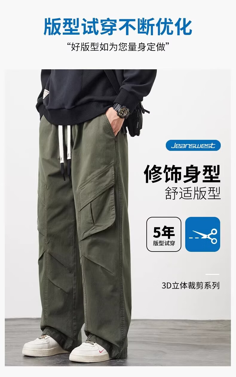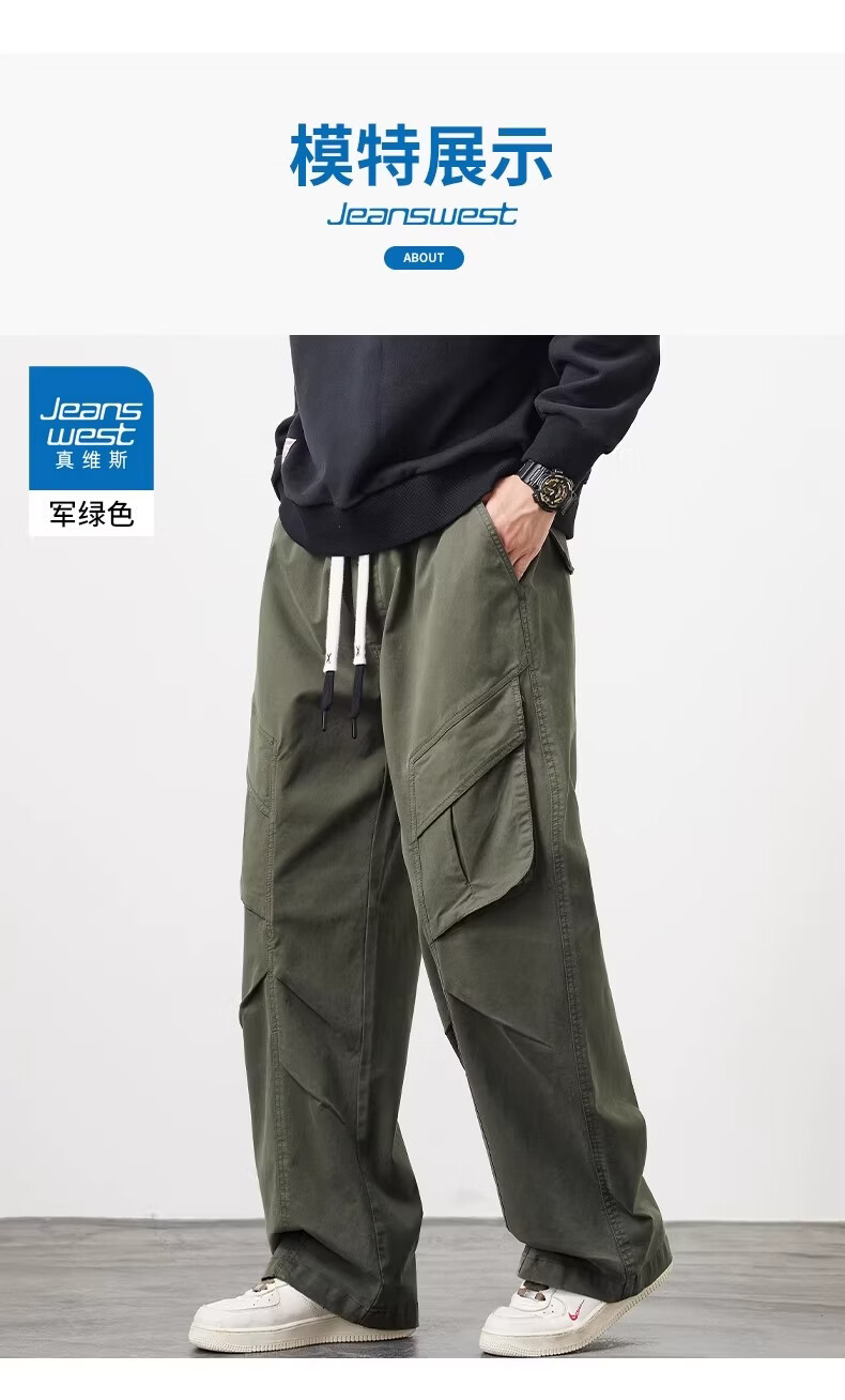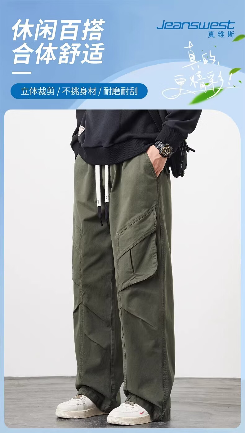 真维斯(Jeanswest)美式工装风直筒长裤男2026春季新款高街复古宽松休闲阔腿裤 军绿色 【美式复古】 M 【建议90-110斤】