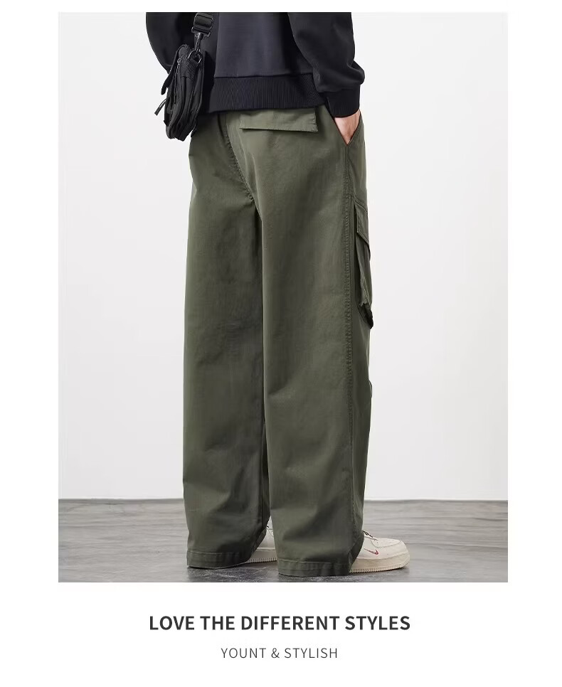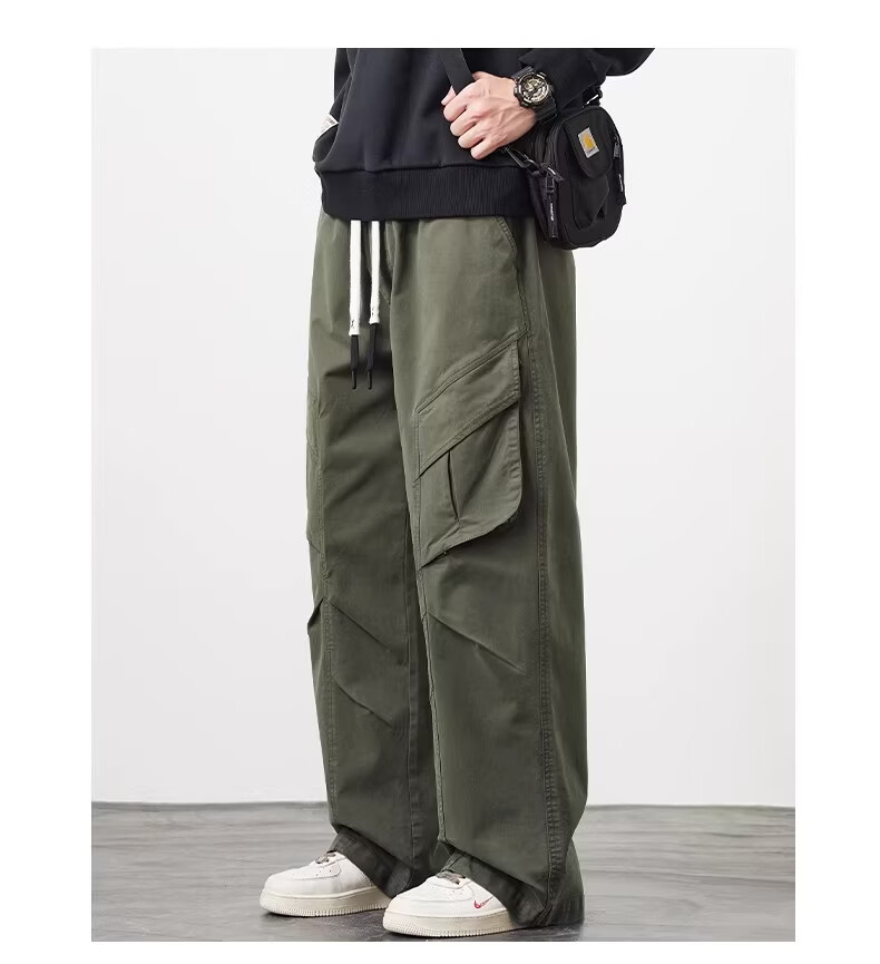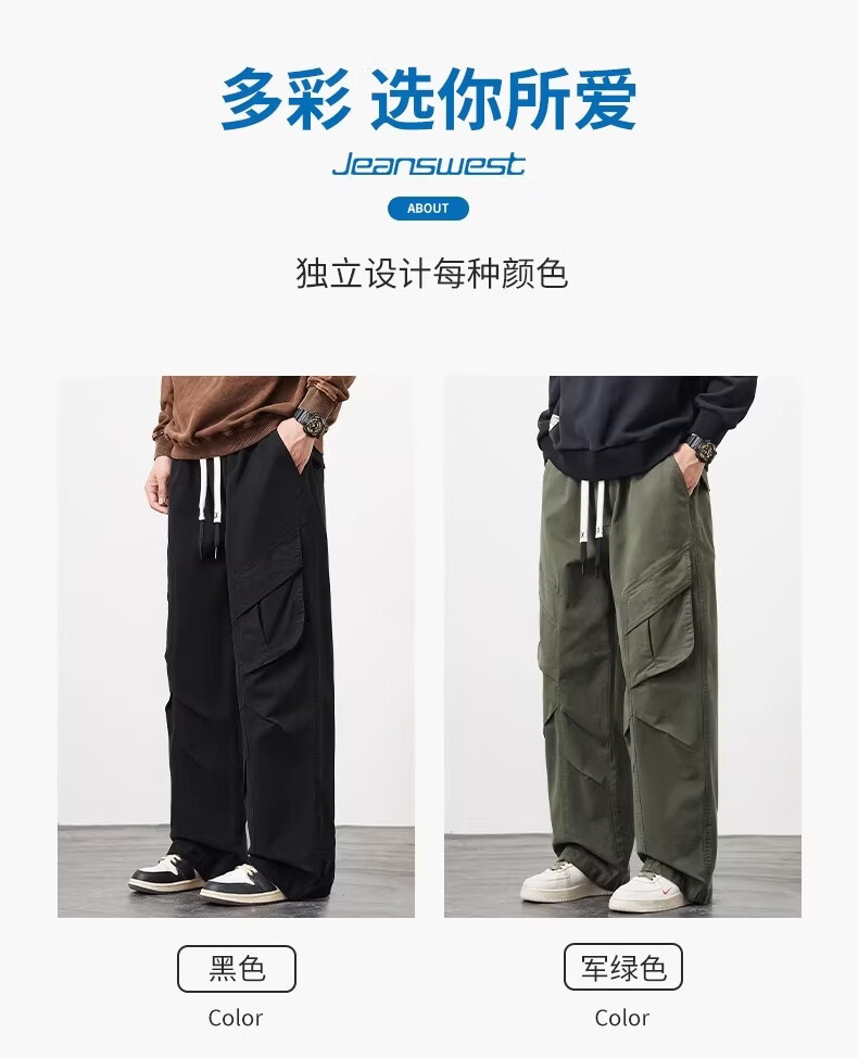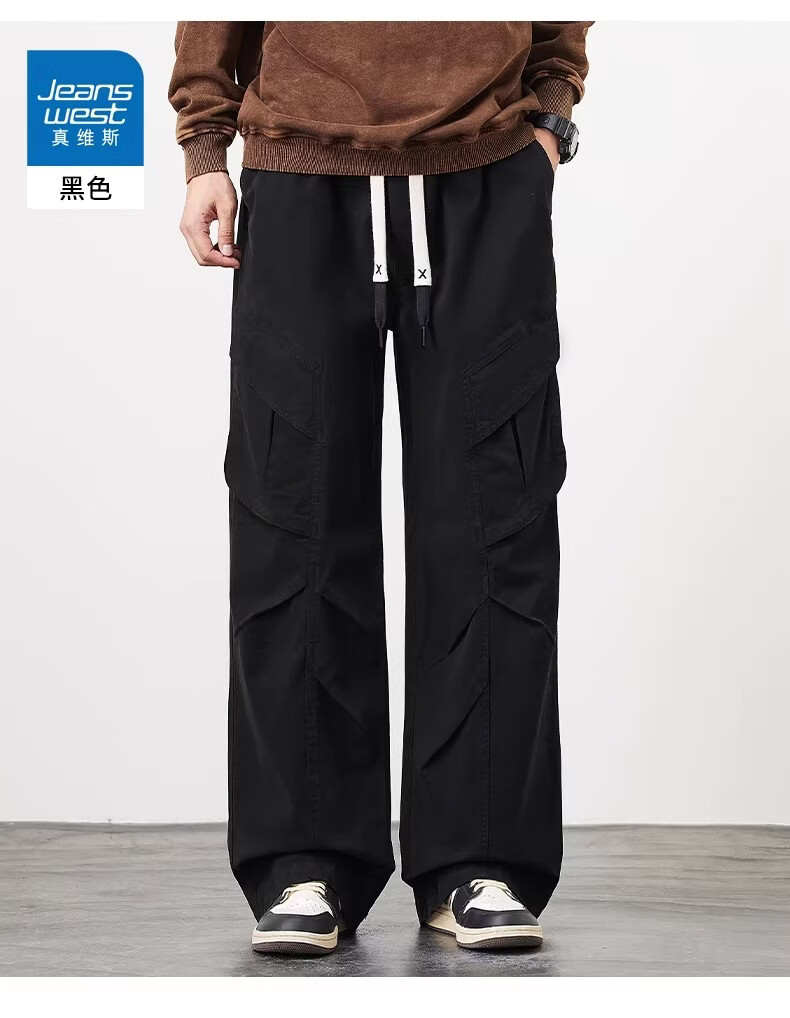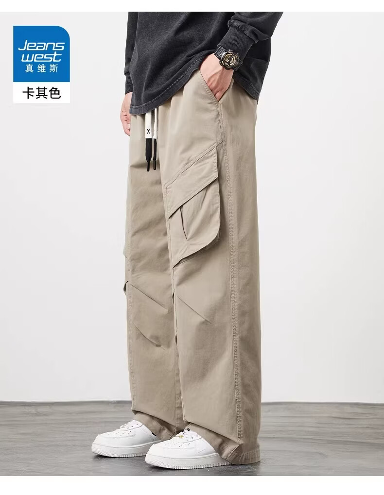 真维斯(Jeanswest)美式工装风直筒长裤男2026春季新款高街复古宽松休闲阔腿裤 军绿色 【美式复古】 M 【建议90-110斤】