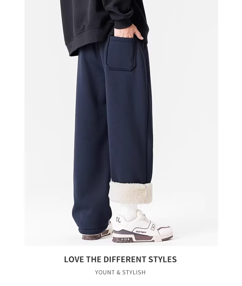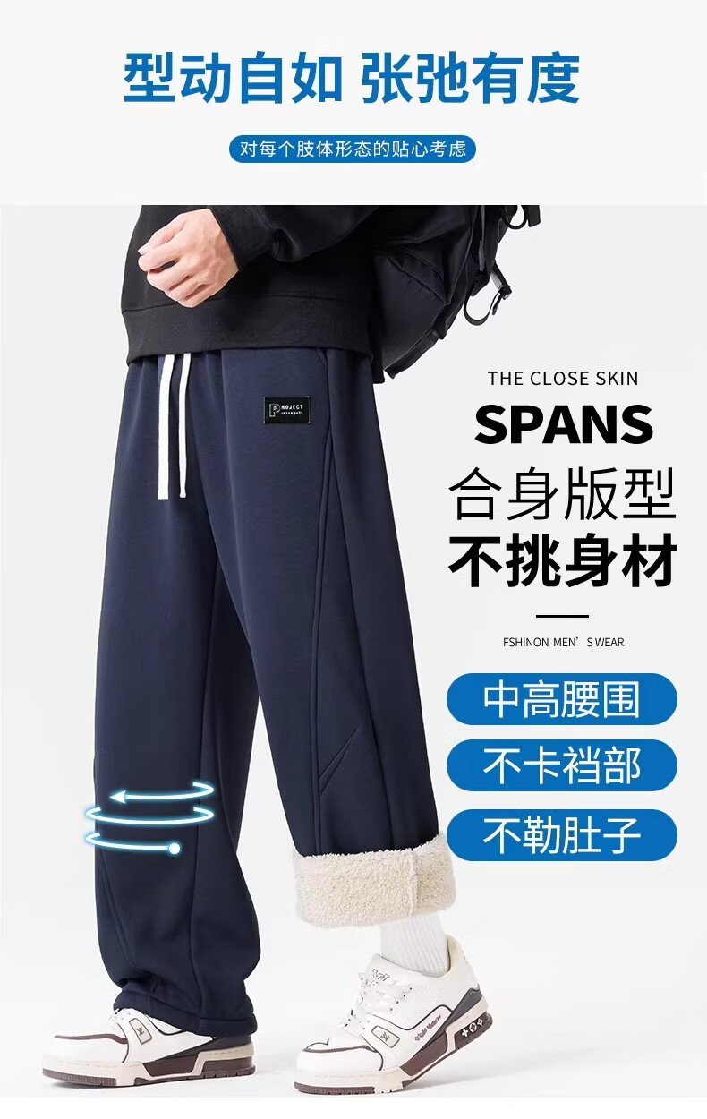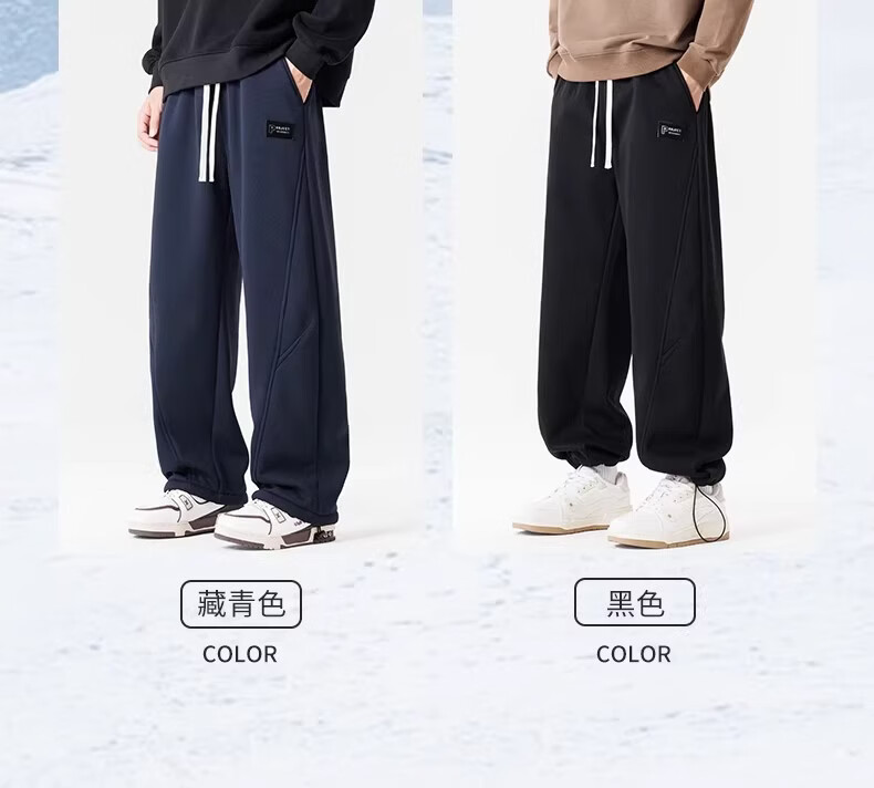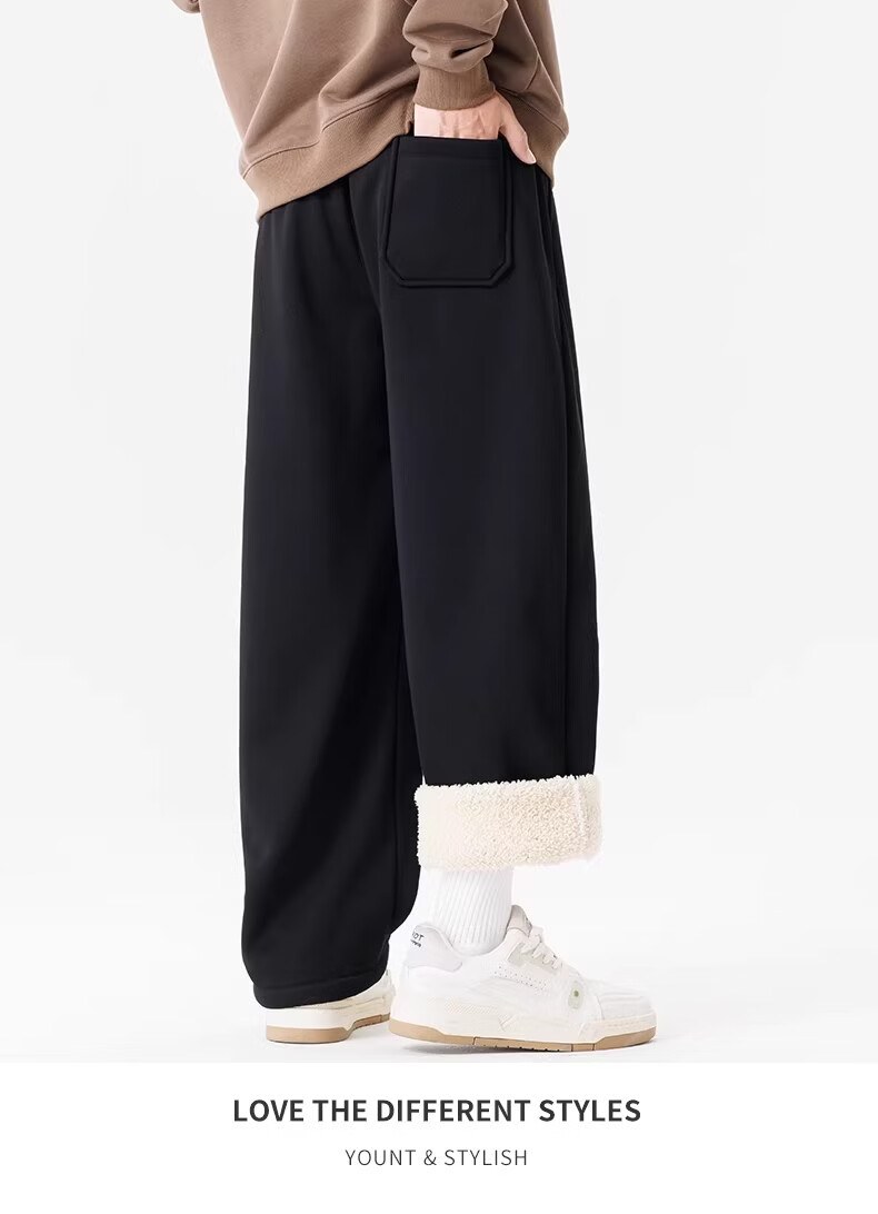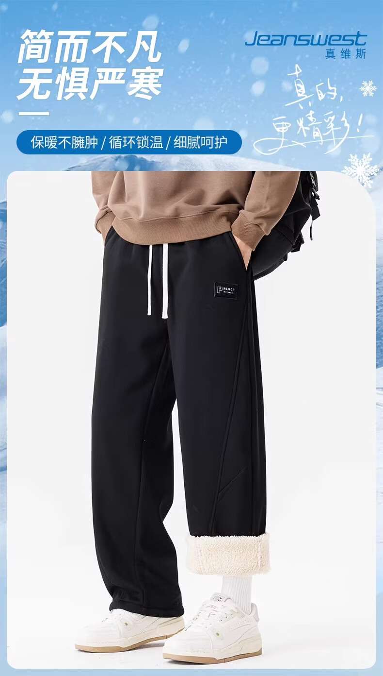 真维斯(Jeanswest)黑色加绒保暖直筒休闲裤男冬季宽松百搭潮流羊羔毛防寒长裤 黑色 【加绒保暖】 M 【建议100-120斤】
