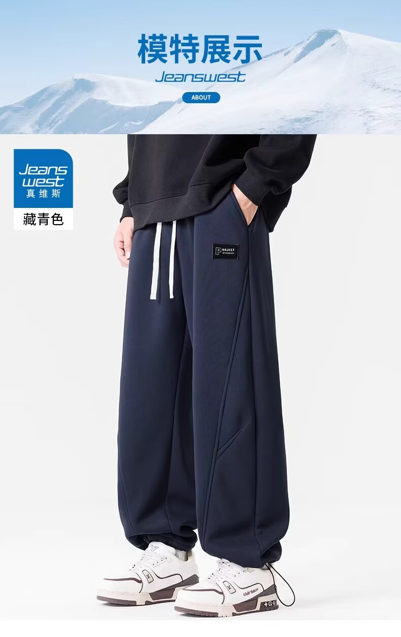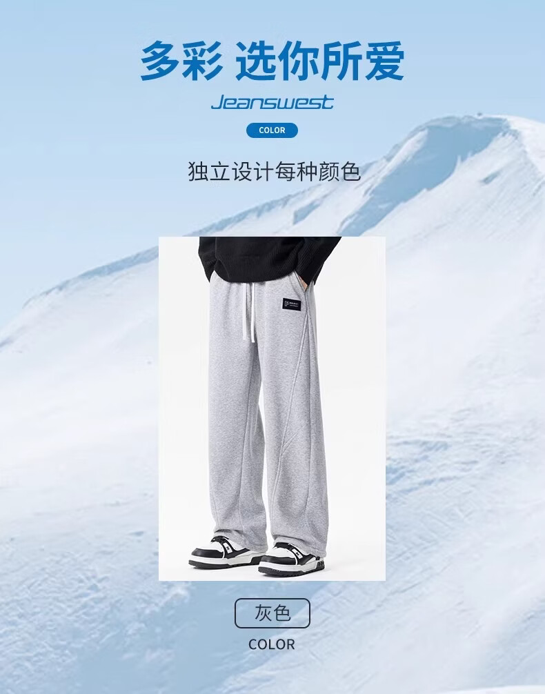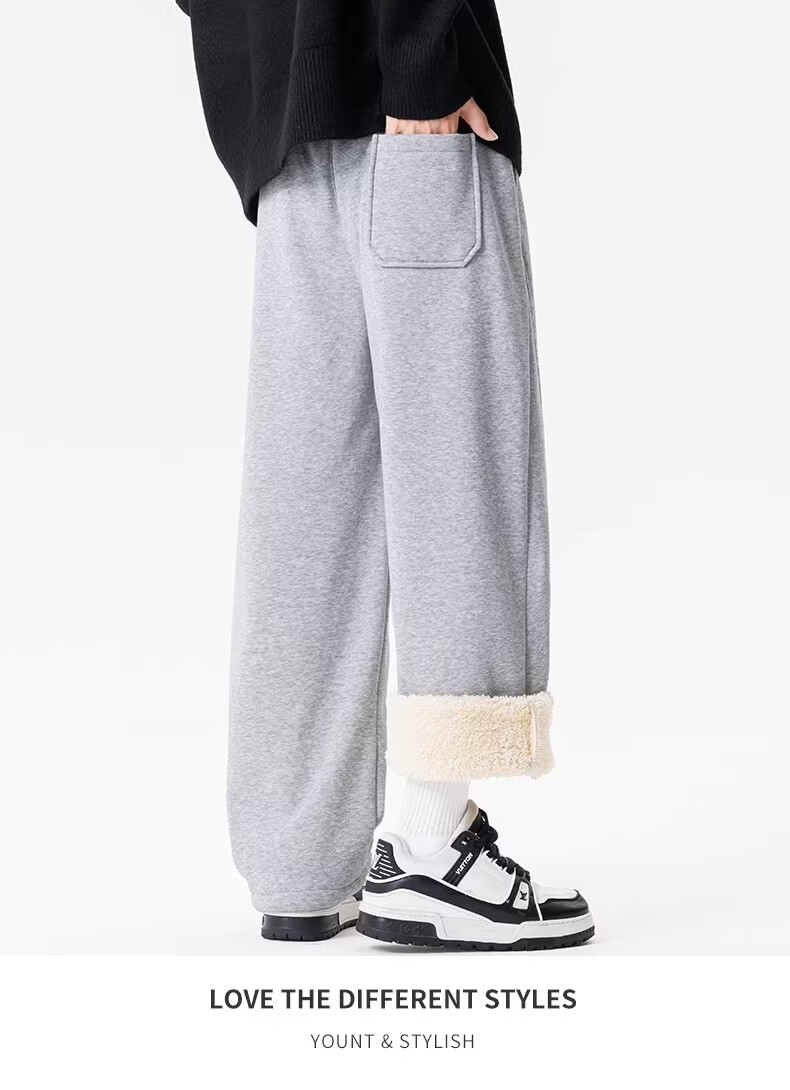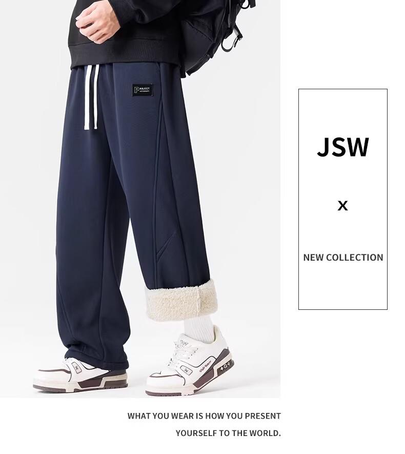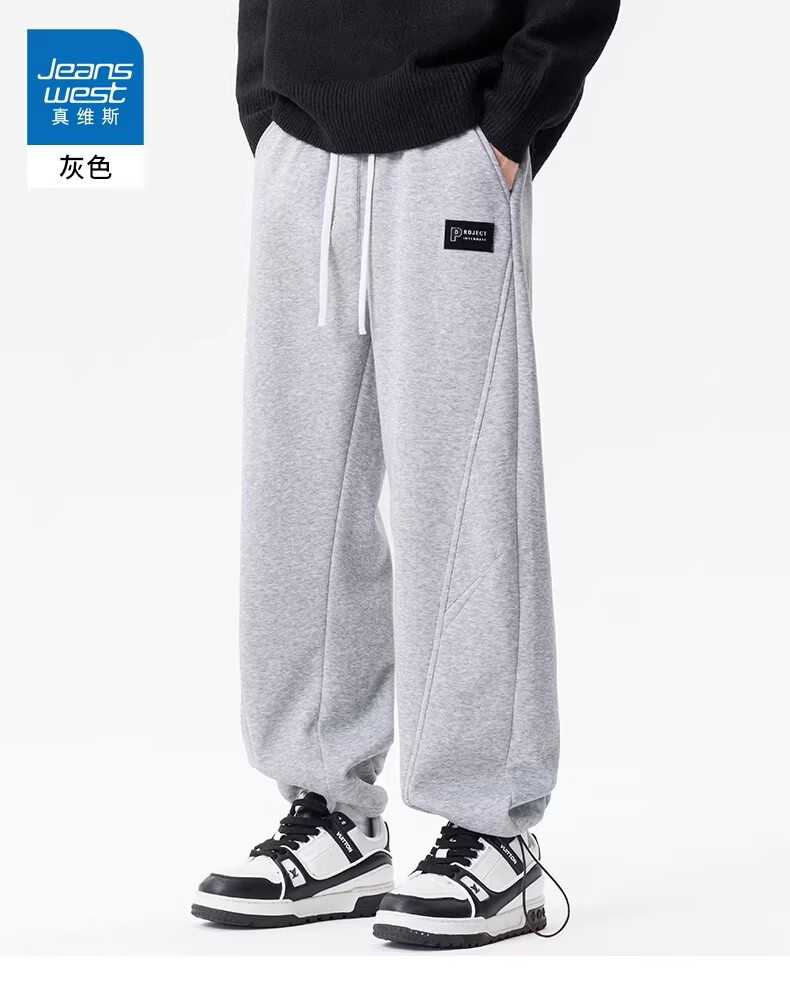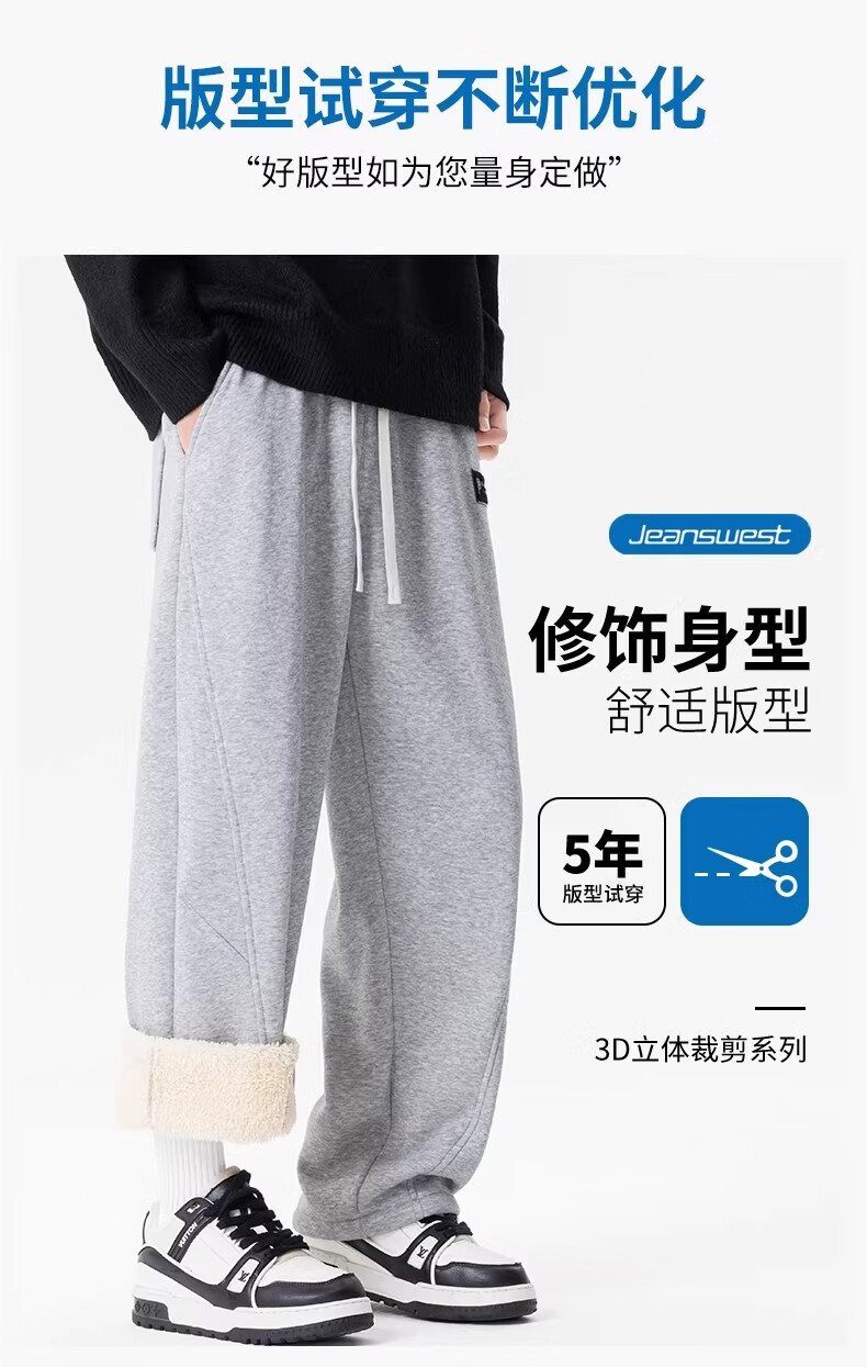 真维斯(Jeanswest)黑色加绒保暖直筒休闲裤男冬季宽松百搭潮流羊羔毛防寒长裤 黑色 【加绒保暖】 M 【建议100-120斤】